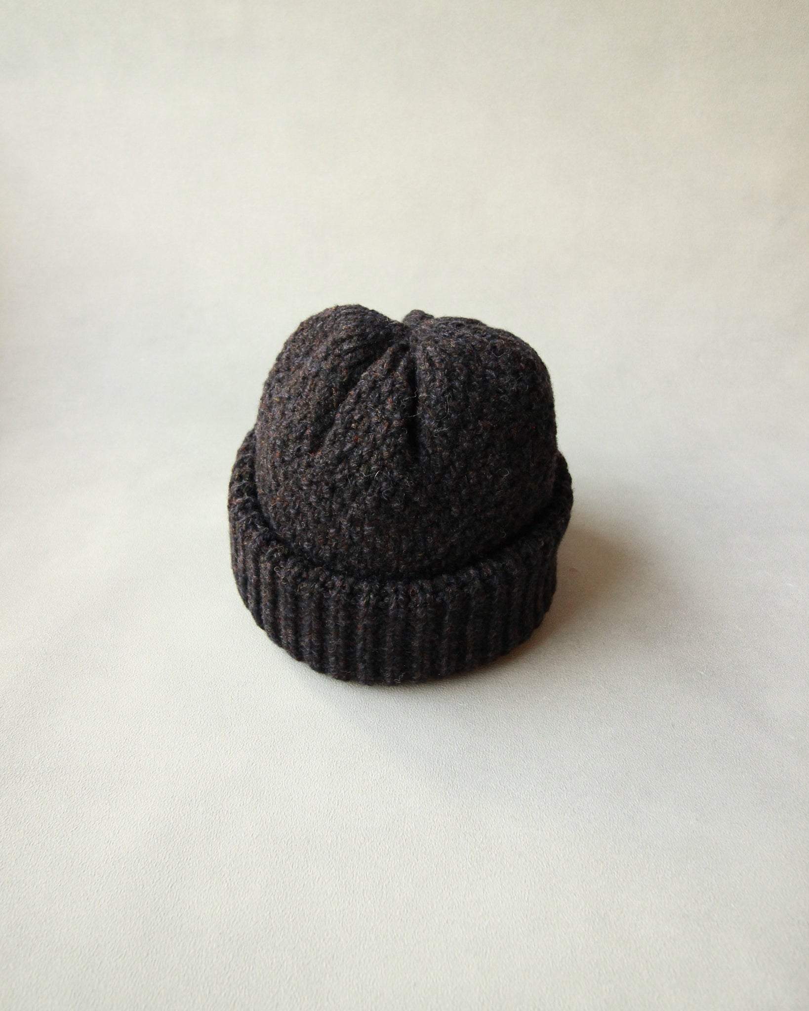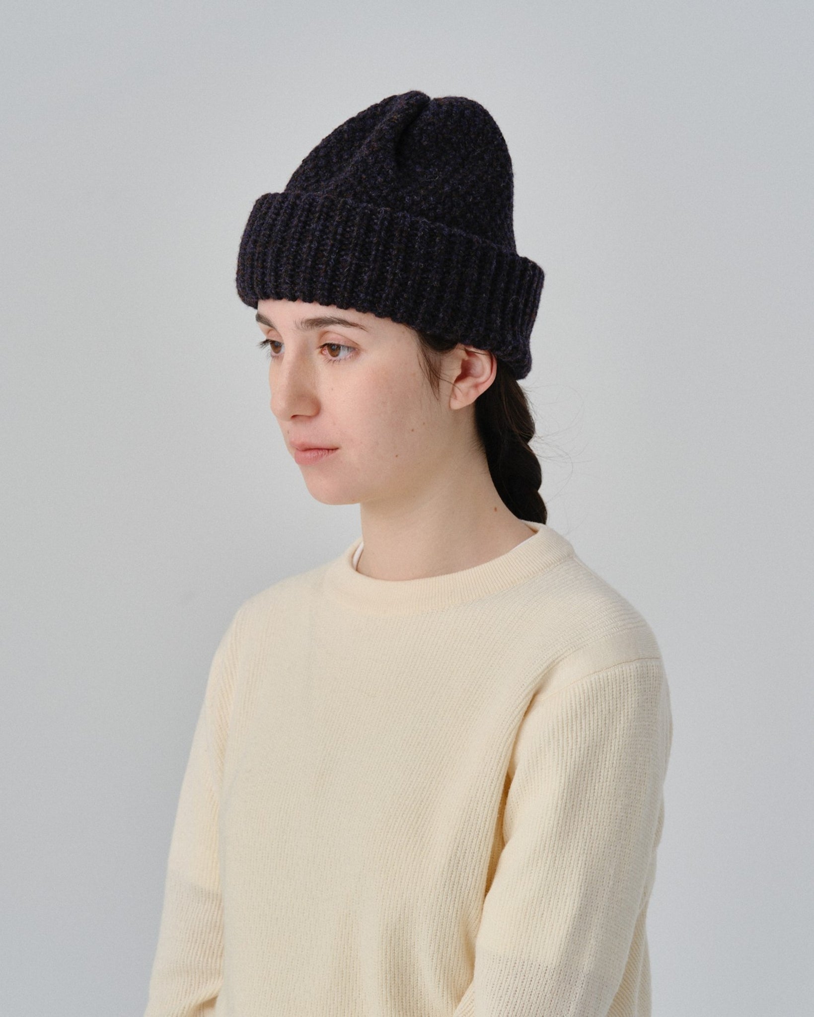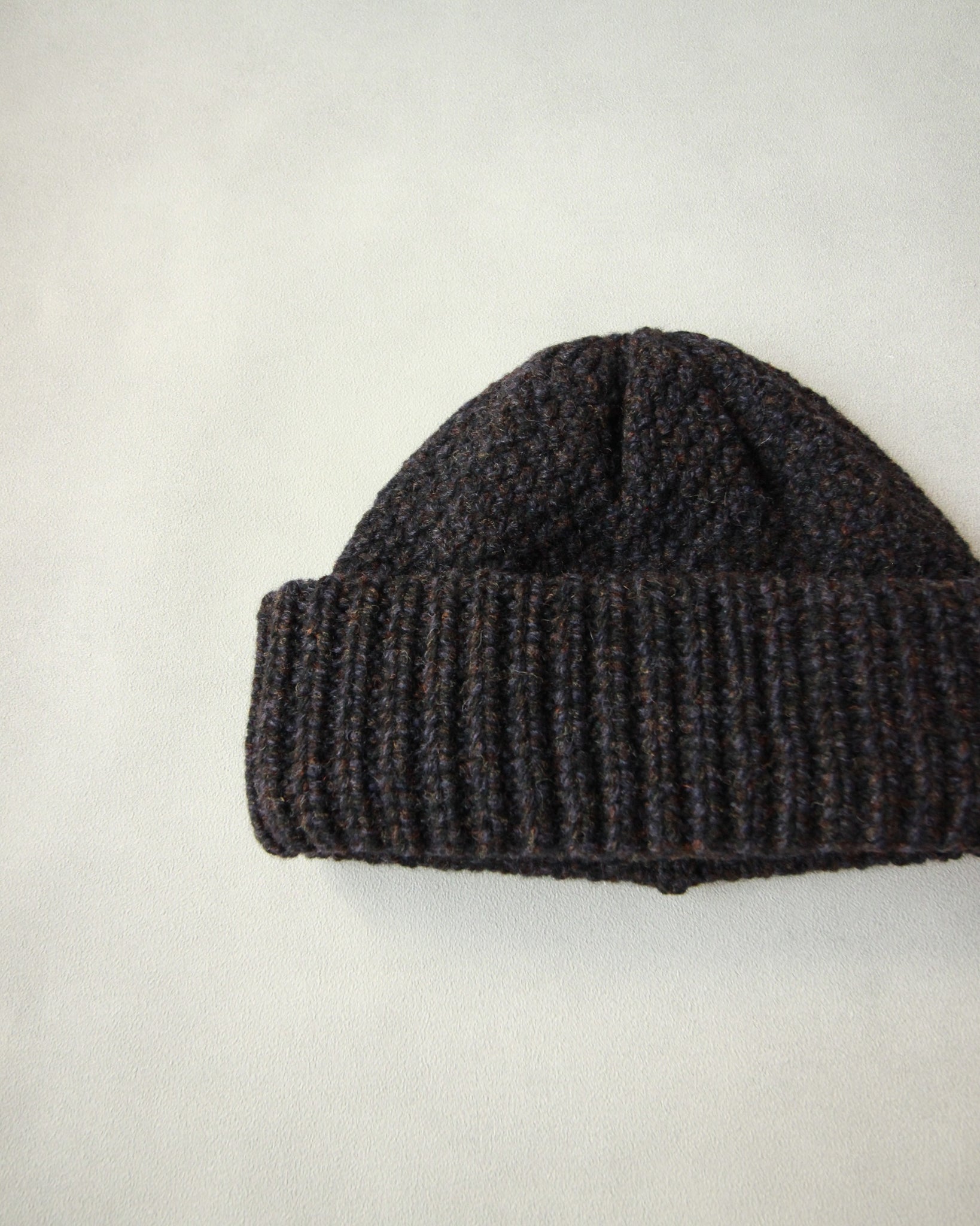 高品質の英国羊毛をブレンドし編み立てたニット帽。