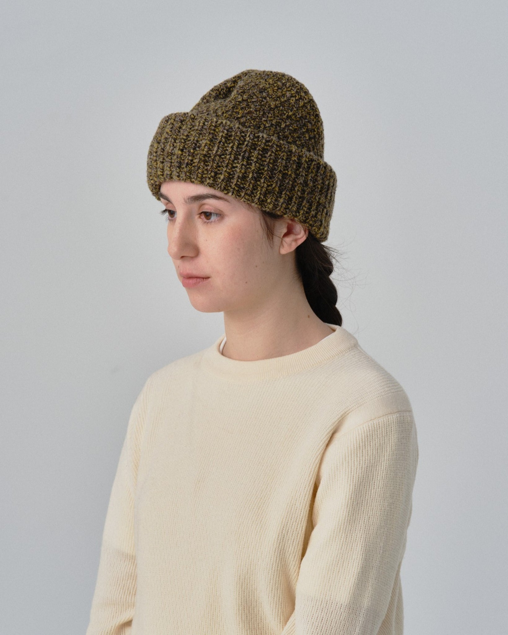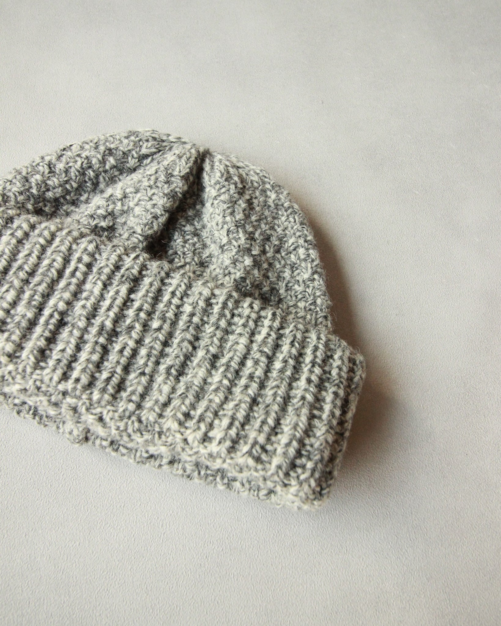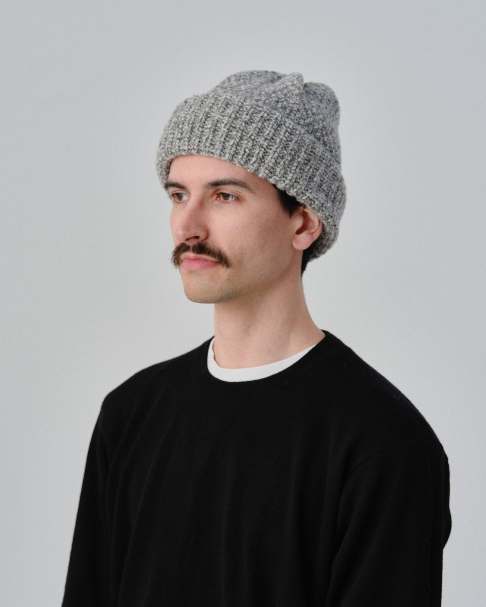 高品質の英国羊毛をブレンドし編み立てたニット帽。