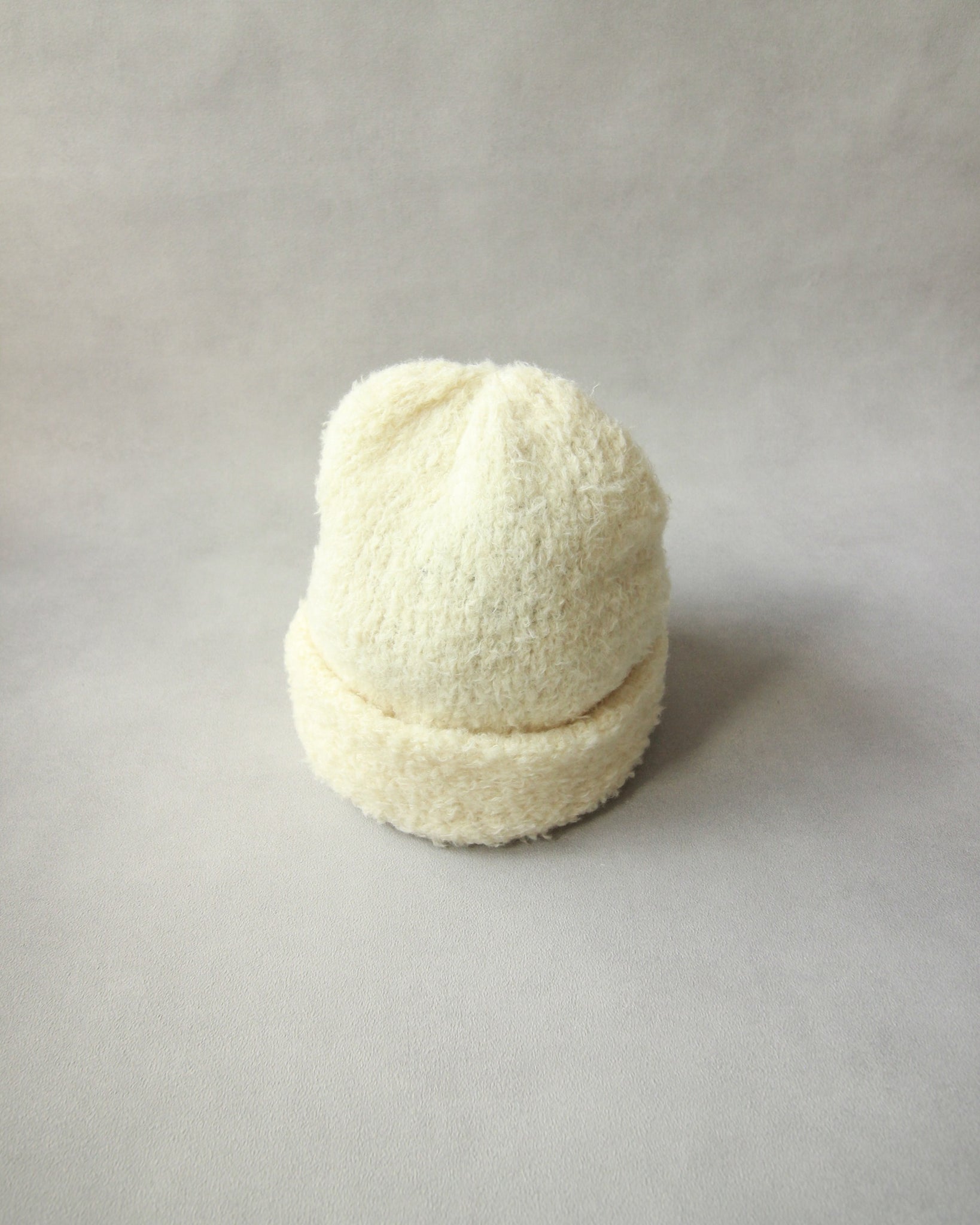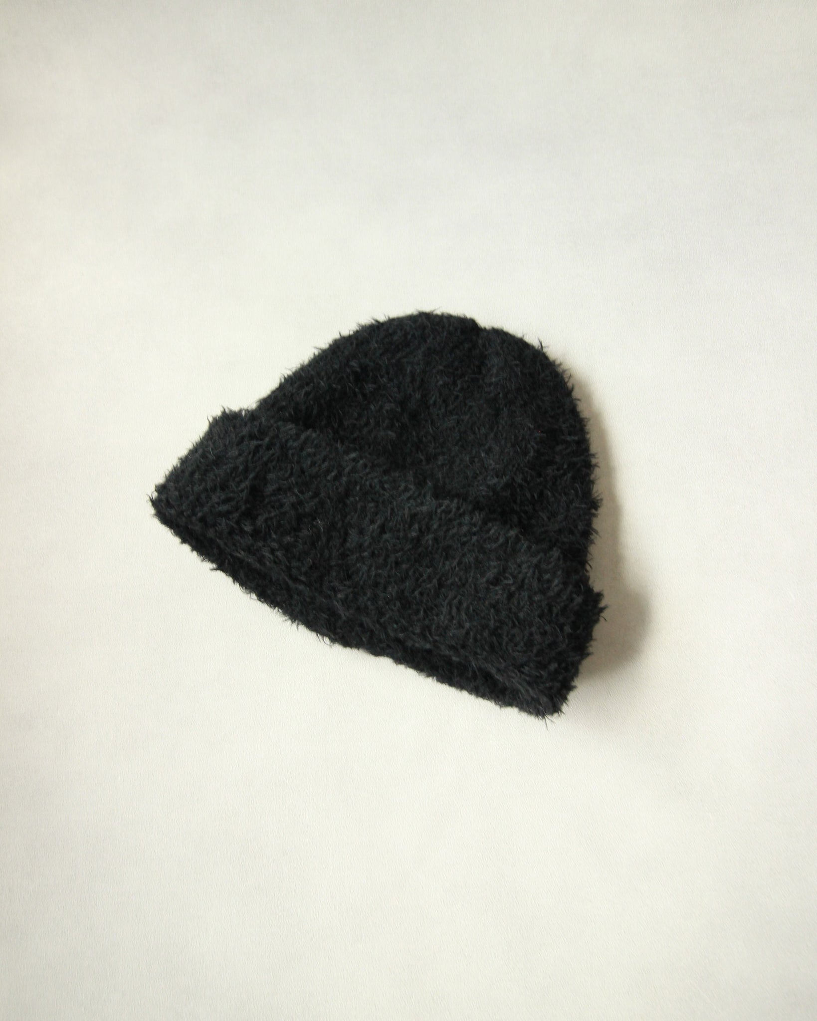 A knit hat with just the right amount of elasticity and a boa-like appearance.