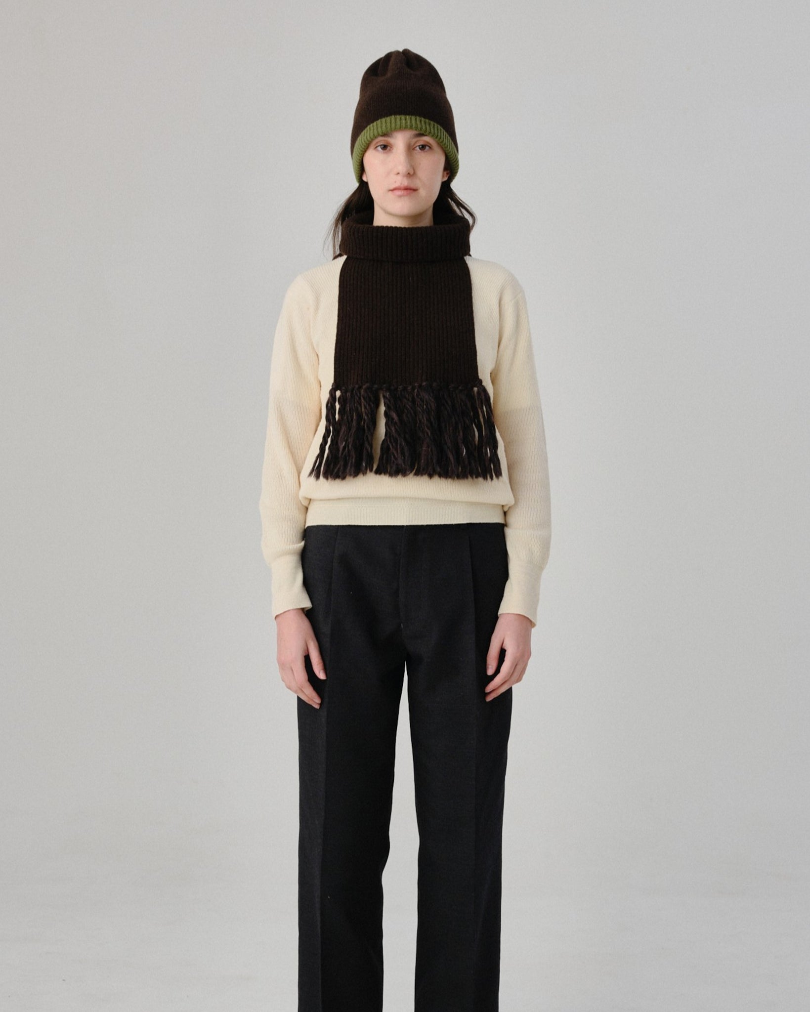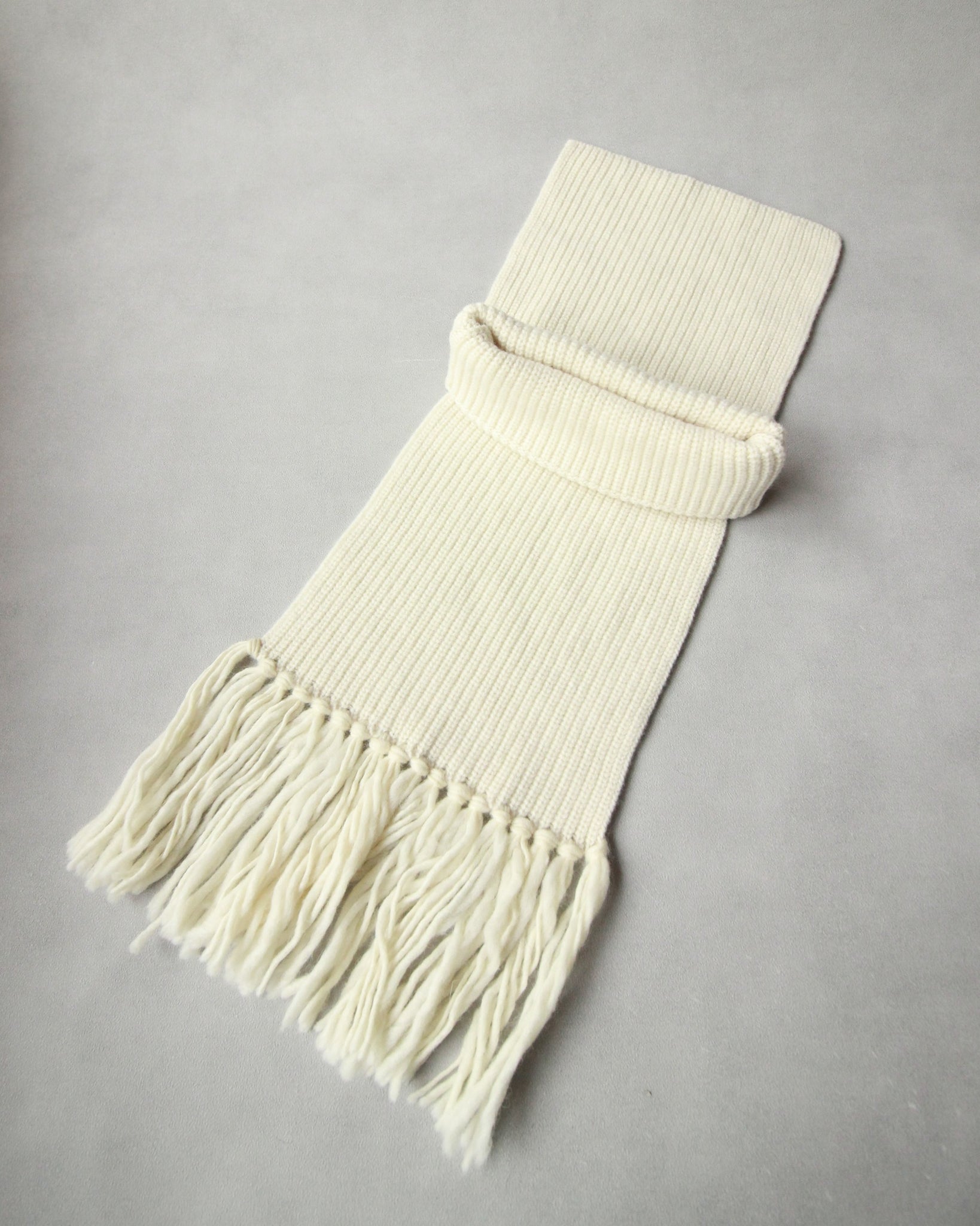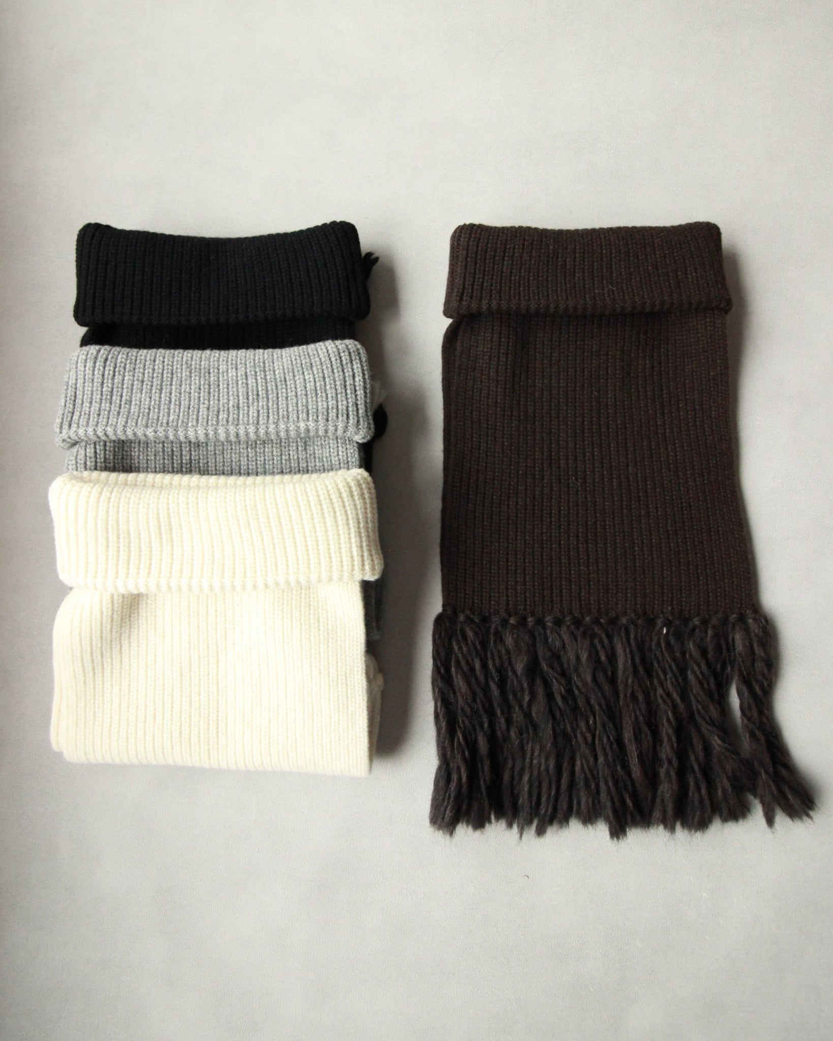 繊細で柔らかな風合いのエクストラファインラムズウールで編み立てたネックウォーマー。