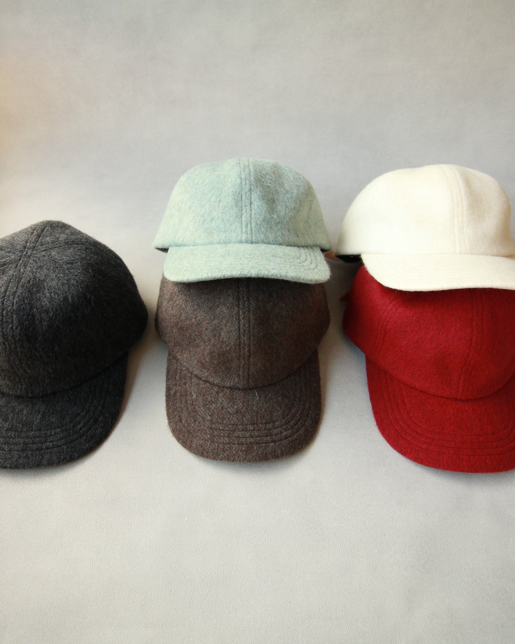 柔らかくふわっとした肌触りのウール混の6パネルキャップ。
