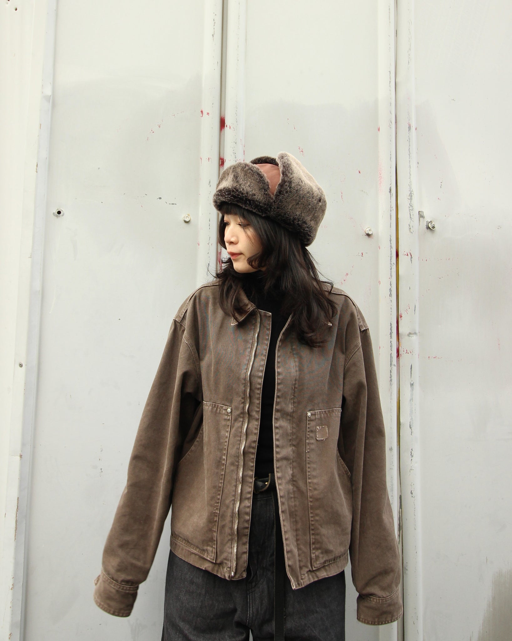 ボリュームのある重厚なファーが上品なフライトキャップ。