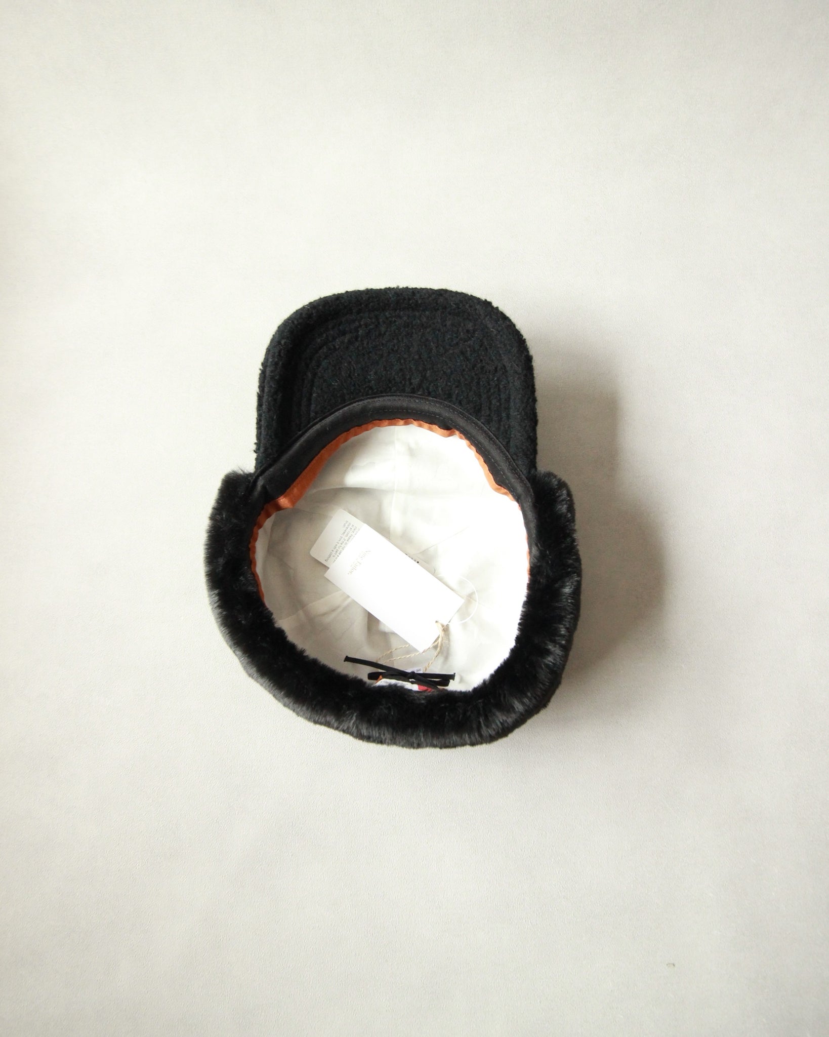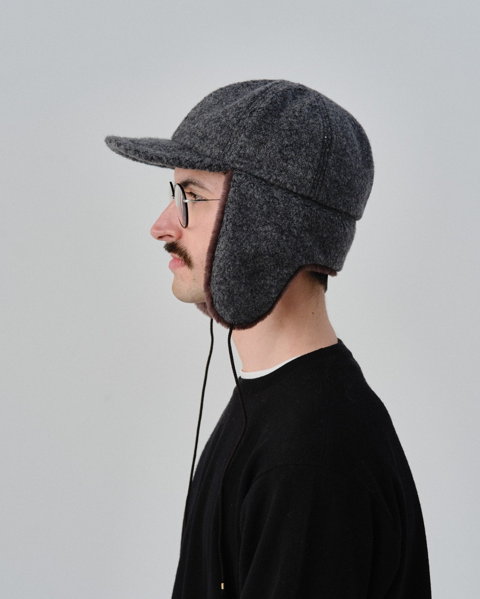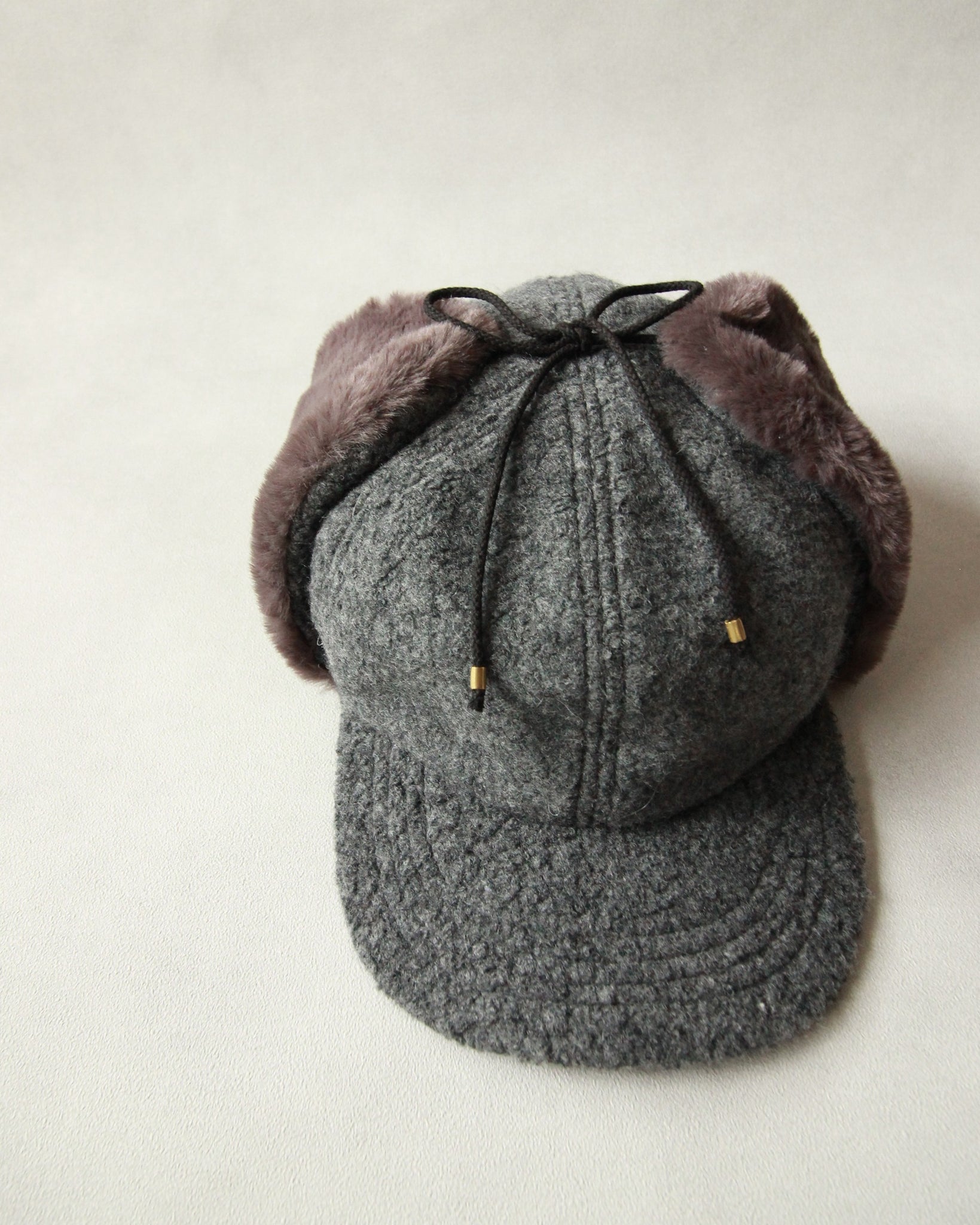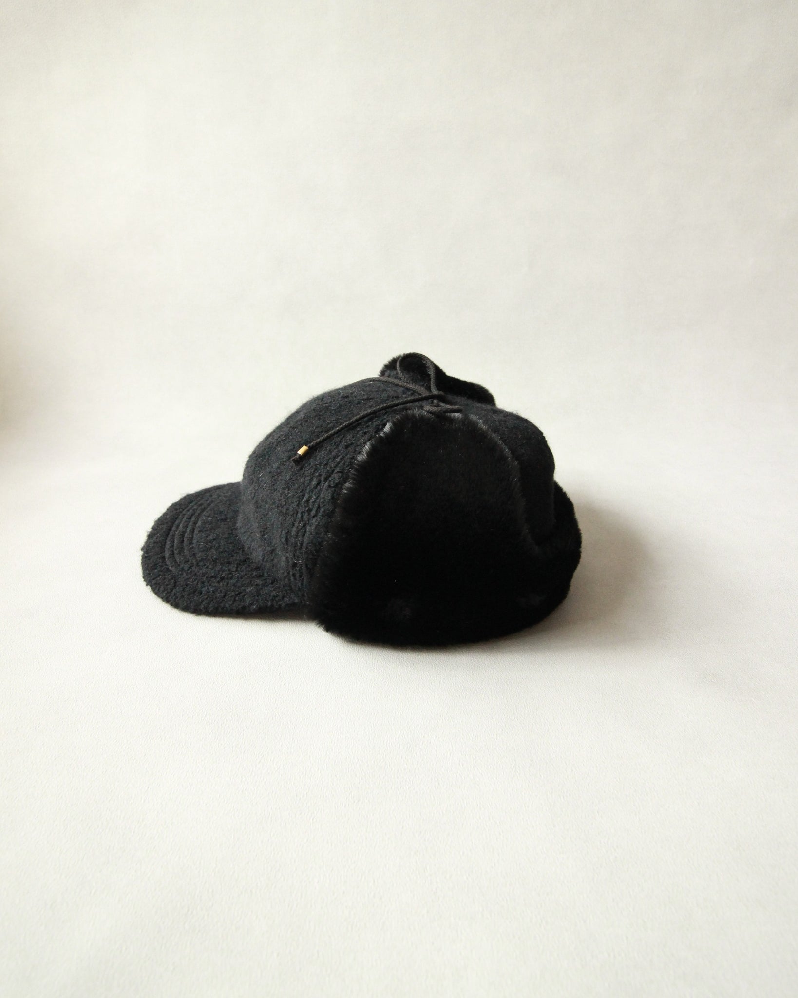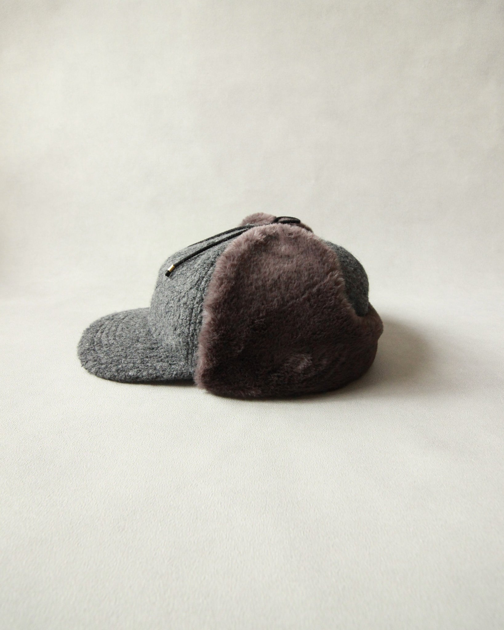 ボリュームのある重厚なファーが上品なイヤーフラップキャップ。
