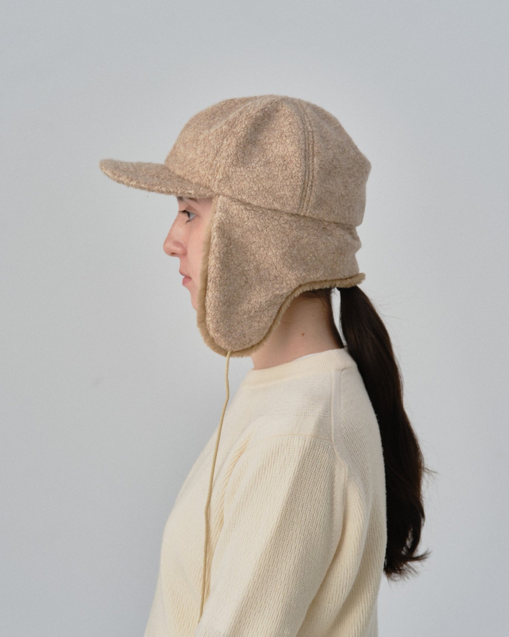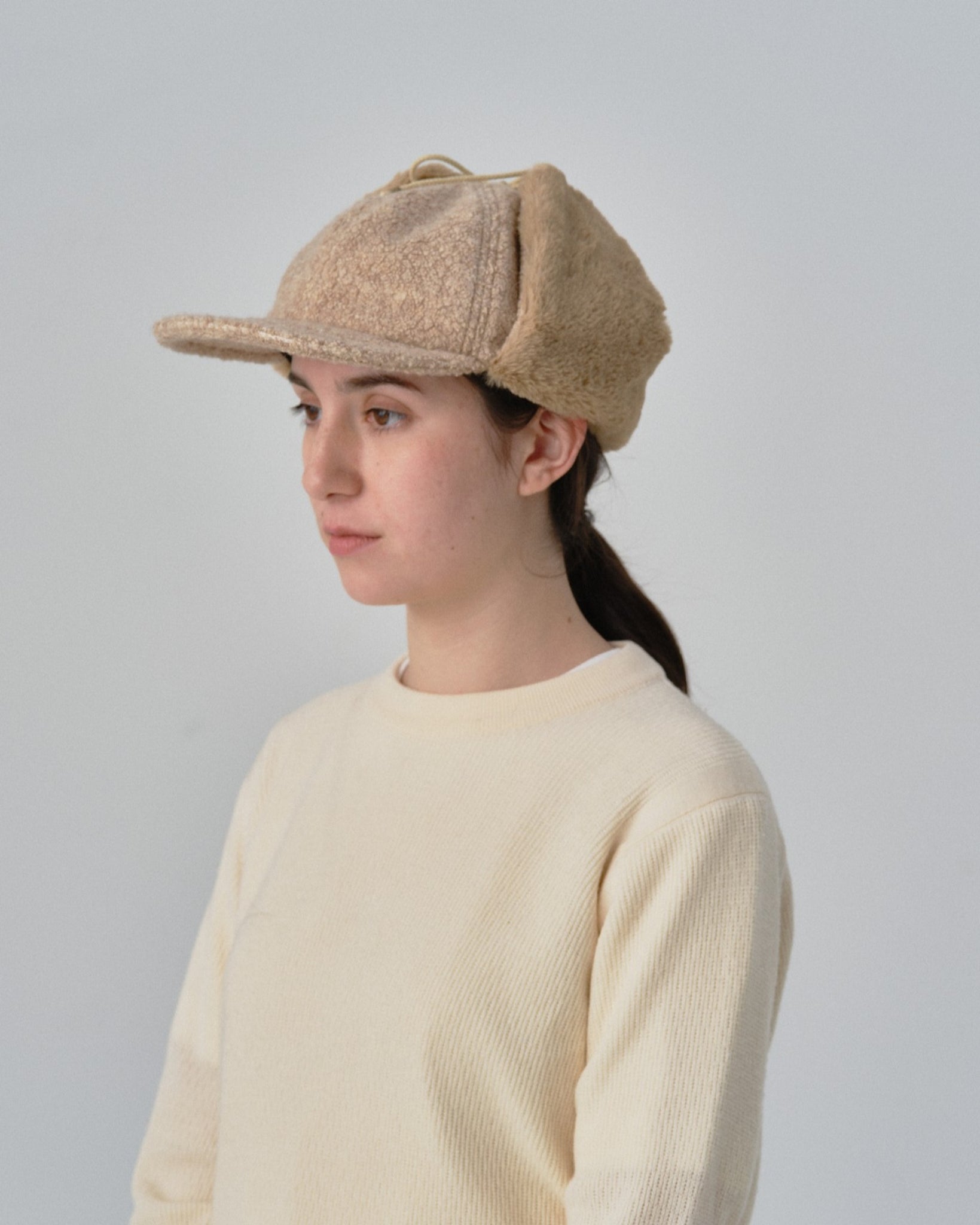 イヤーフラップには滑らかな肌触りのフェイクファーを合わせ、防寒性を高めました。