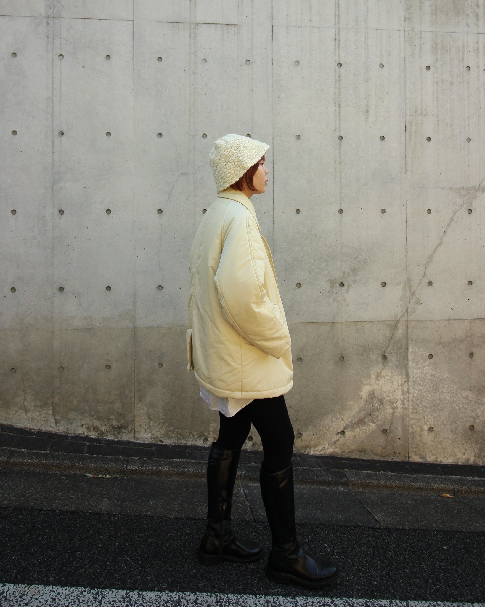 ジャンボスラブの手編みハット。