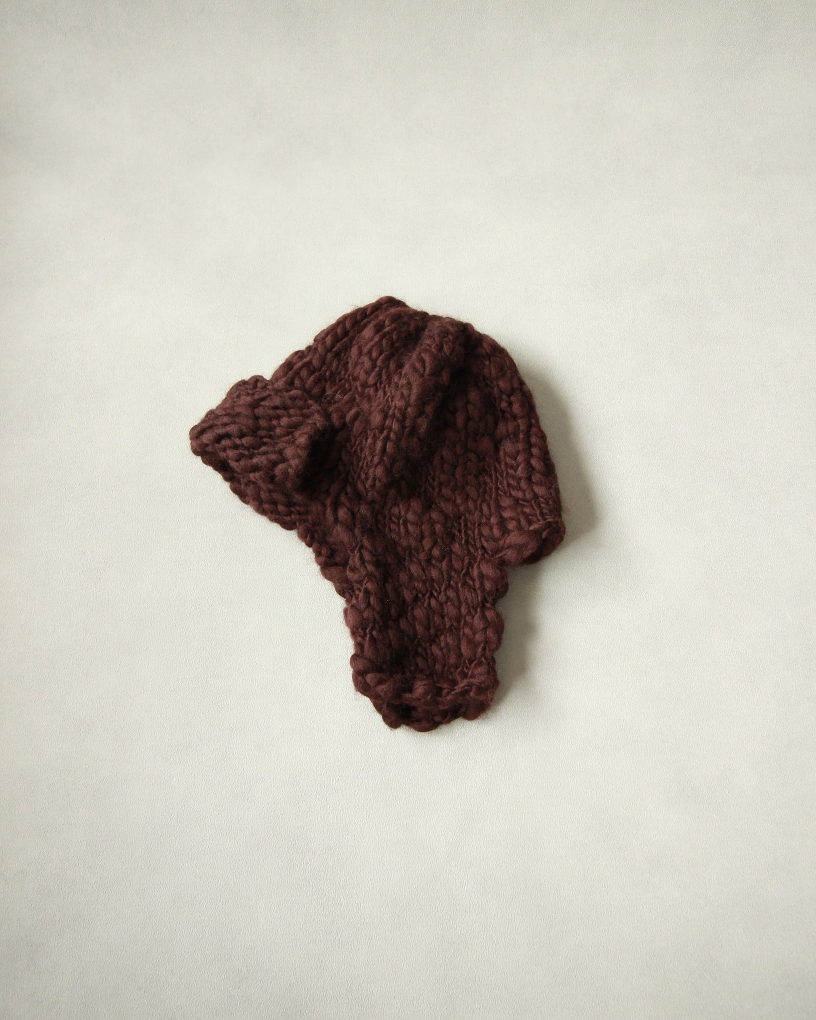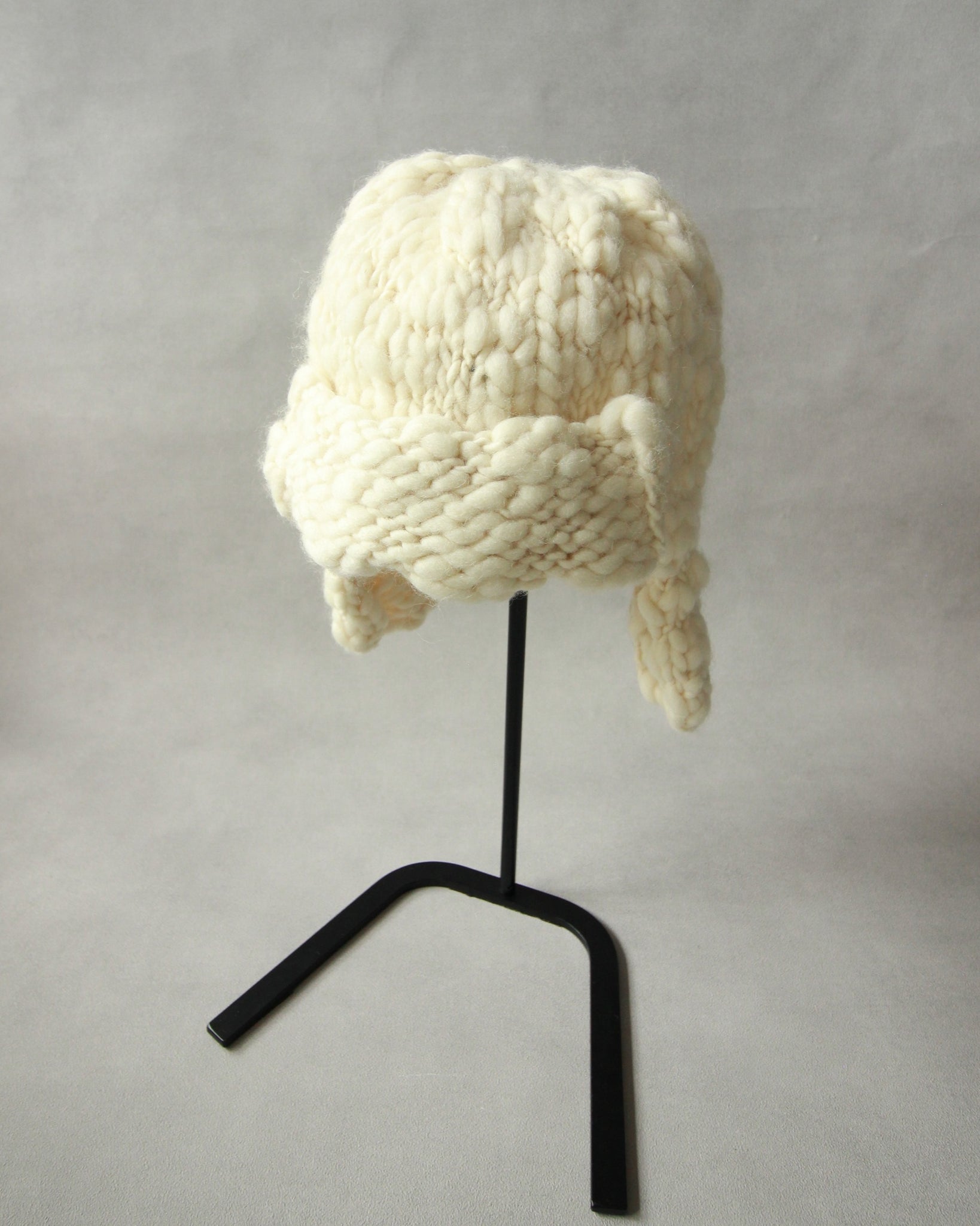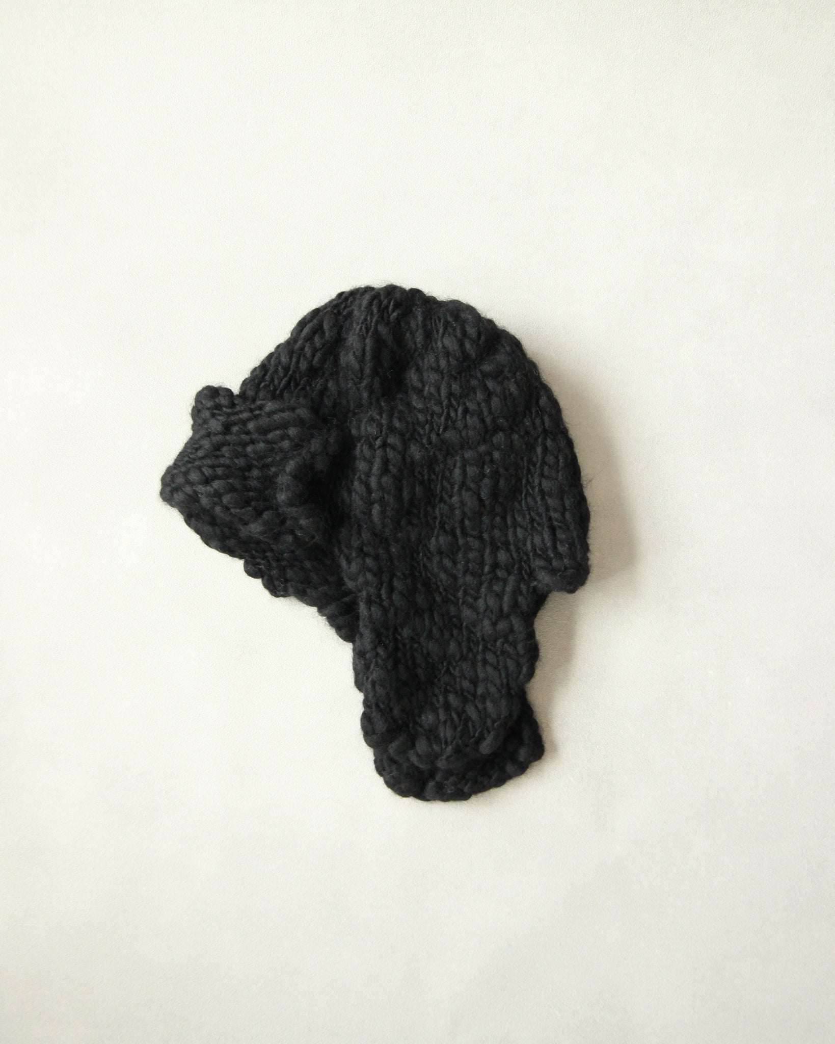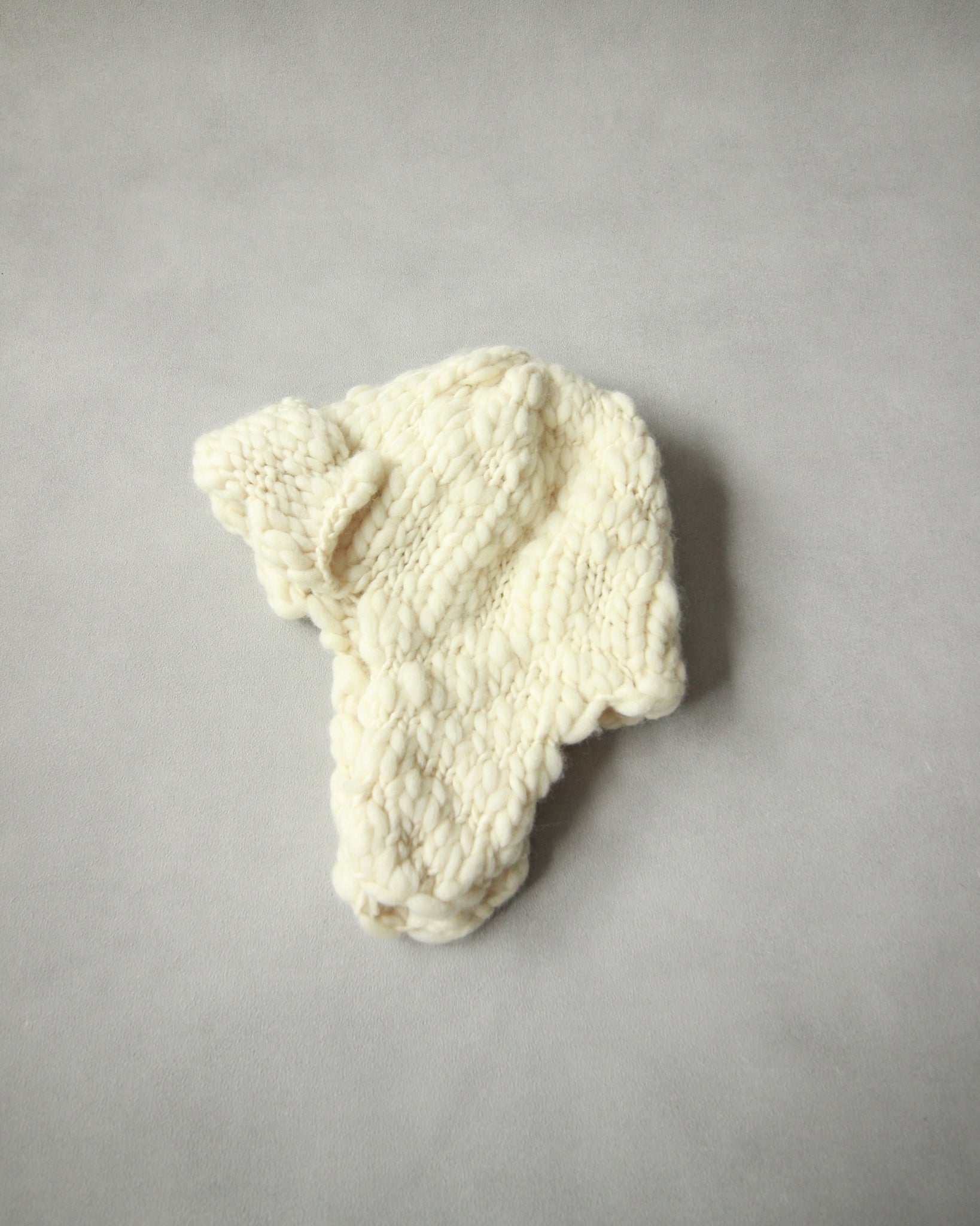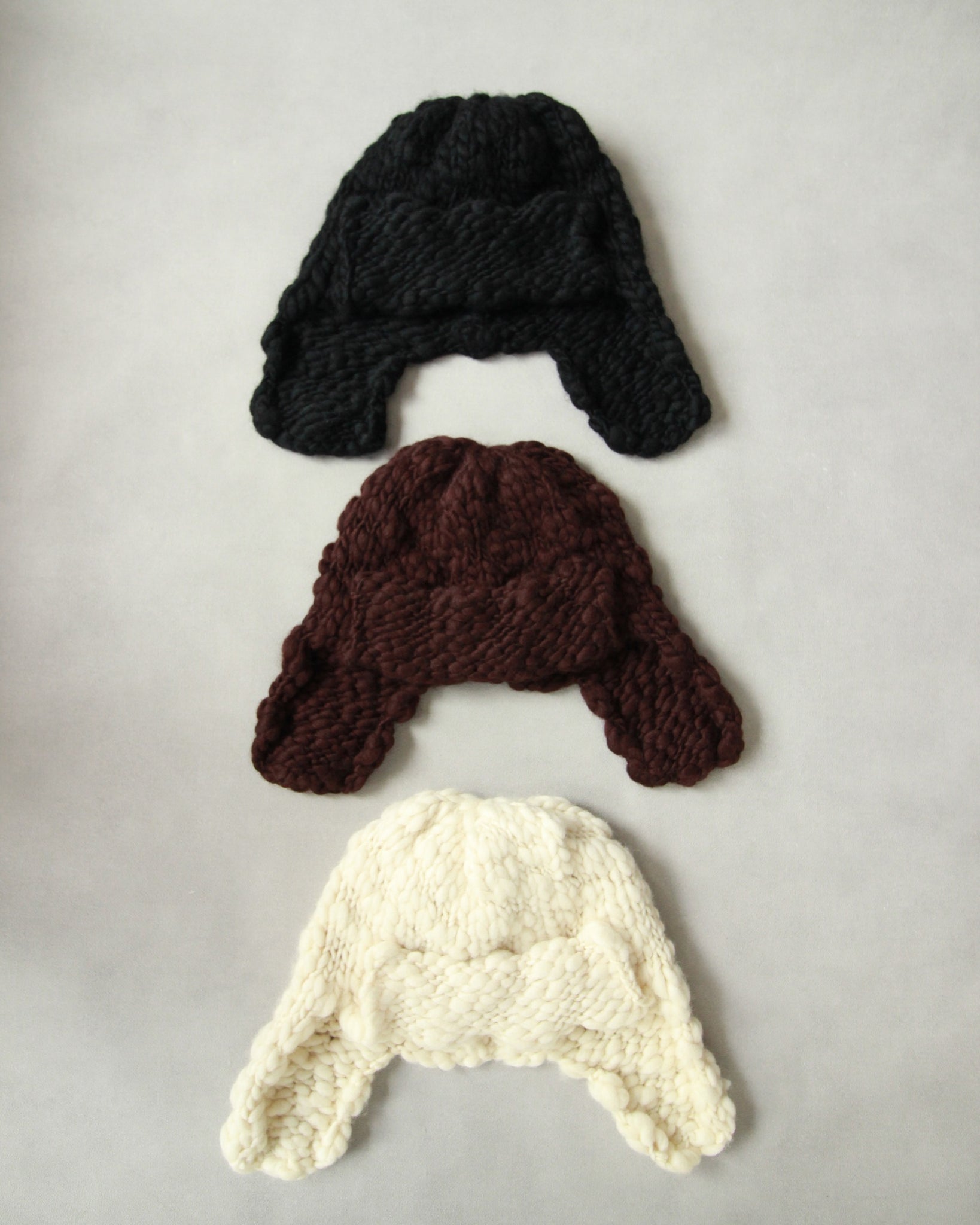 ソフトな手触りの極太スラブ糸を手編みで編み立てることにより、ふんわり柔らかな風合いと一点ずつ表情の異なる編地に仕上げました。
