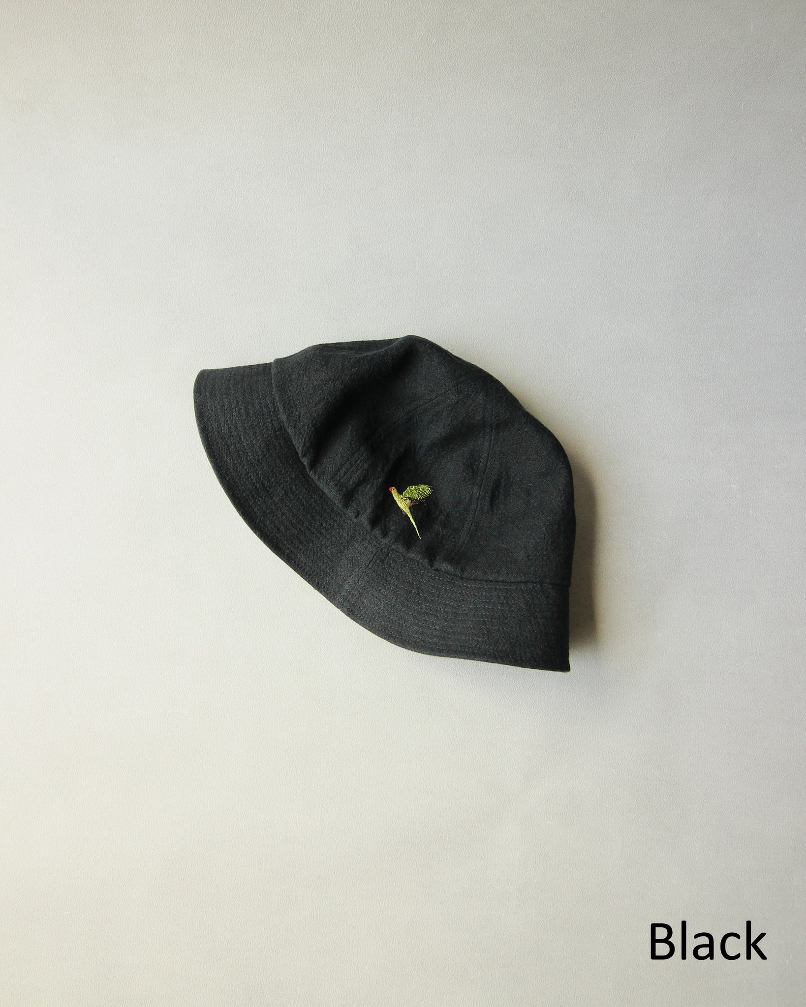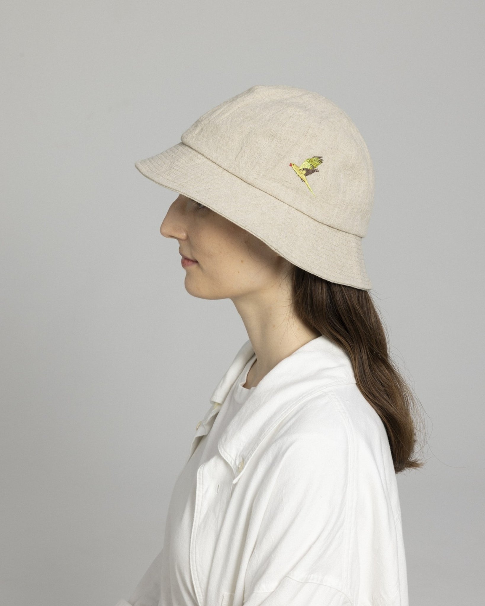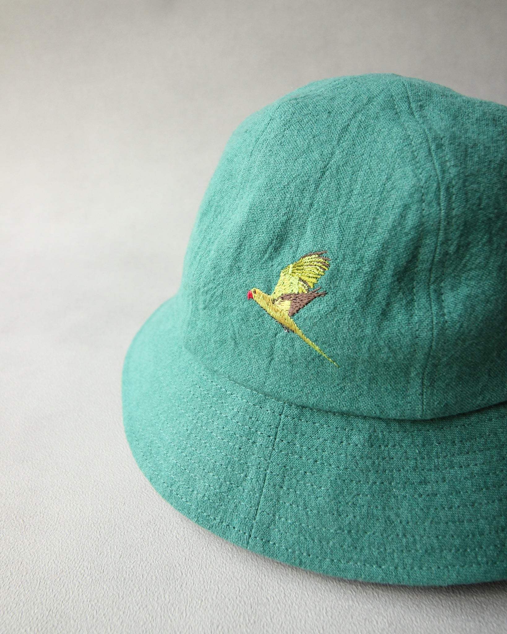 ワカケホンセイインコの刺繍が目を惹くメトロハット。