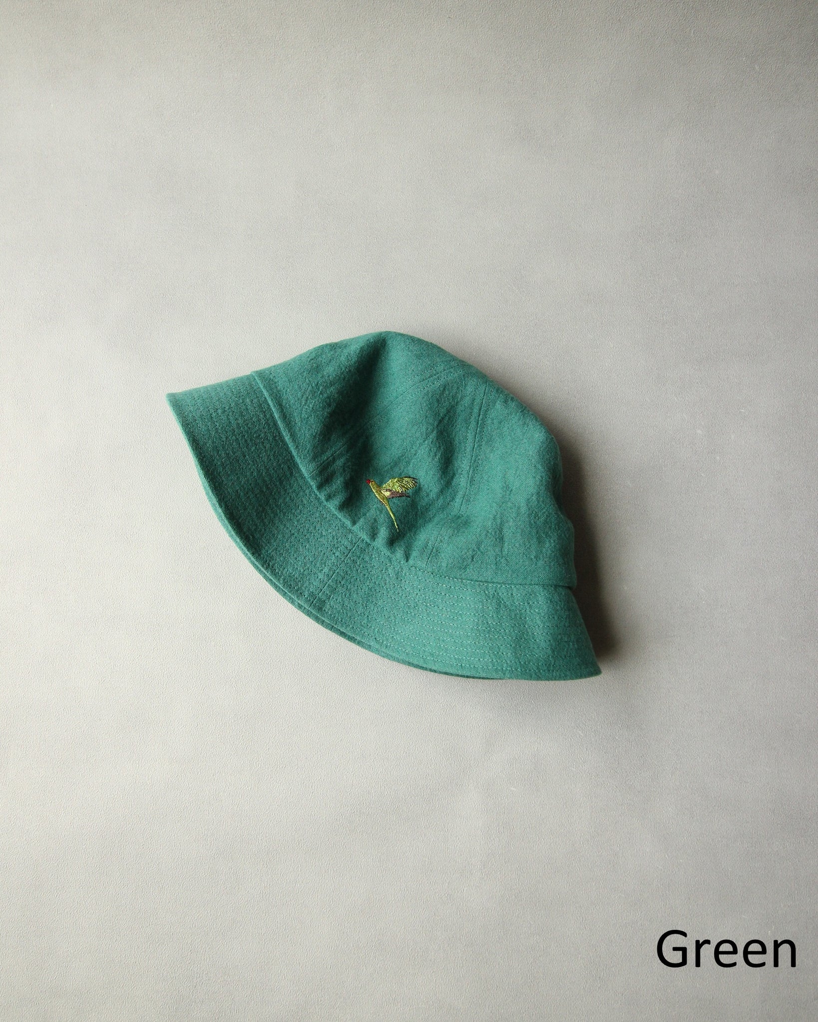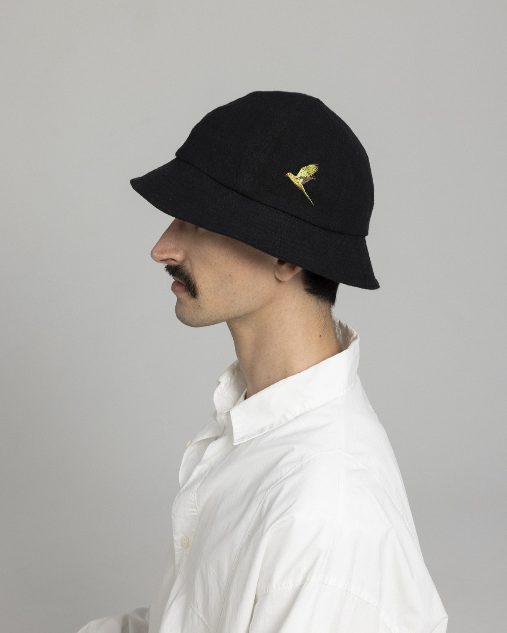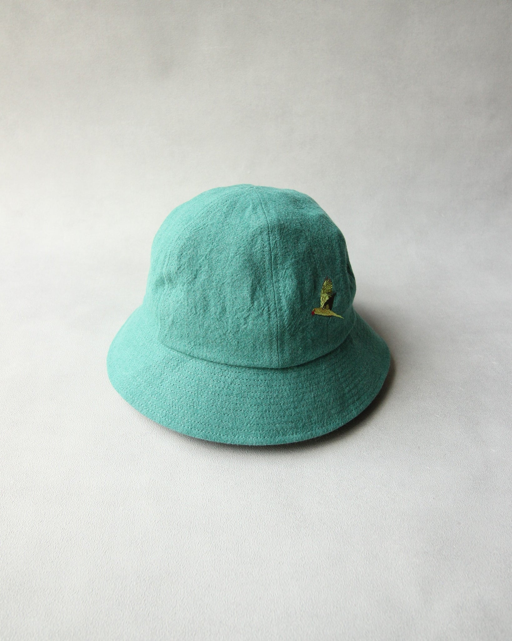 ワカケホンセイインコの刺繍が目を惹くメトロハット。