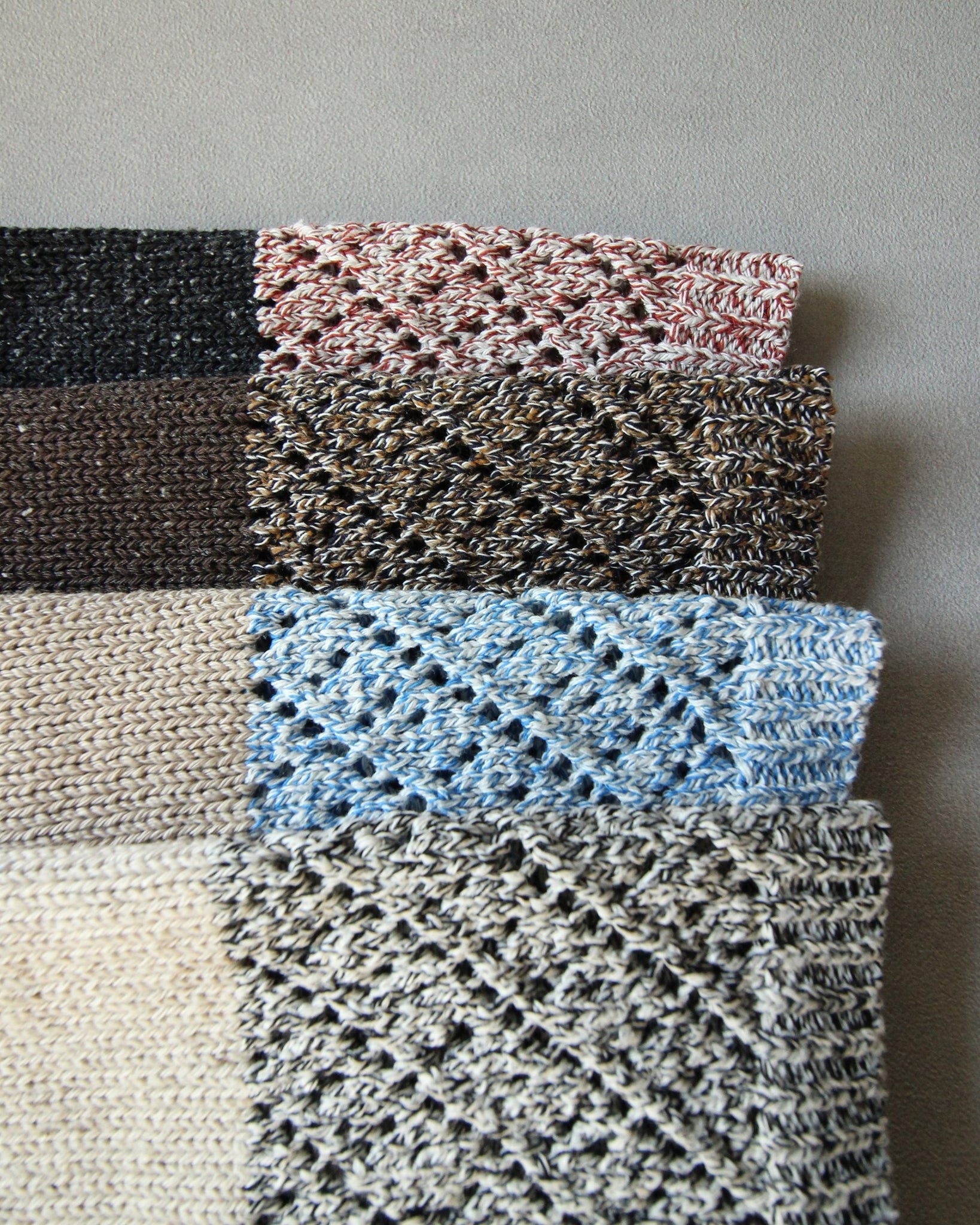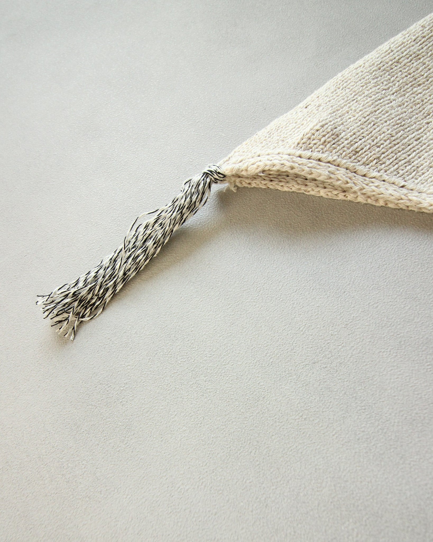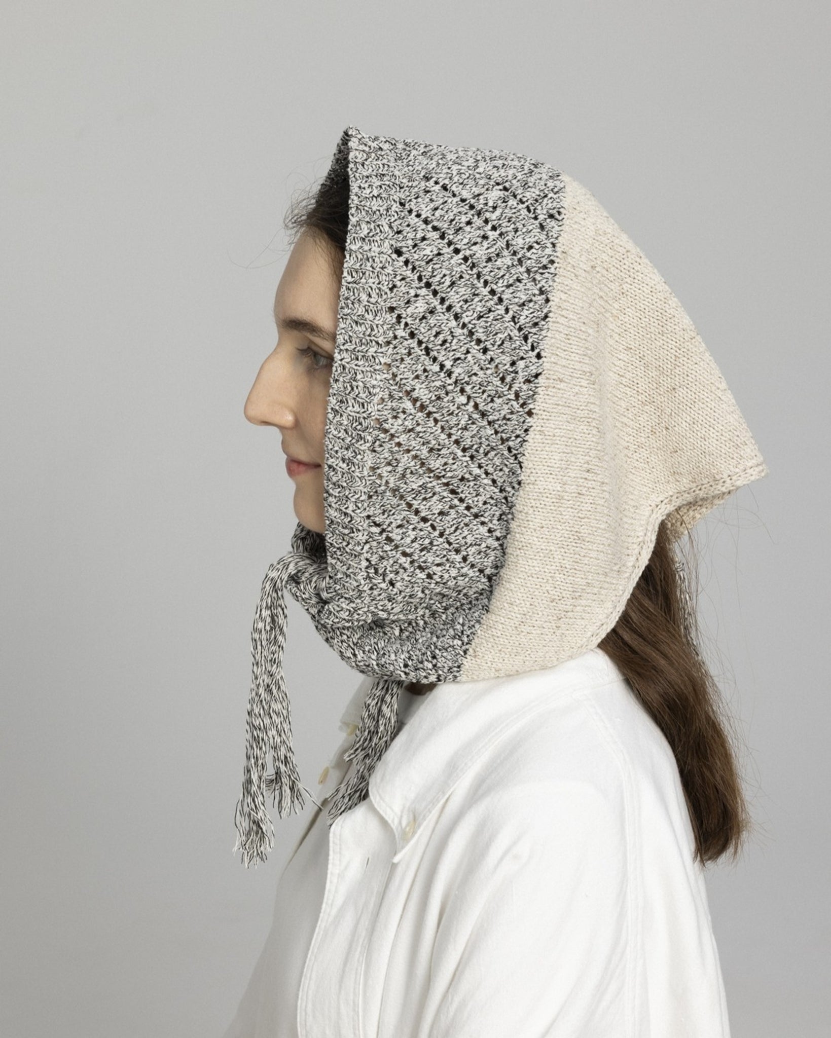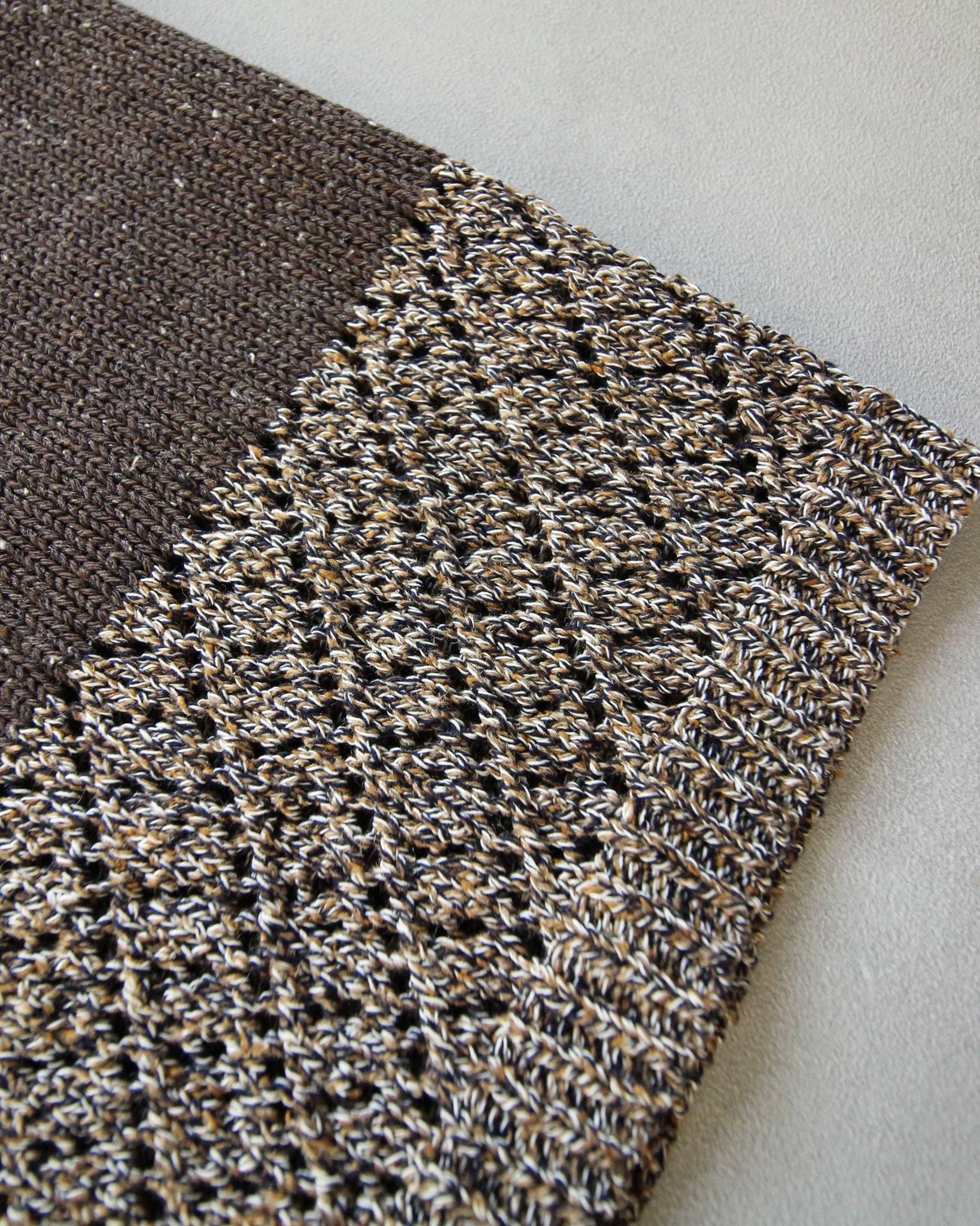 表情豊かなシルクと、特殊加工を施したコットンを、撚り合わせ編み立てしたニットストール。