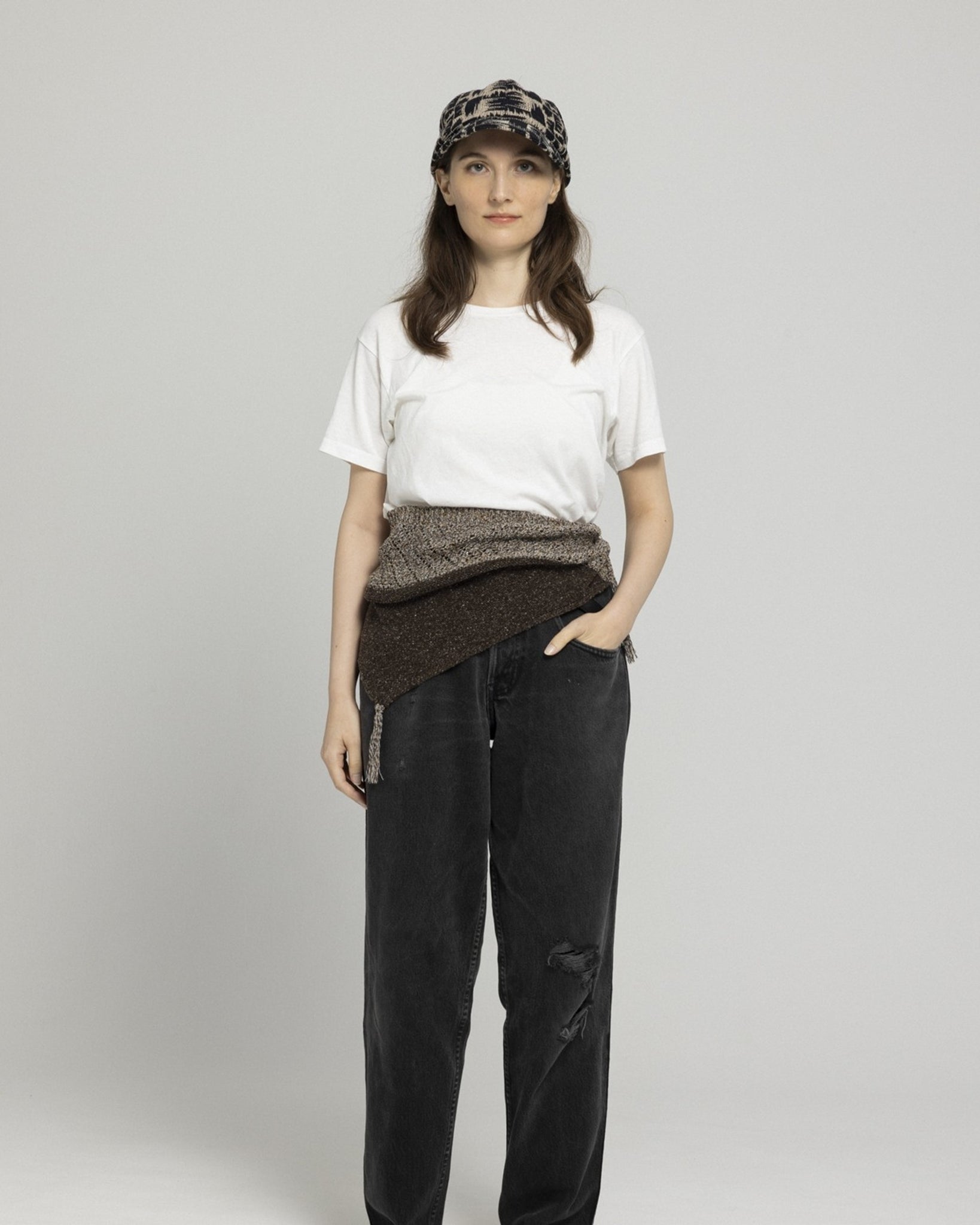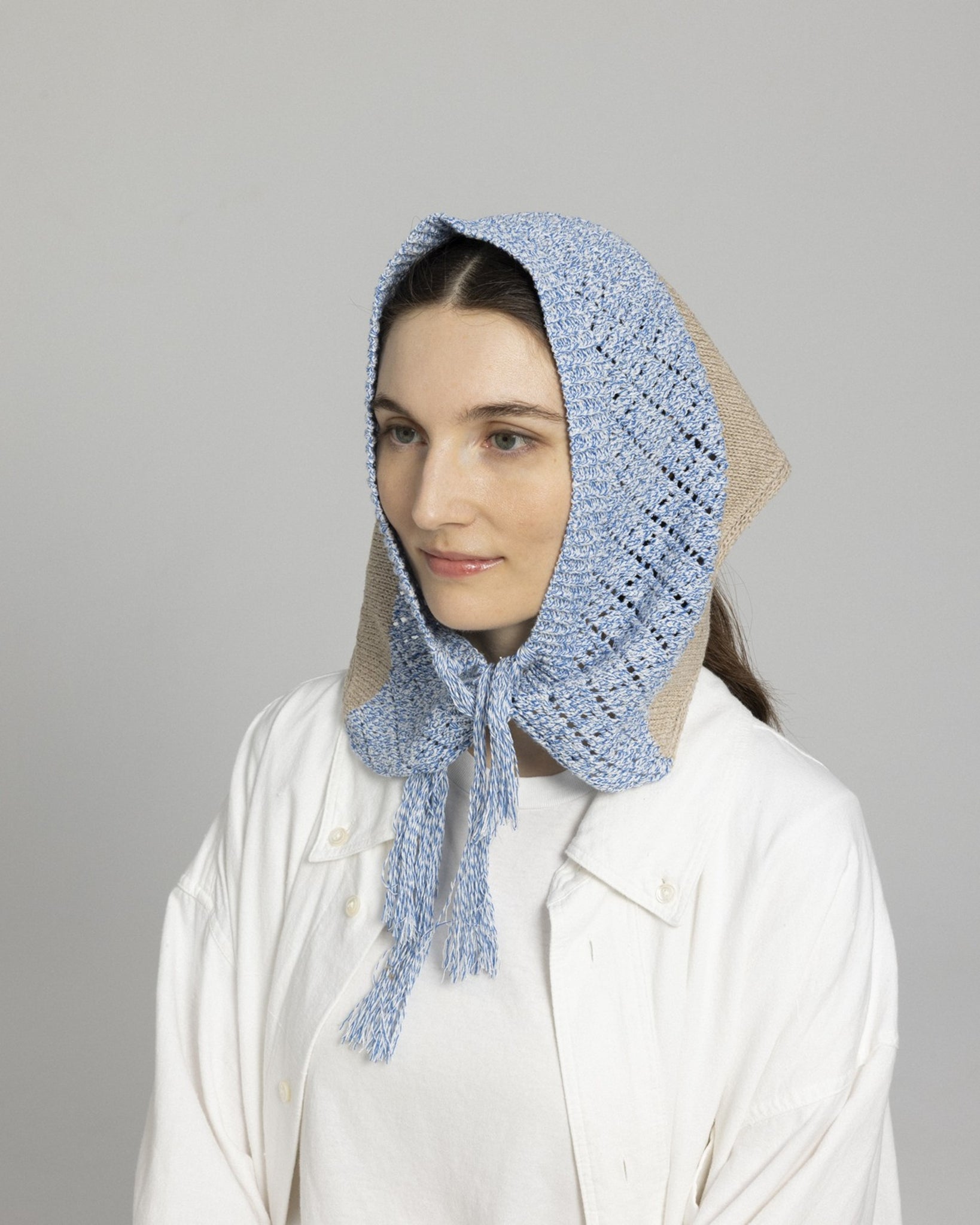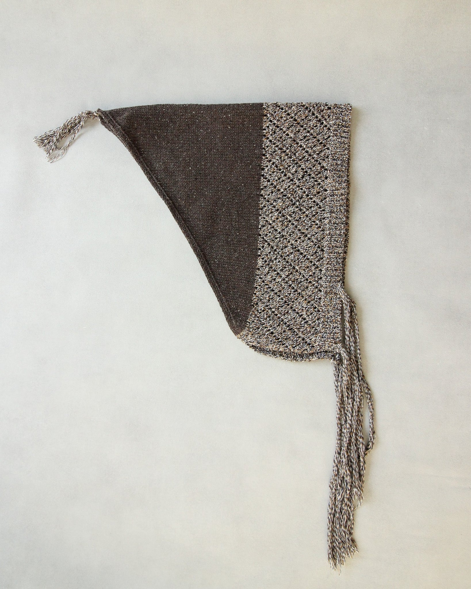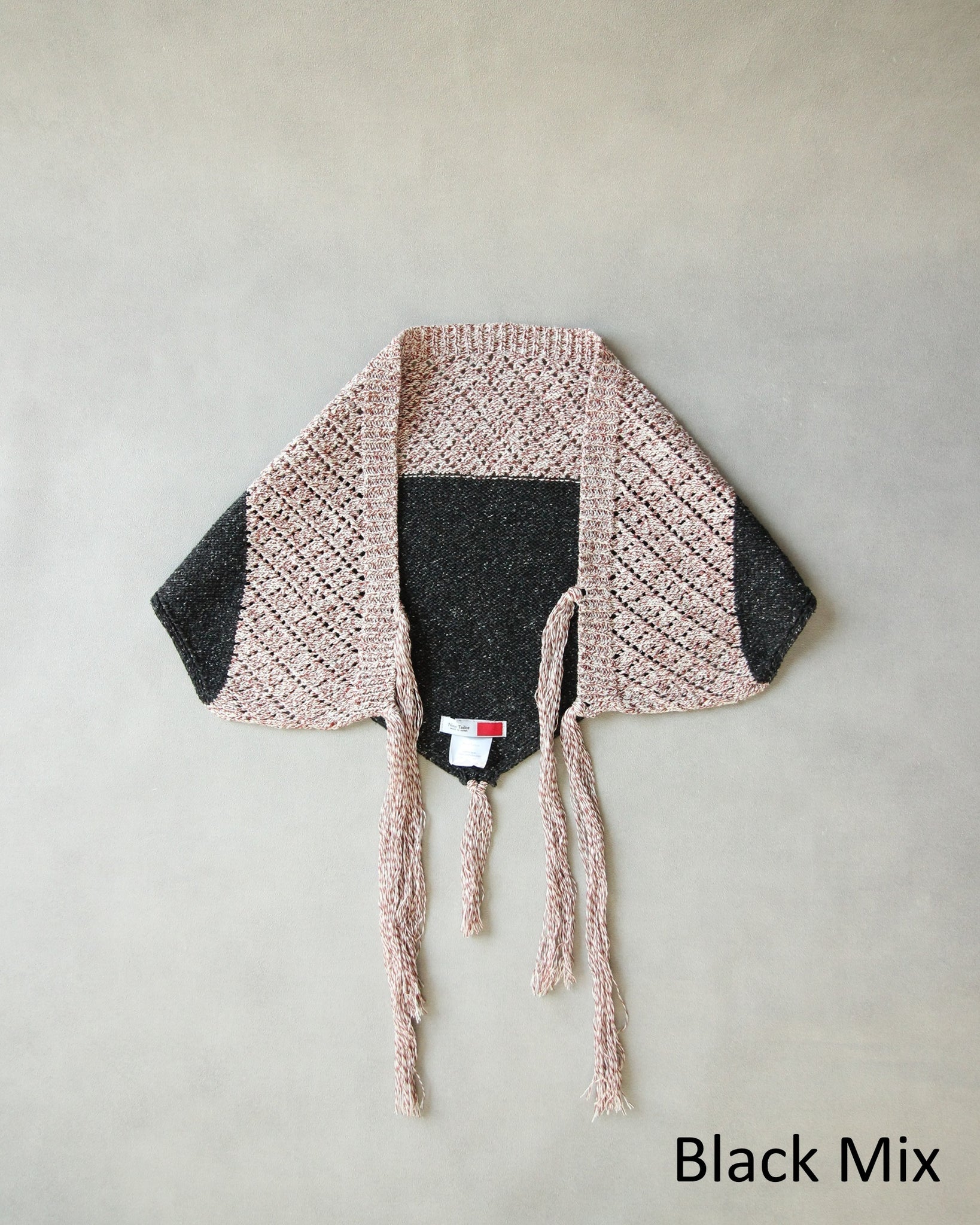 表情豊かなシルクと、特殊加工を施したコットンを、撚り合わせ編み立てしたニットストール。