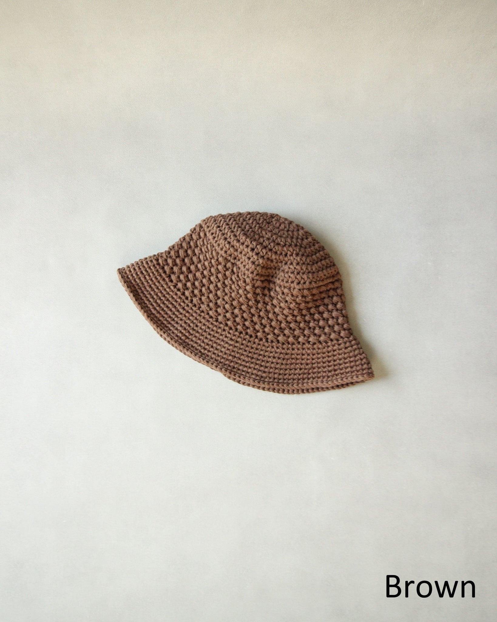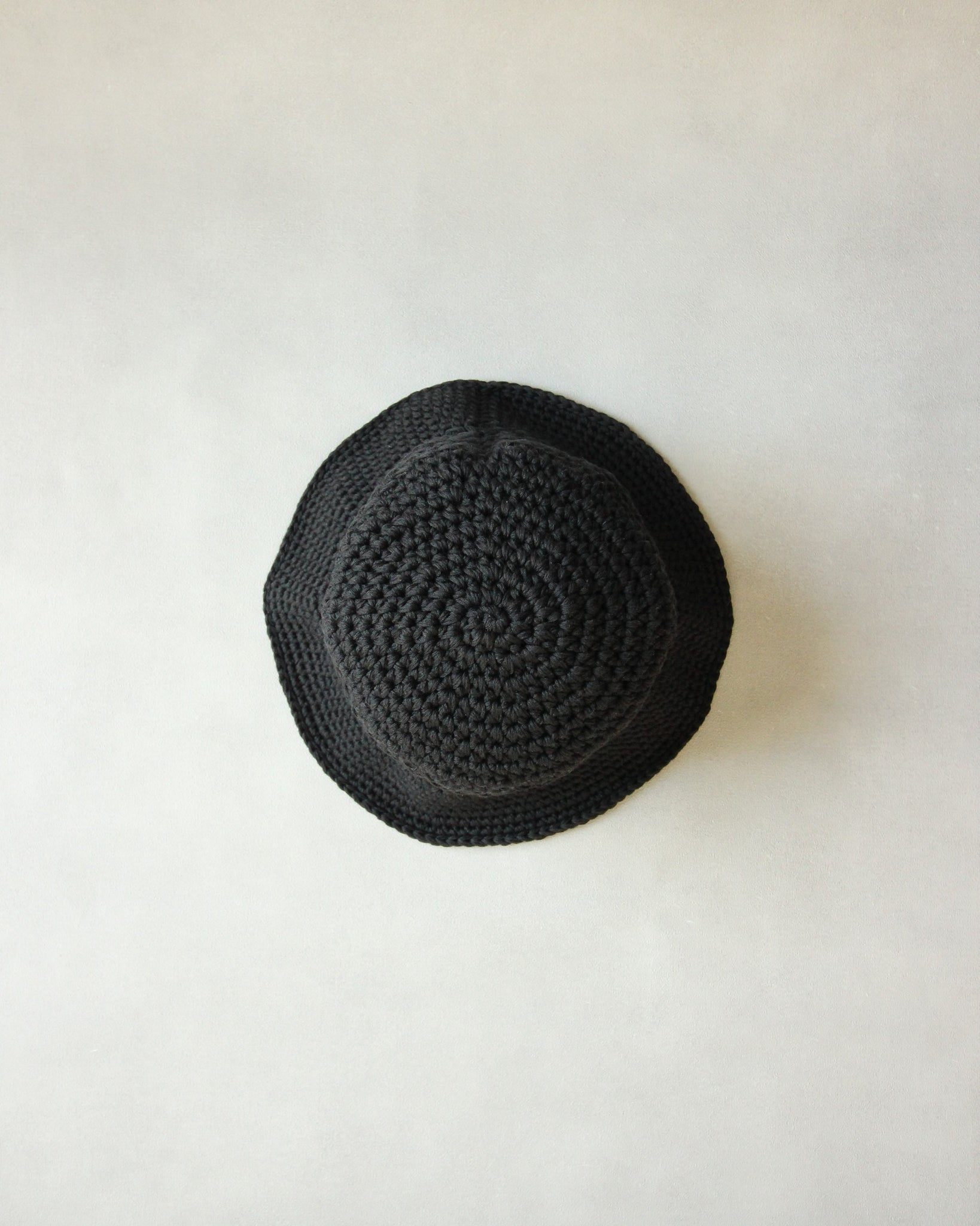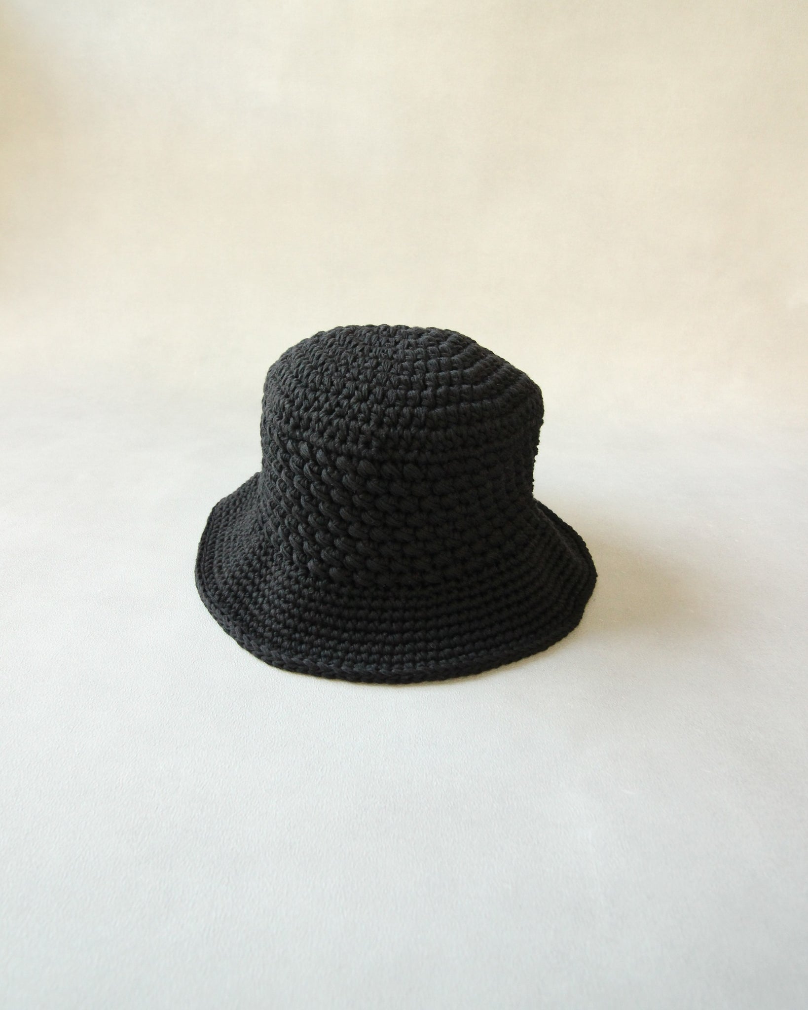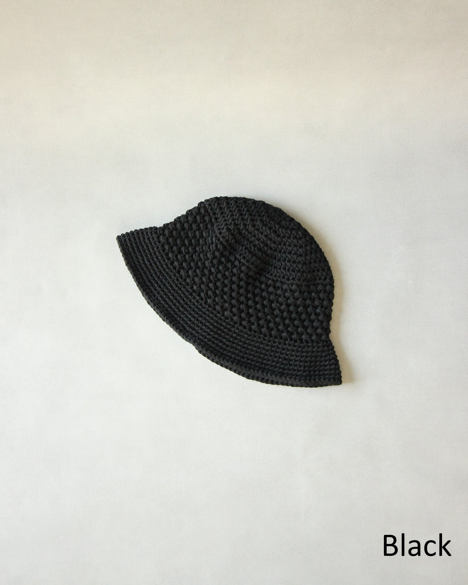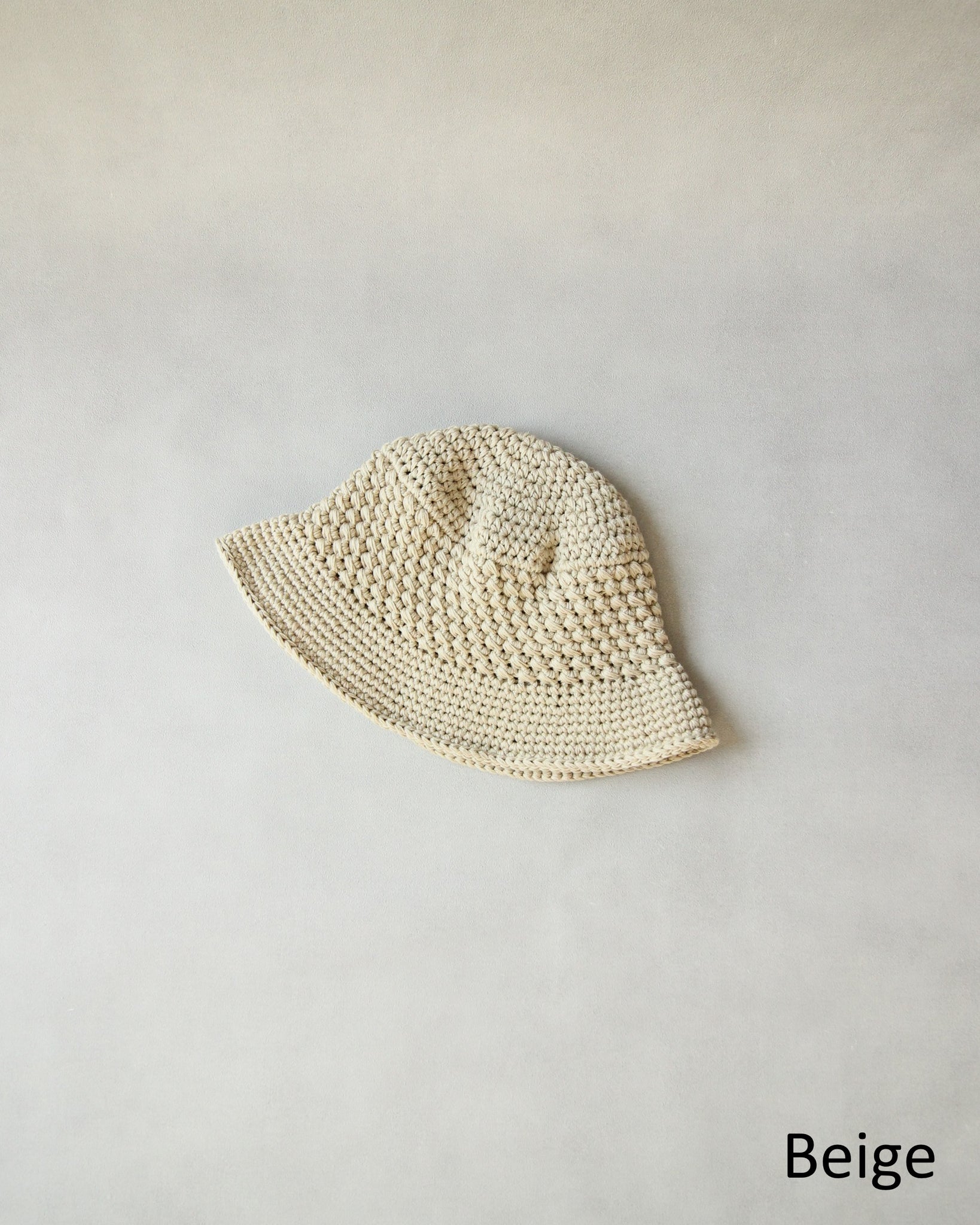 コシのある糸でざっくりと編み立てた手編みの綿混ニットハット。