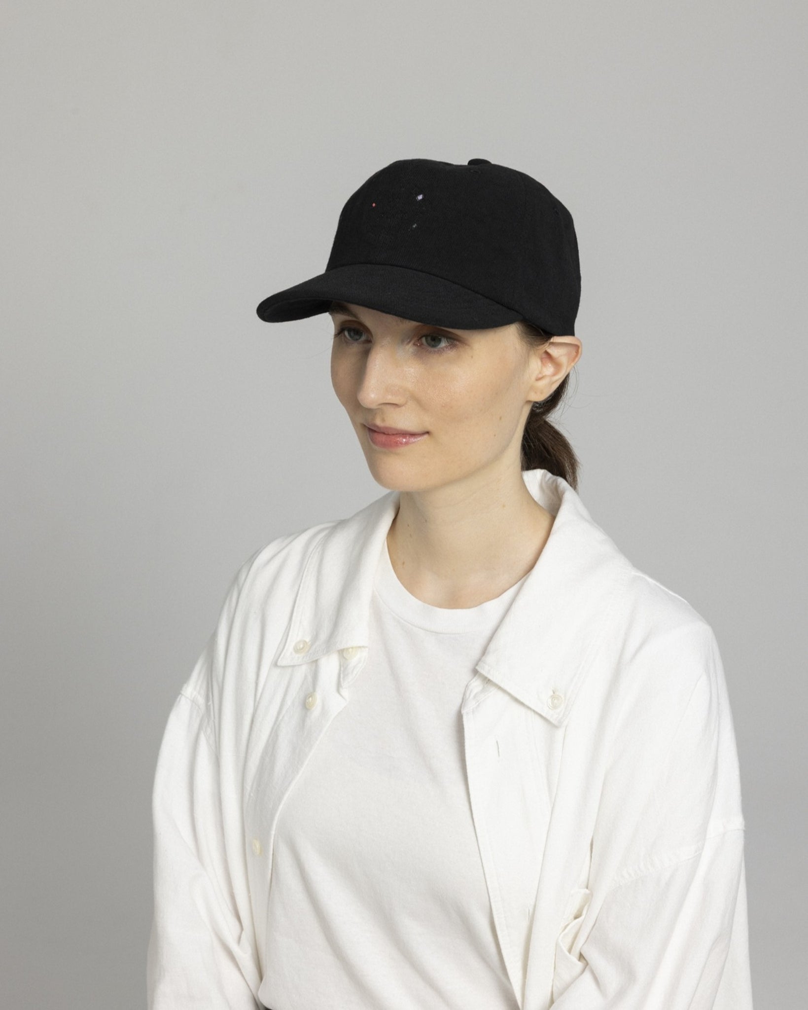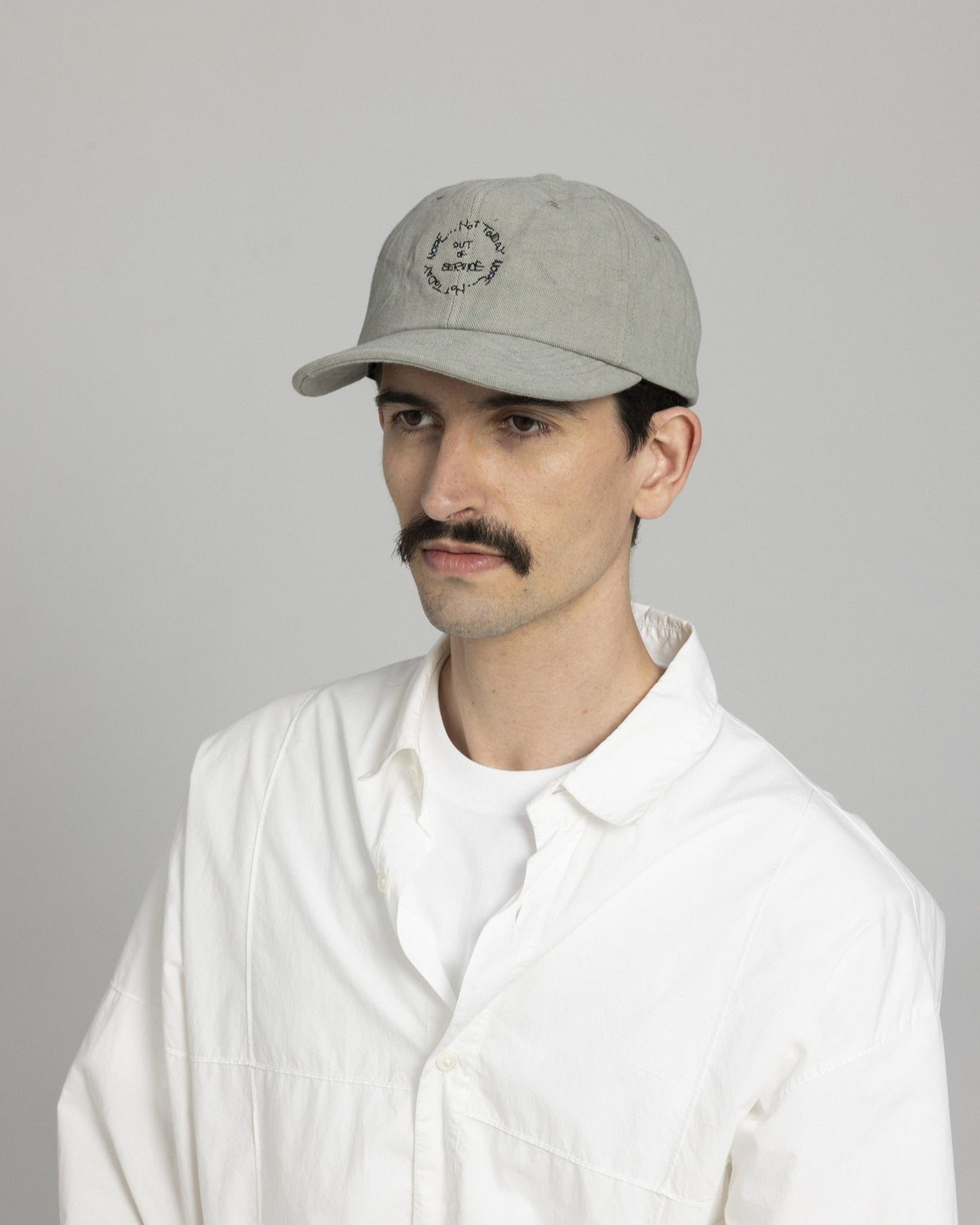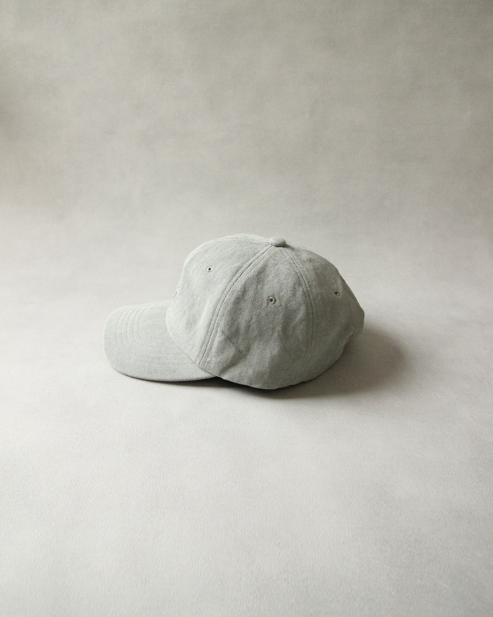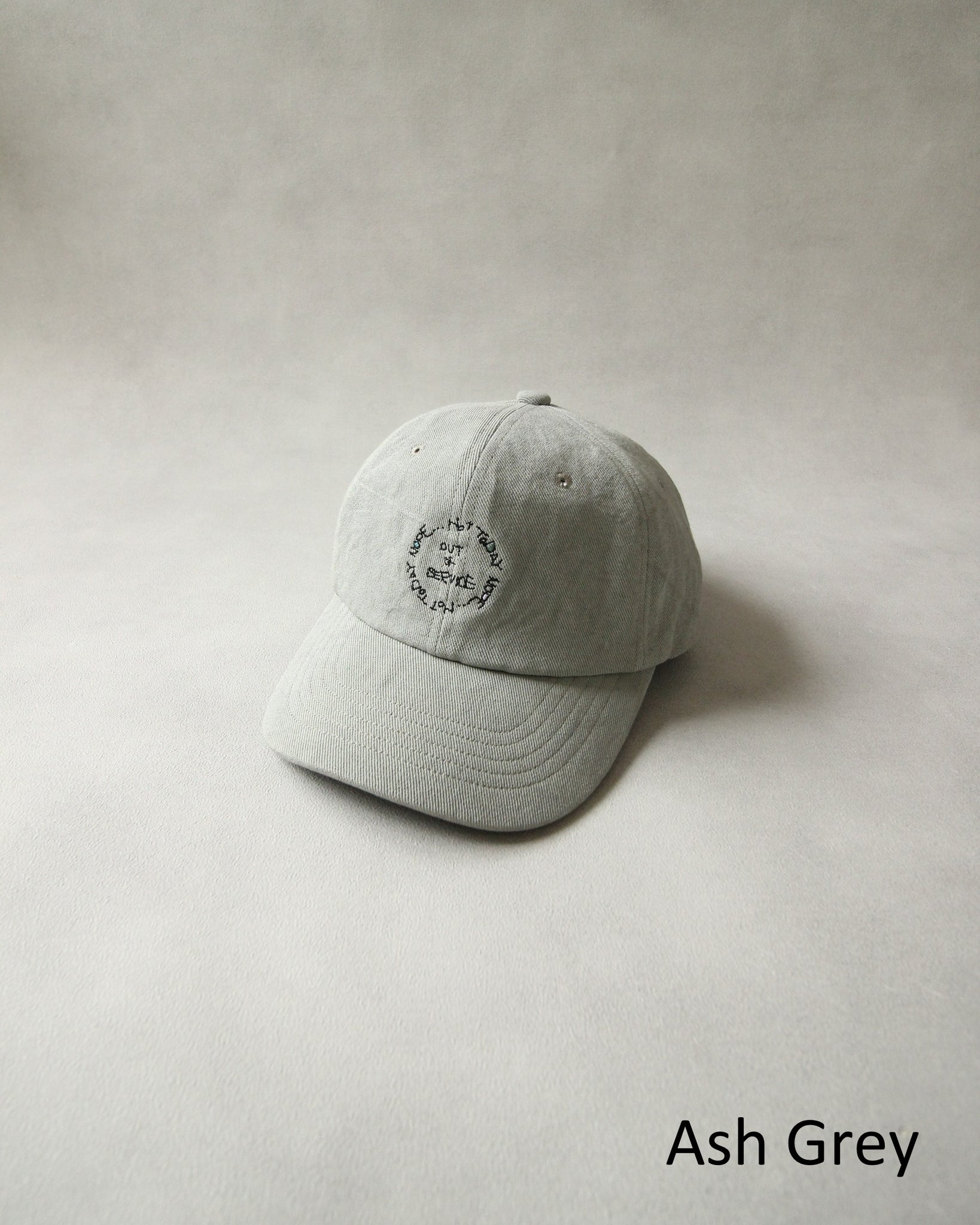 力の抜けた手書き刺繍を施したベースボールキャップ。