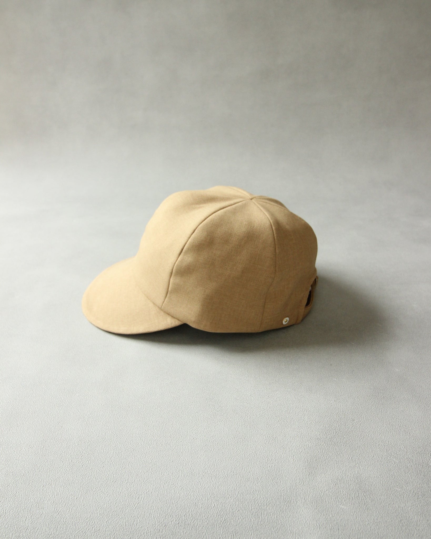 優れたUV遮蔽効果のある生地を使用し、キャップとキャスケットの中間にあたるシルエットで仕上げています。