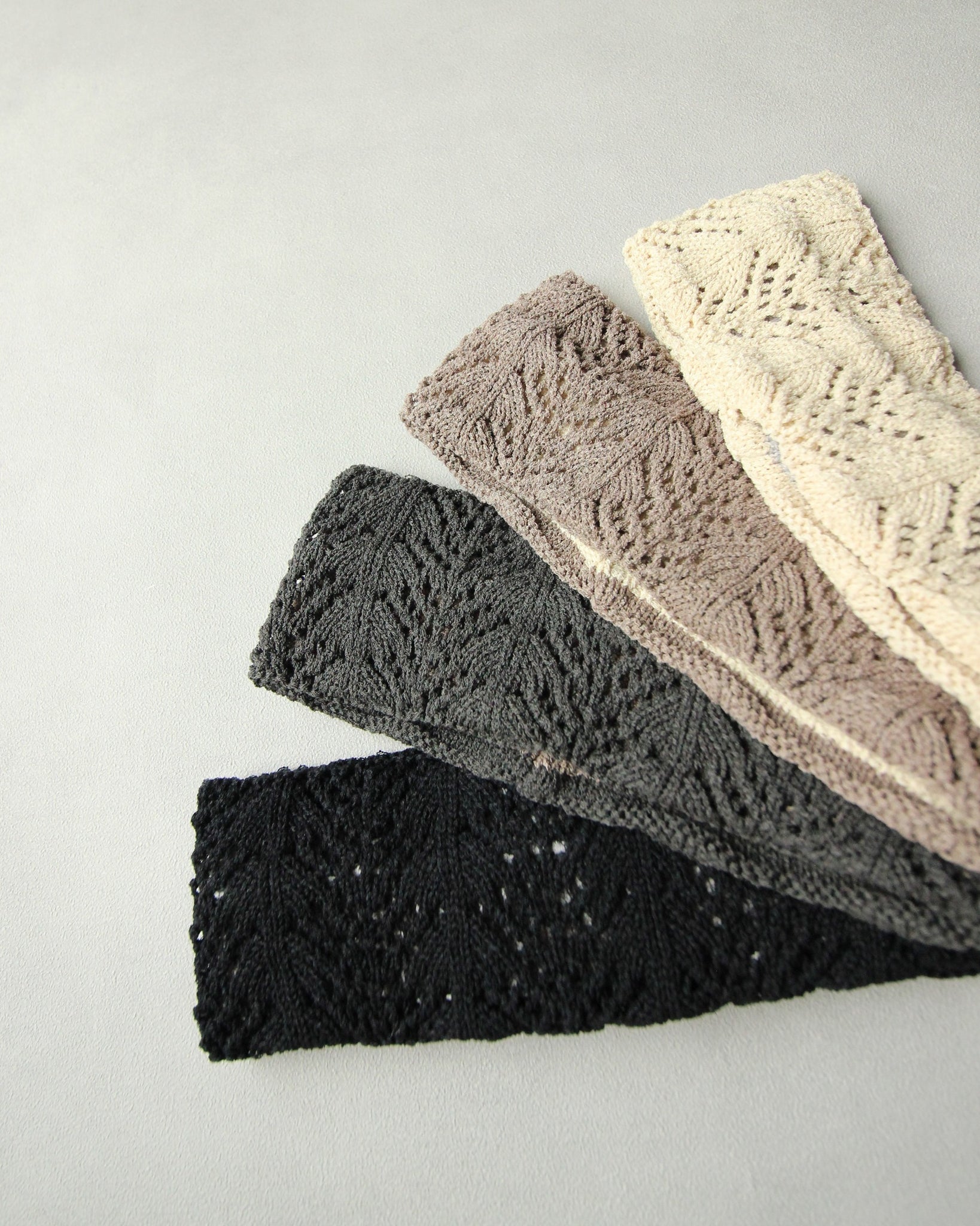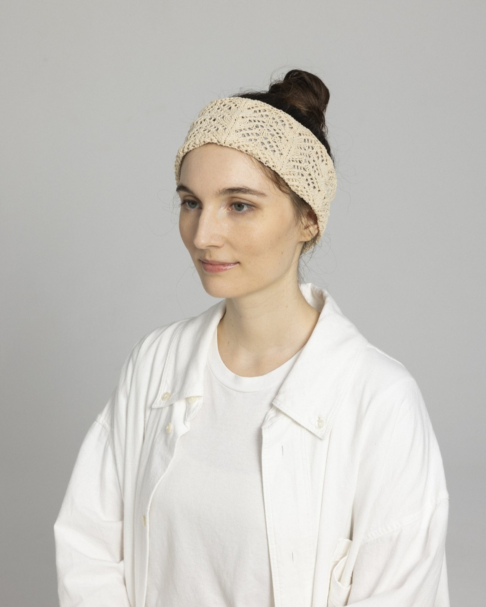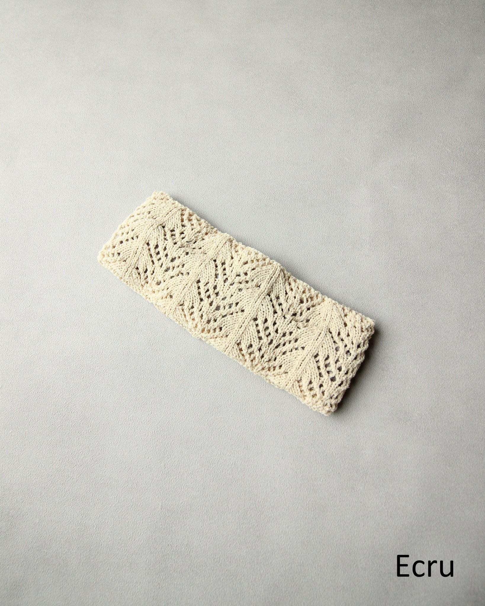 麻のようなシャリ感と、さりげない編み柄が特徴のヘアバンド。