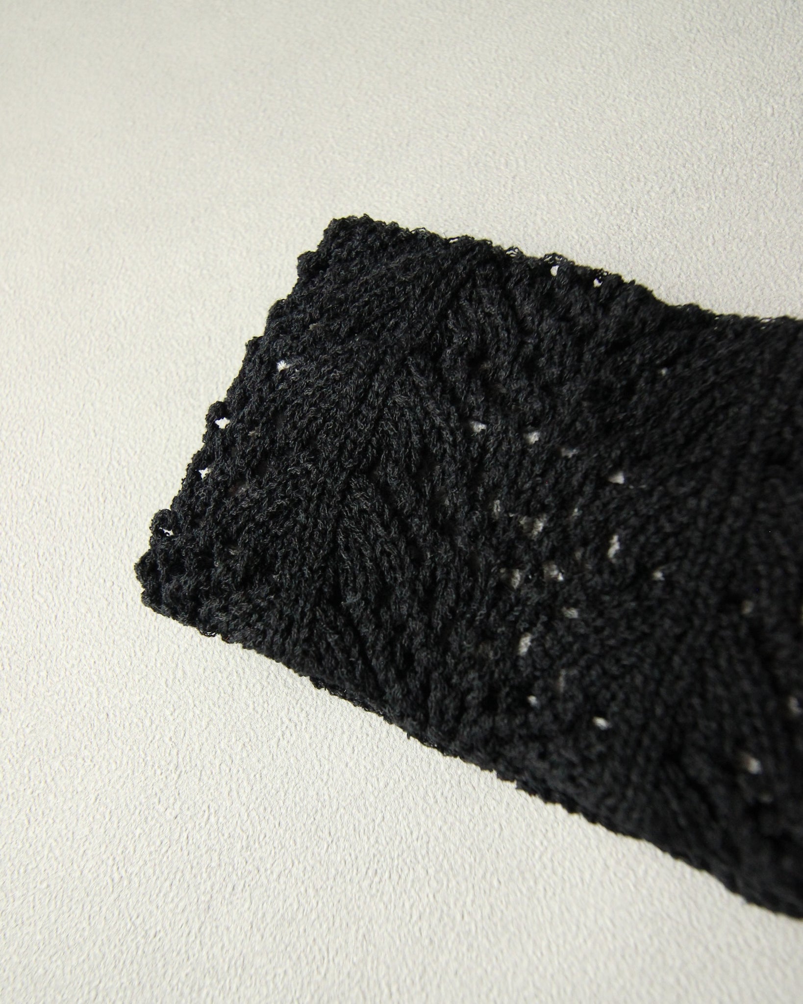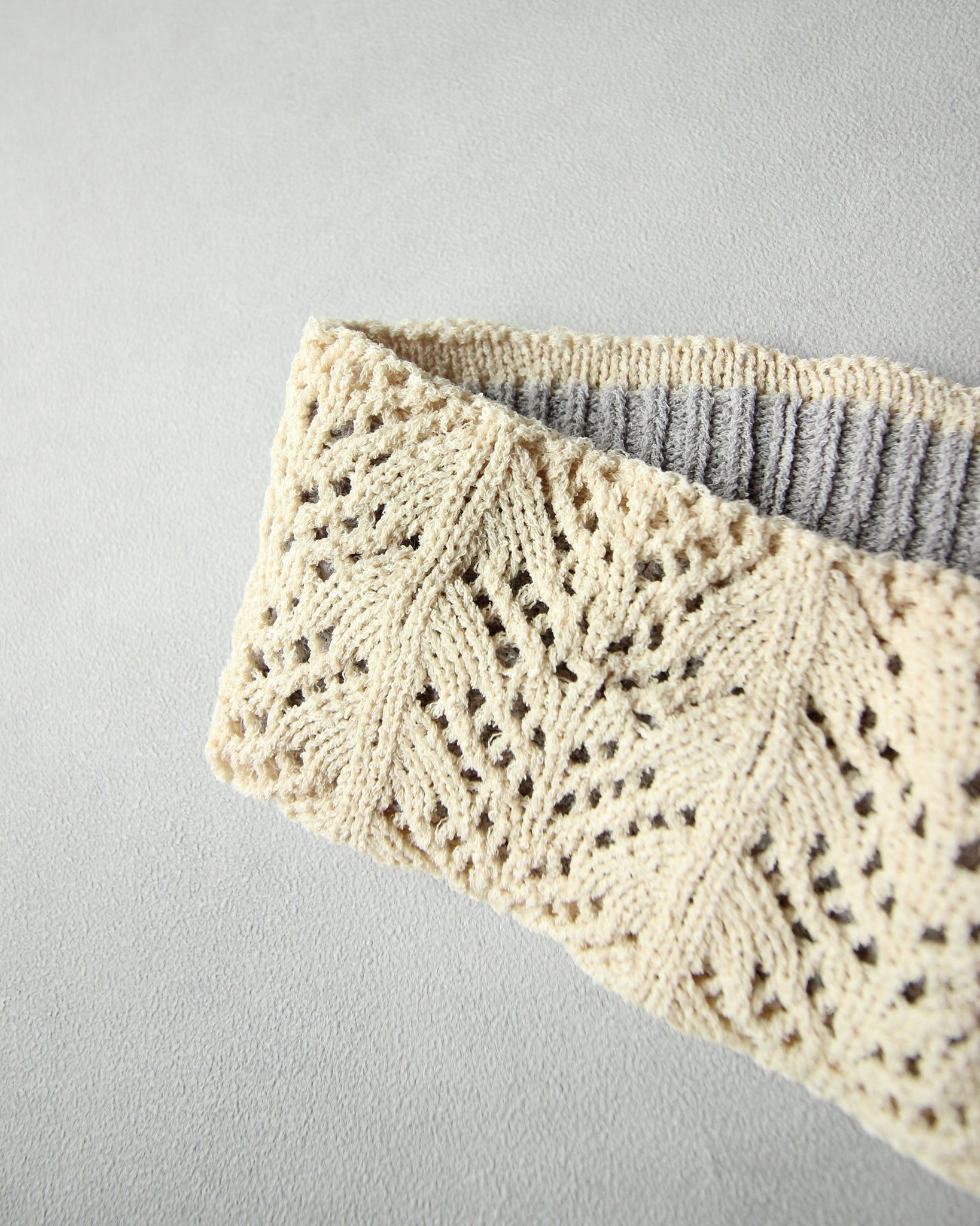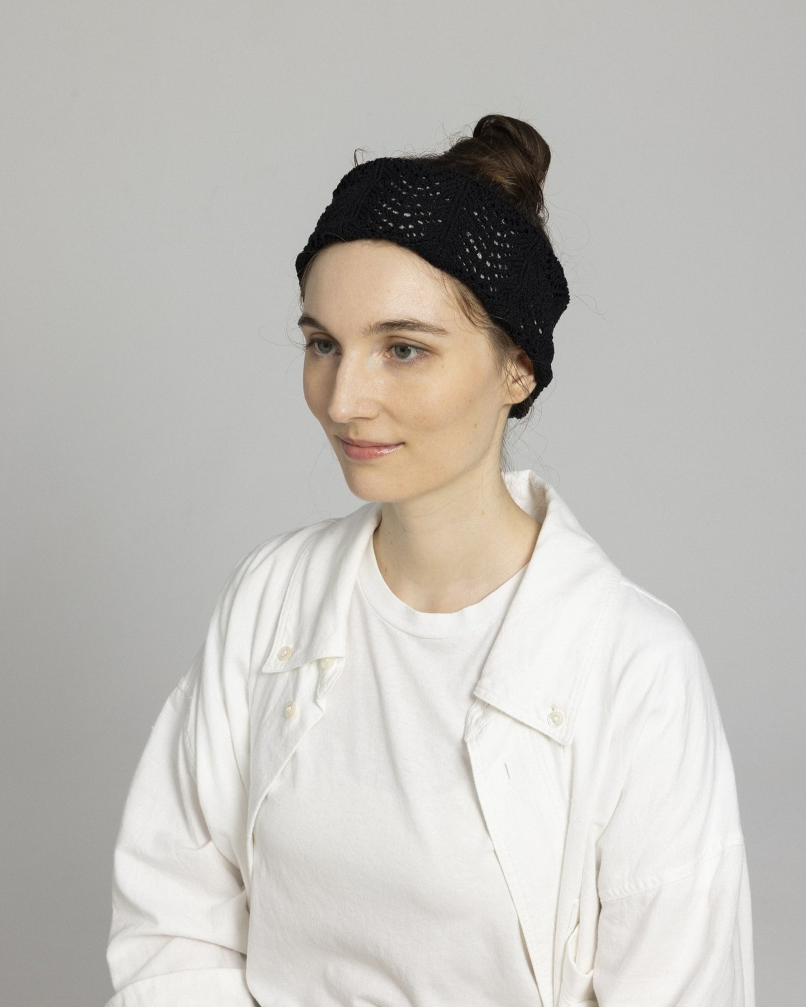 麻のようなシャリ感と、さりげない編み柄が特徴のヘアバンド。