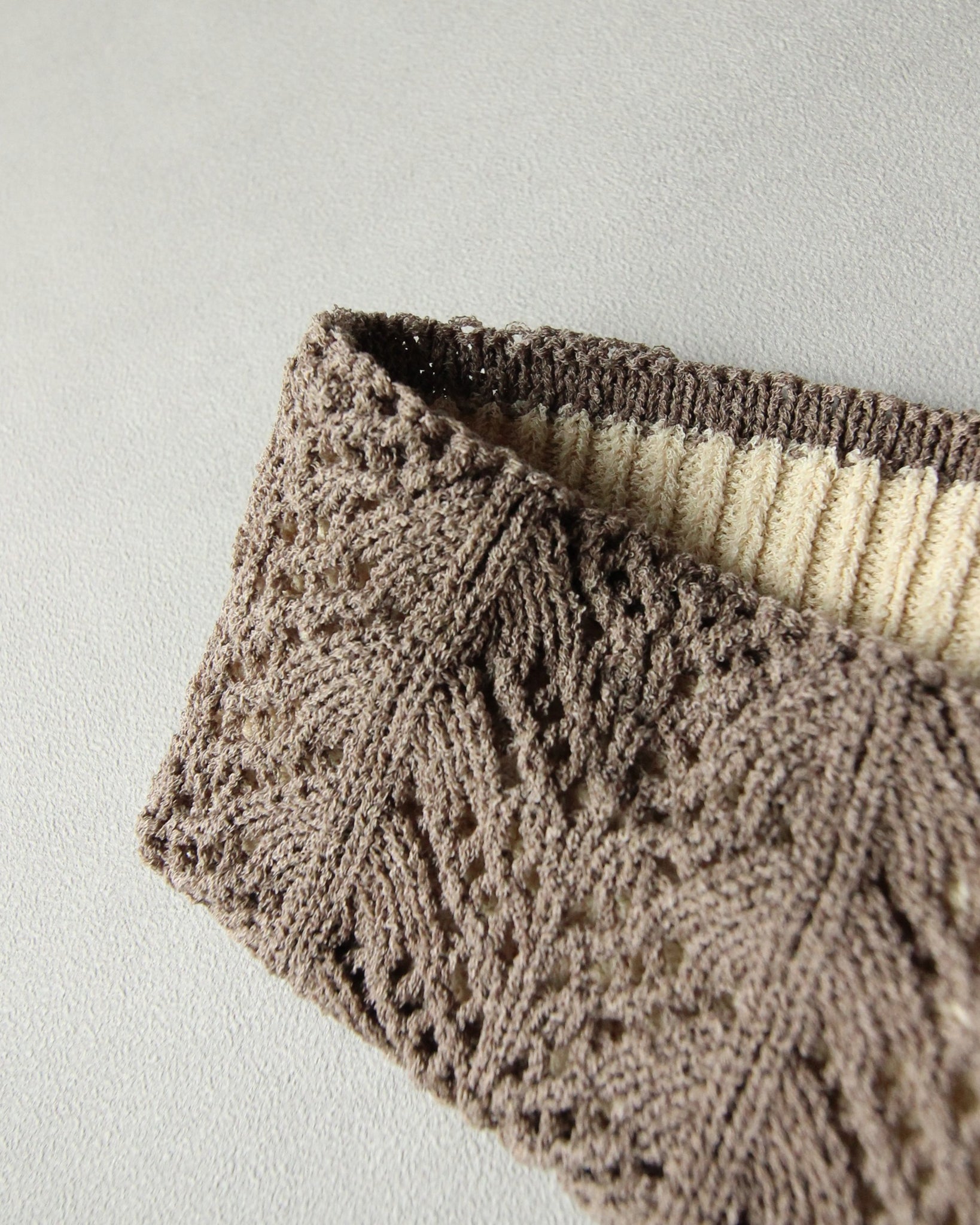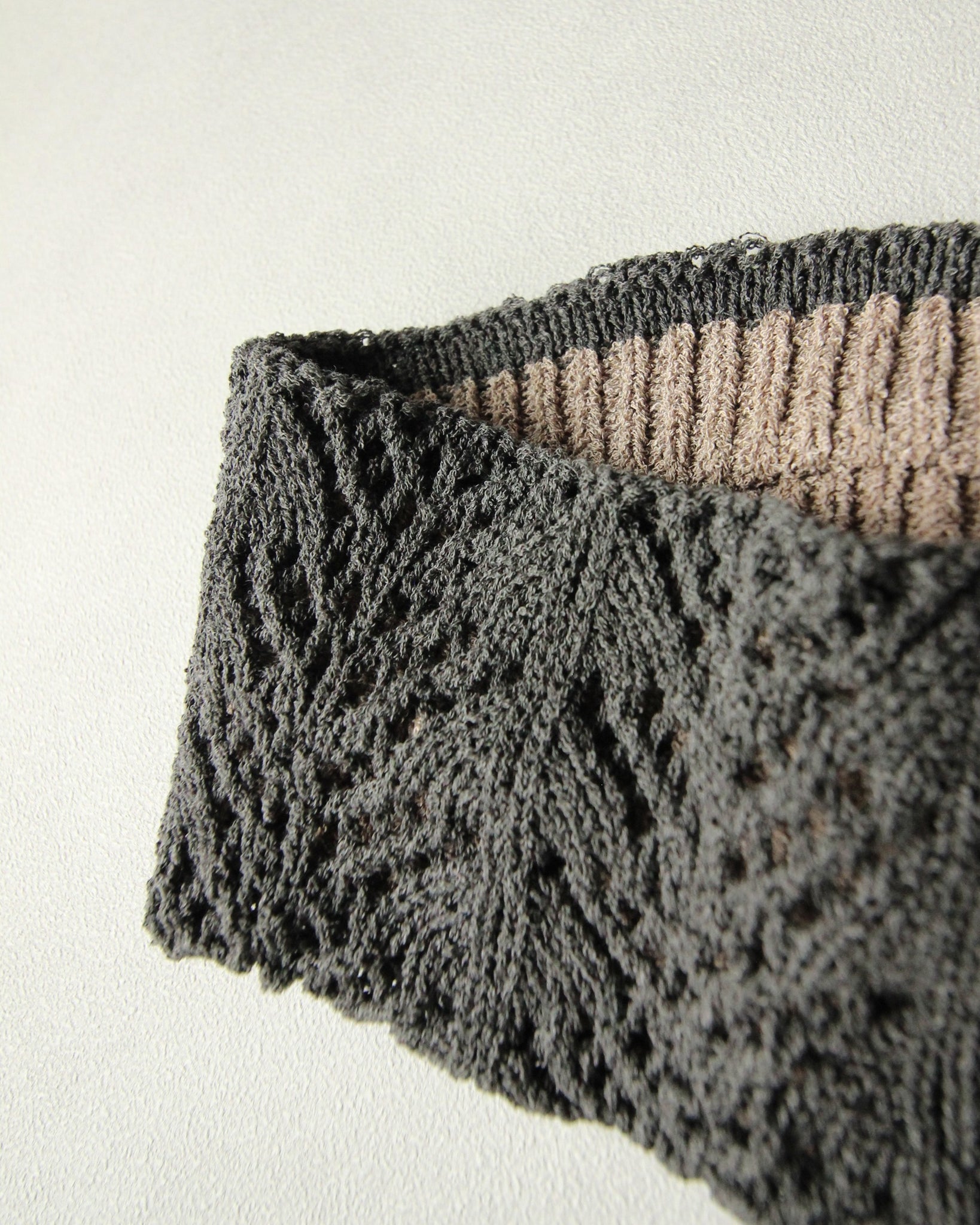 編み柄の際間からほんのり覗く裏地の色合いが、さりげない奥行きを生んでいます。