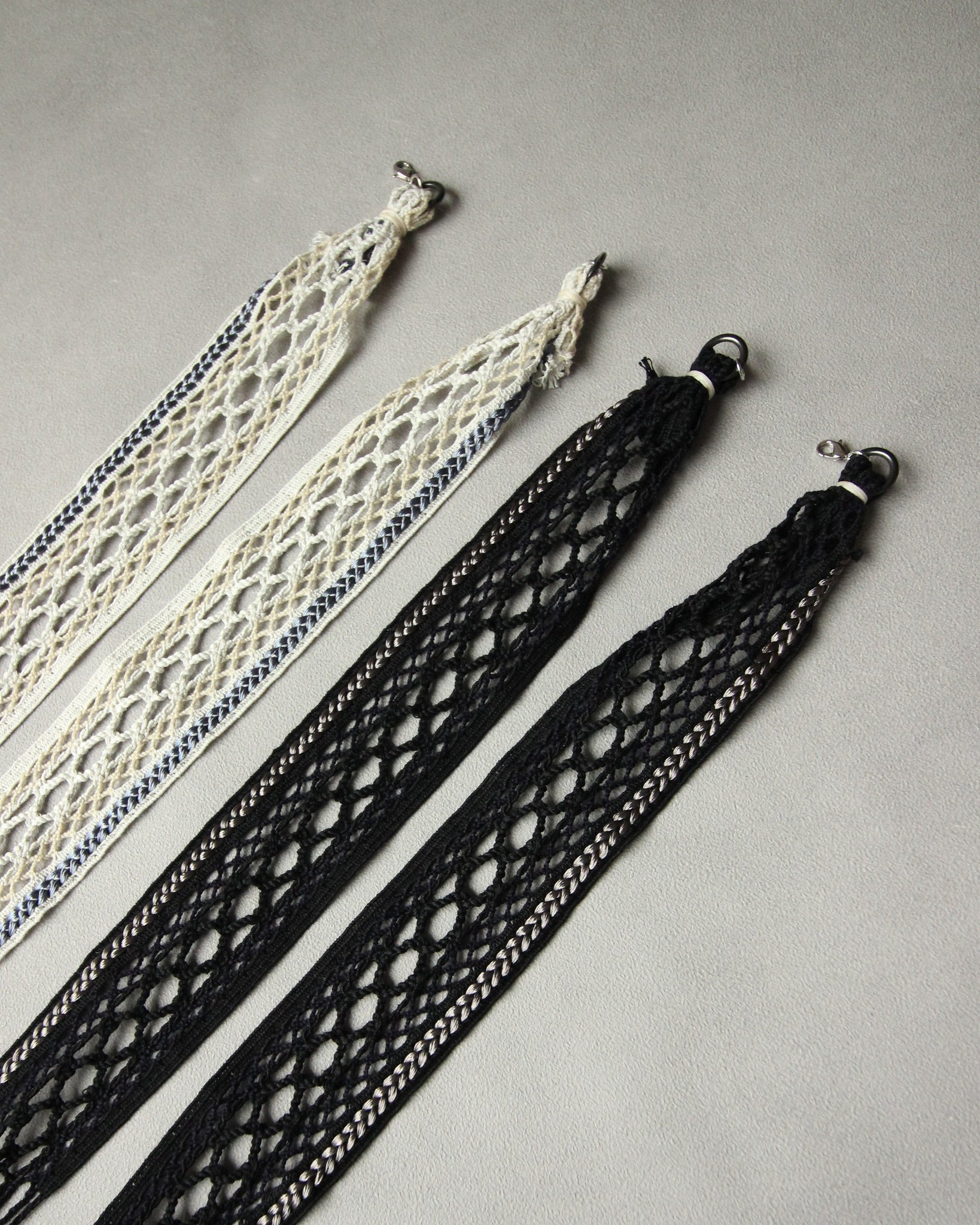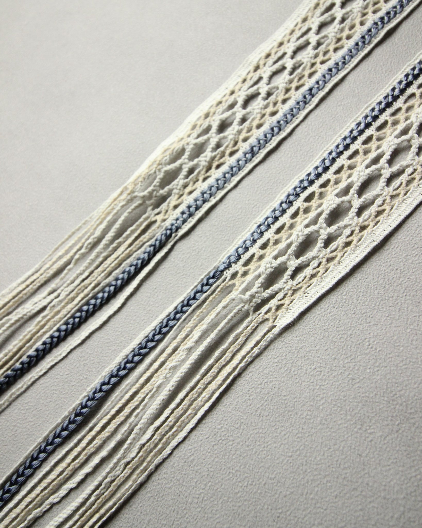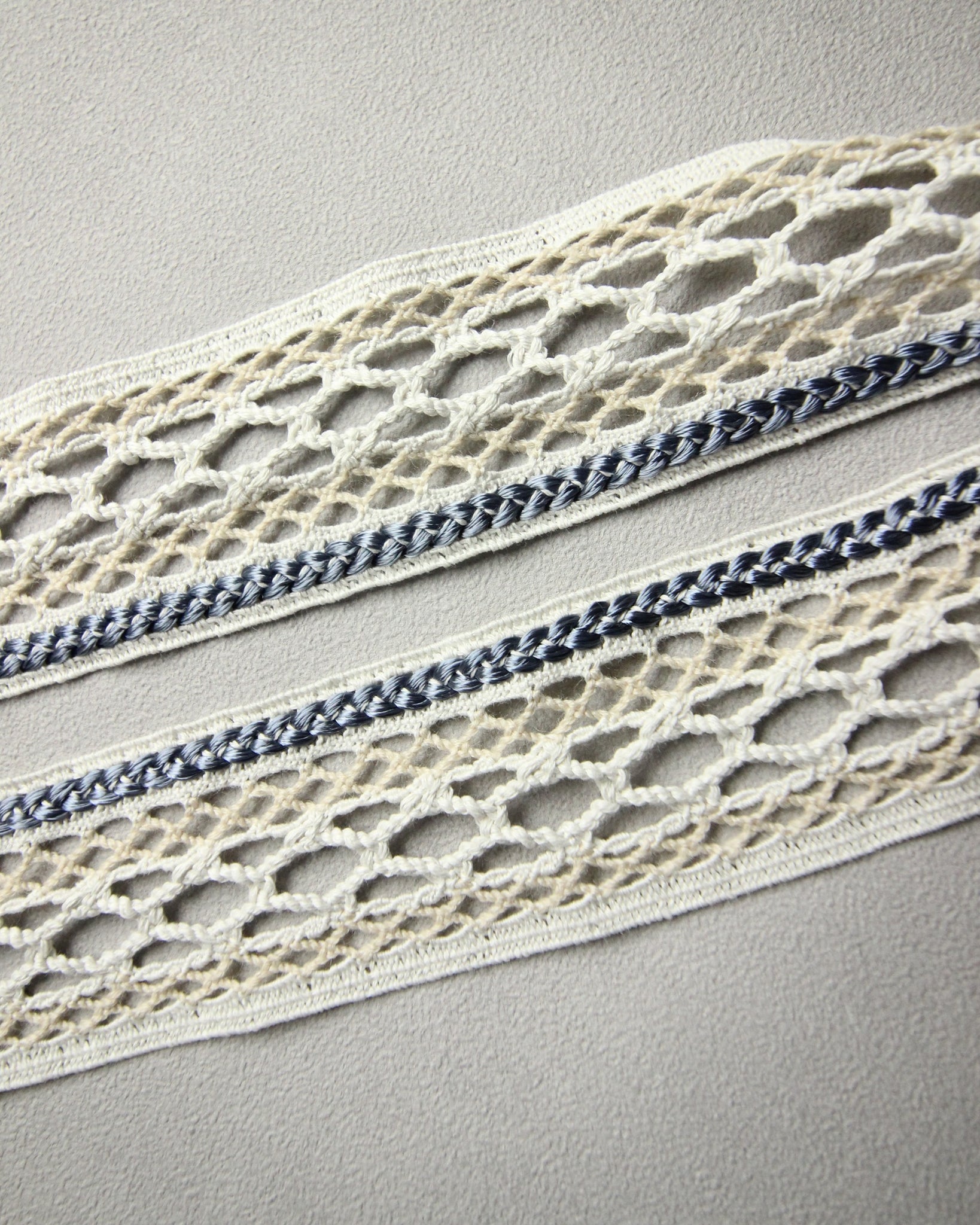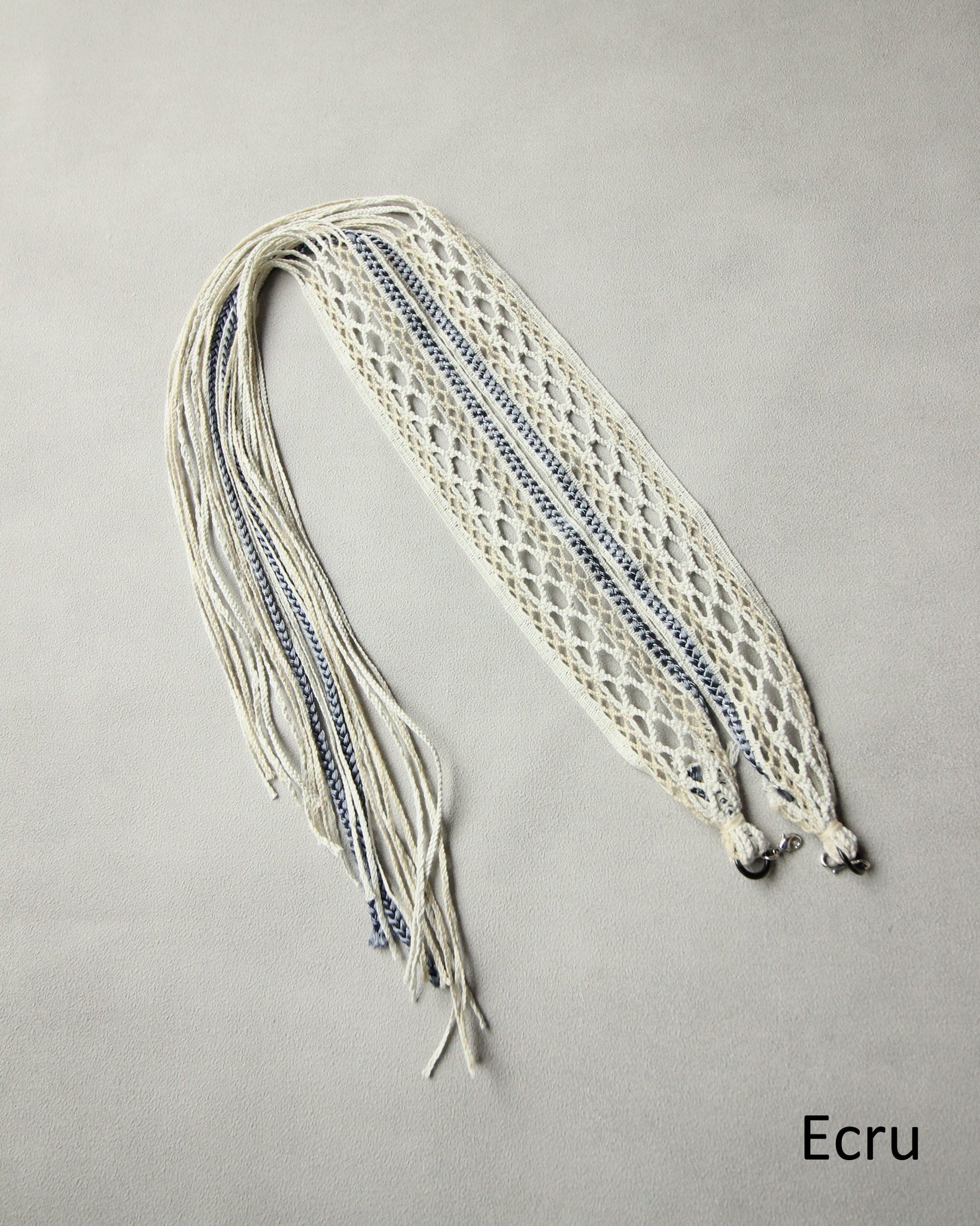 配色と太さのバランスに拘り、丁寧に編み上げたフリンジレース。