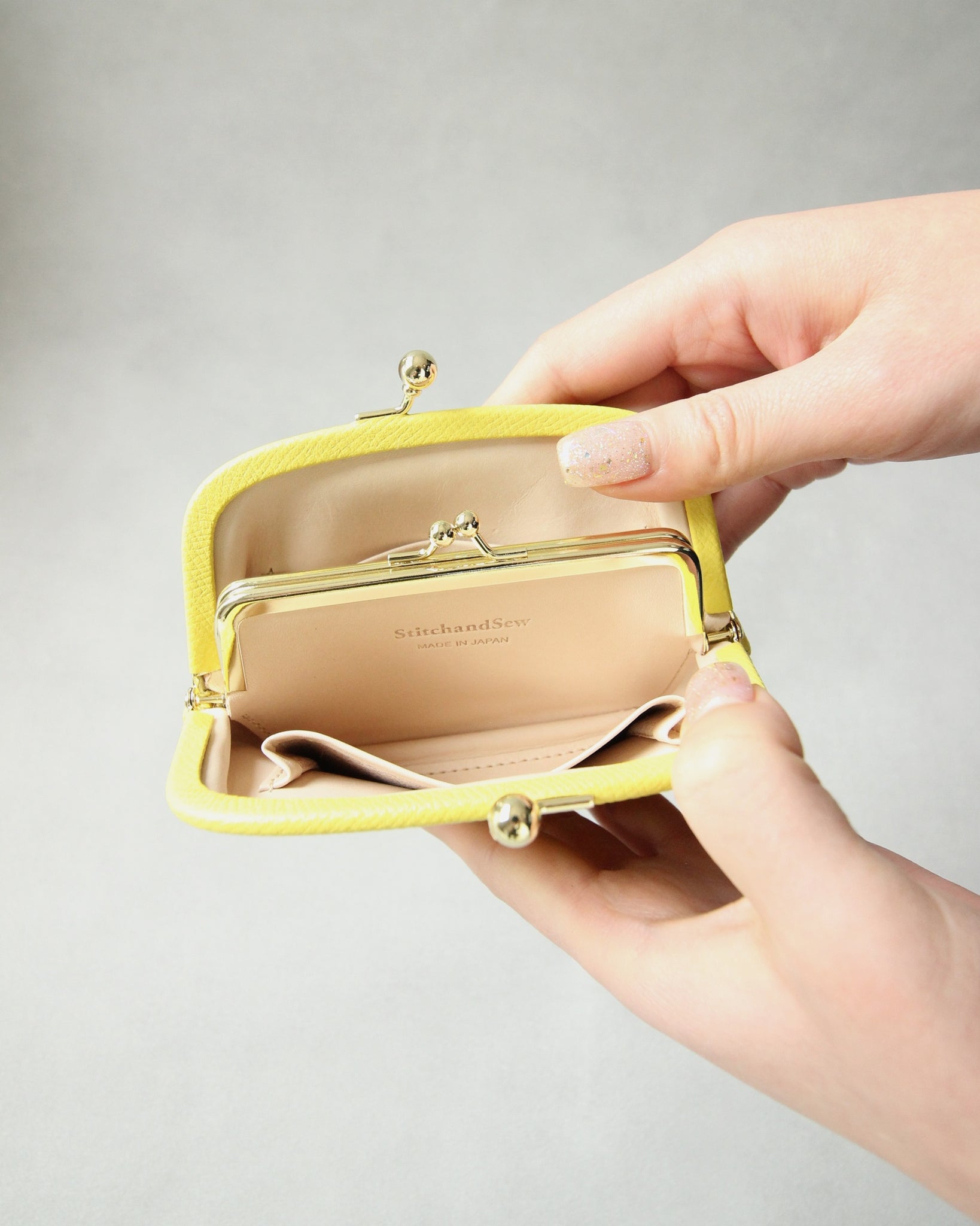 親子式口金を用いた小型がま口ウォレットです。