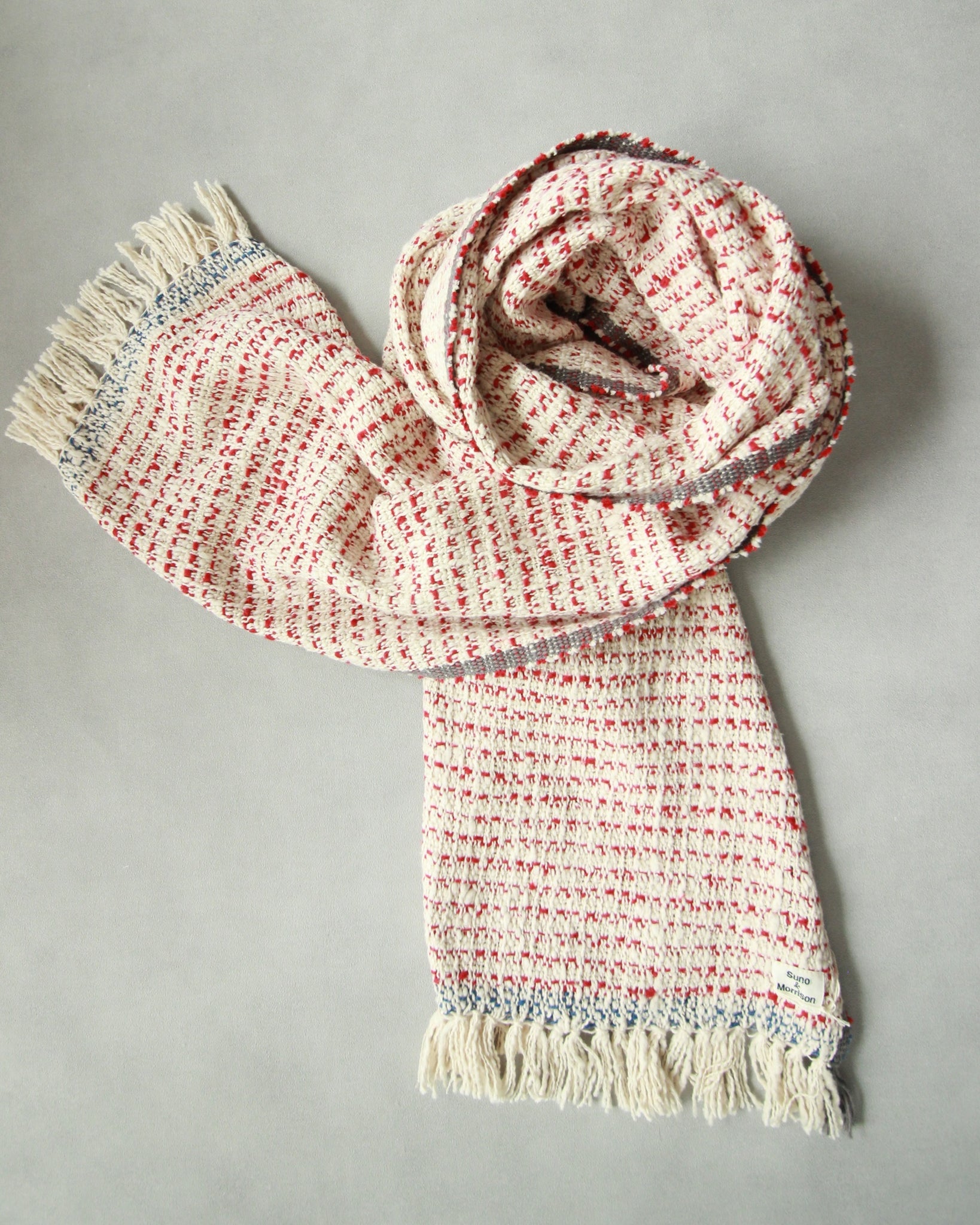 Suno&Morrisonは、オーガニックコットンのガラ紡を中心に、 インドやタイの手紡ぎの糸等、実際に使ってみて気持ちよいと感じた糸や素材で、ものづくりをしてます。 普段の生活の中に溶け込むような、側に置いておいて気持ちのよいもの。