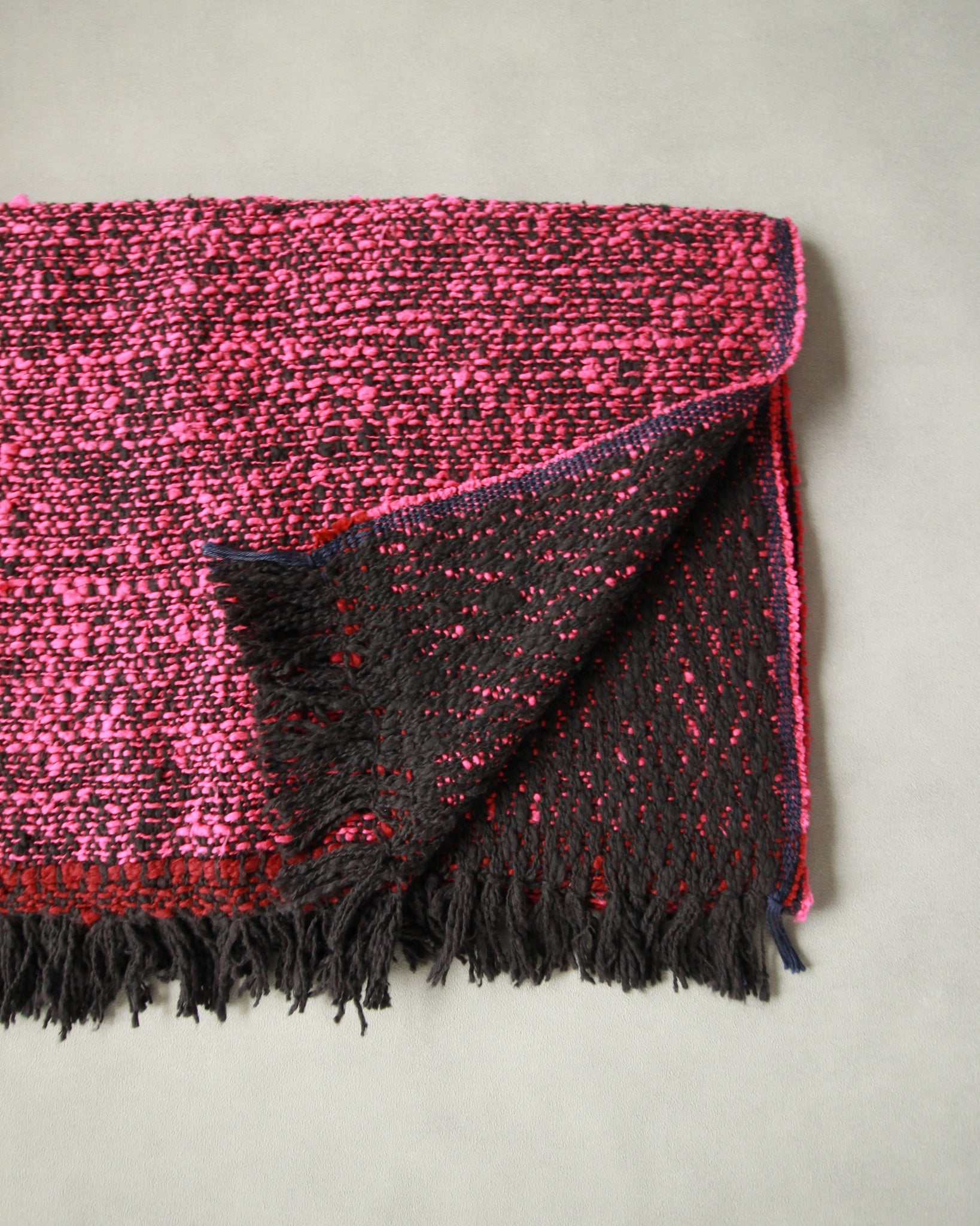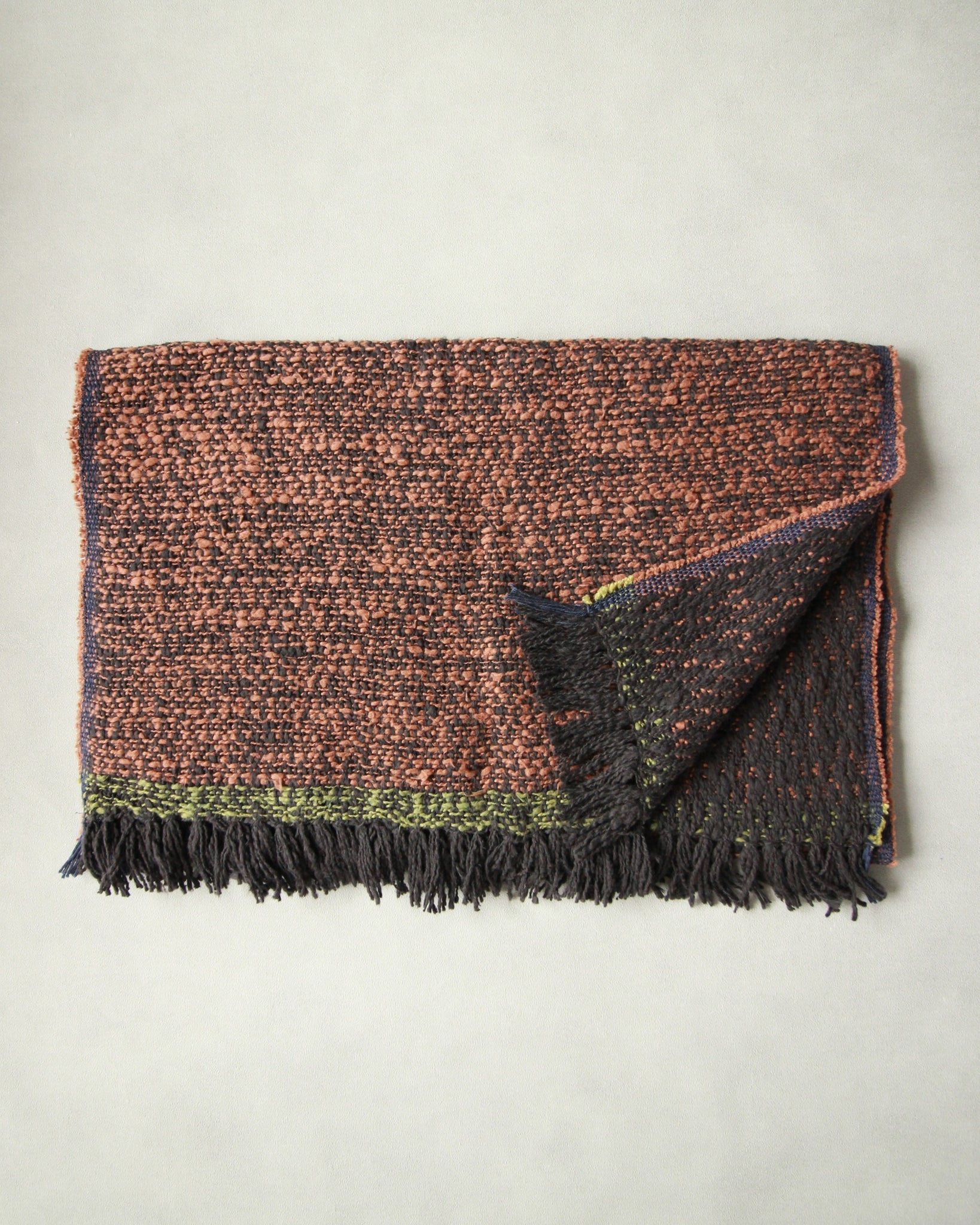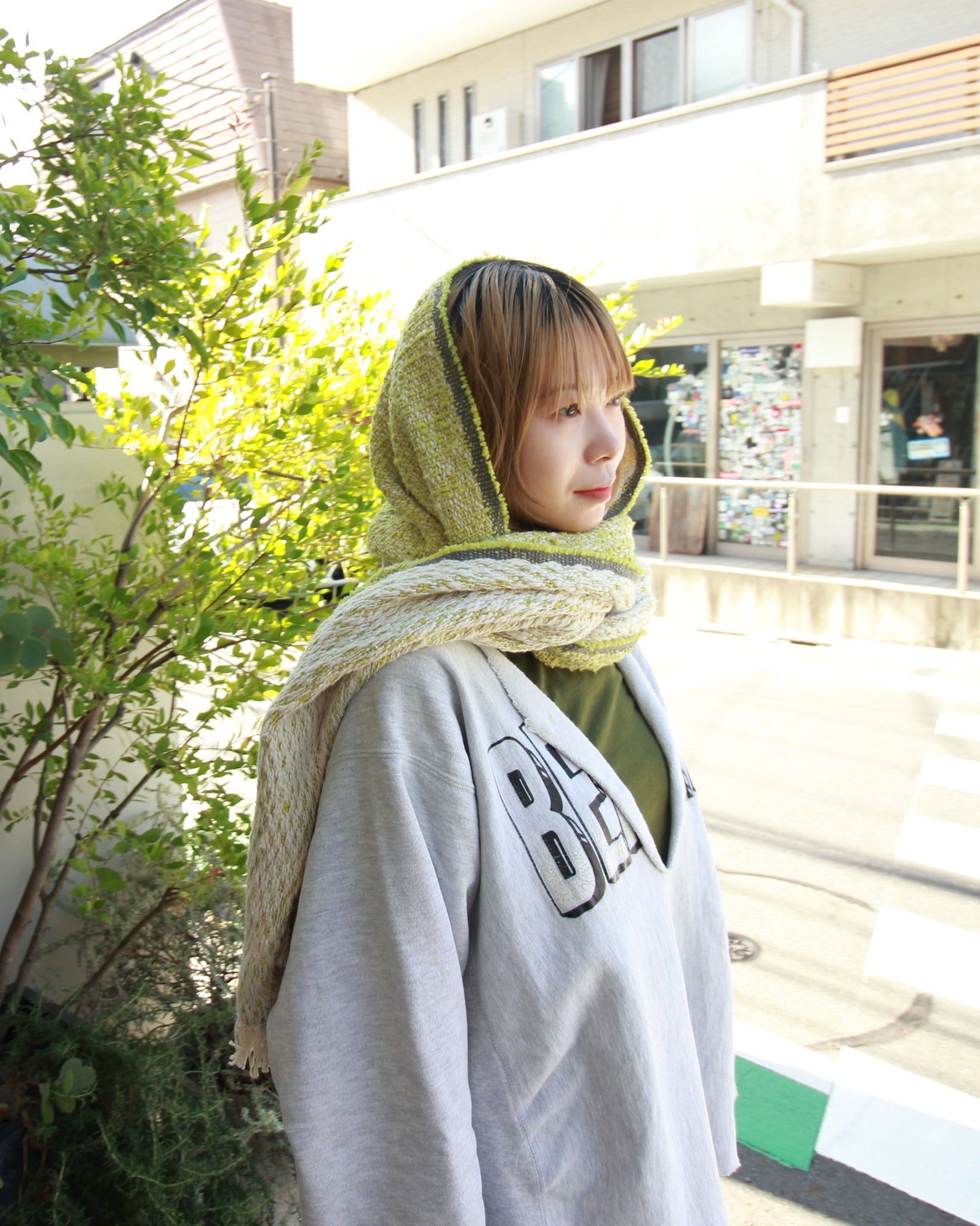 こちらの中判サイズは、首に巻いたり、肩に掛けたりと日常的に使いやすいサイズ感です。
