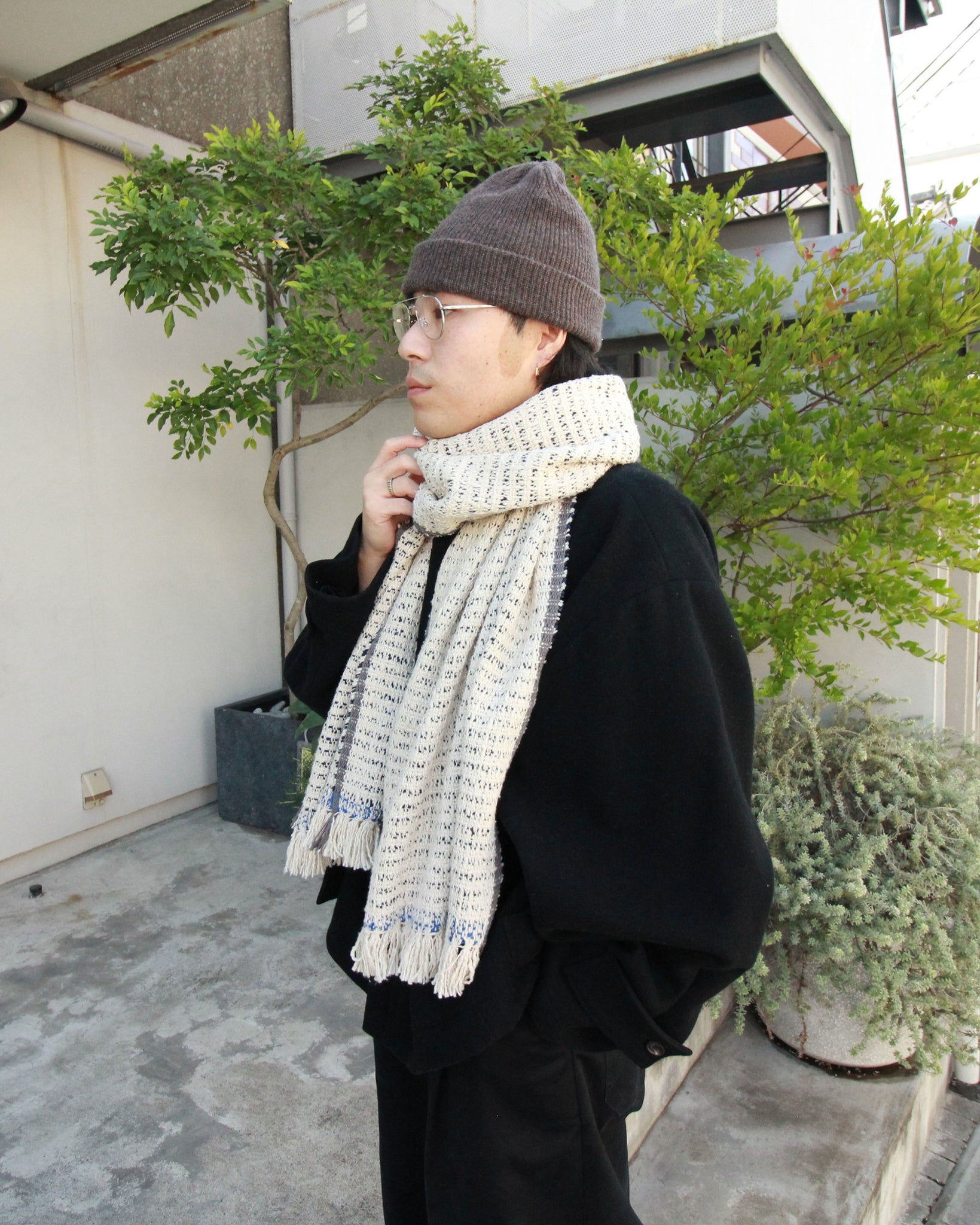 オーガニックコットンのガラ紡(カベ糸)を使用した中判ストール。