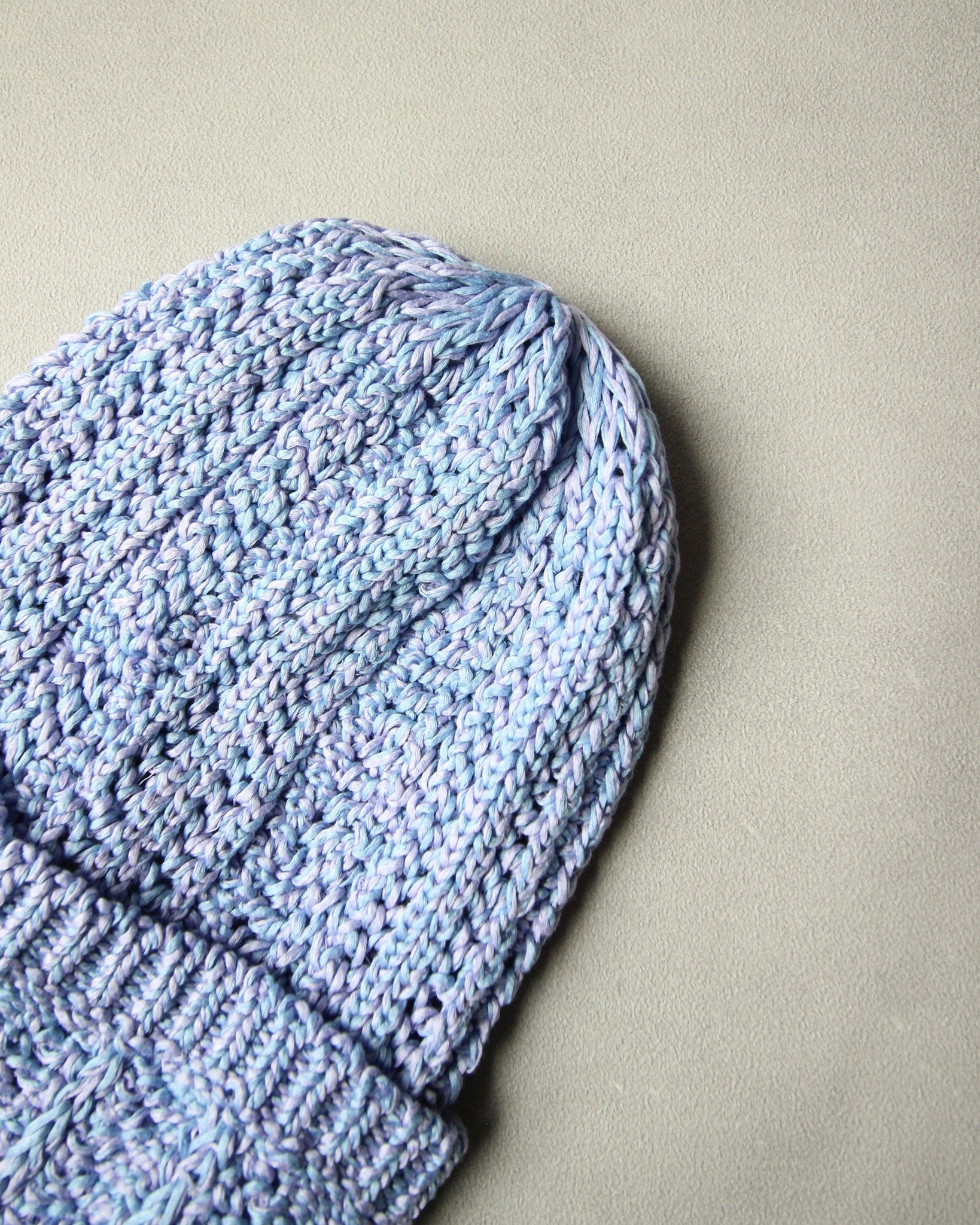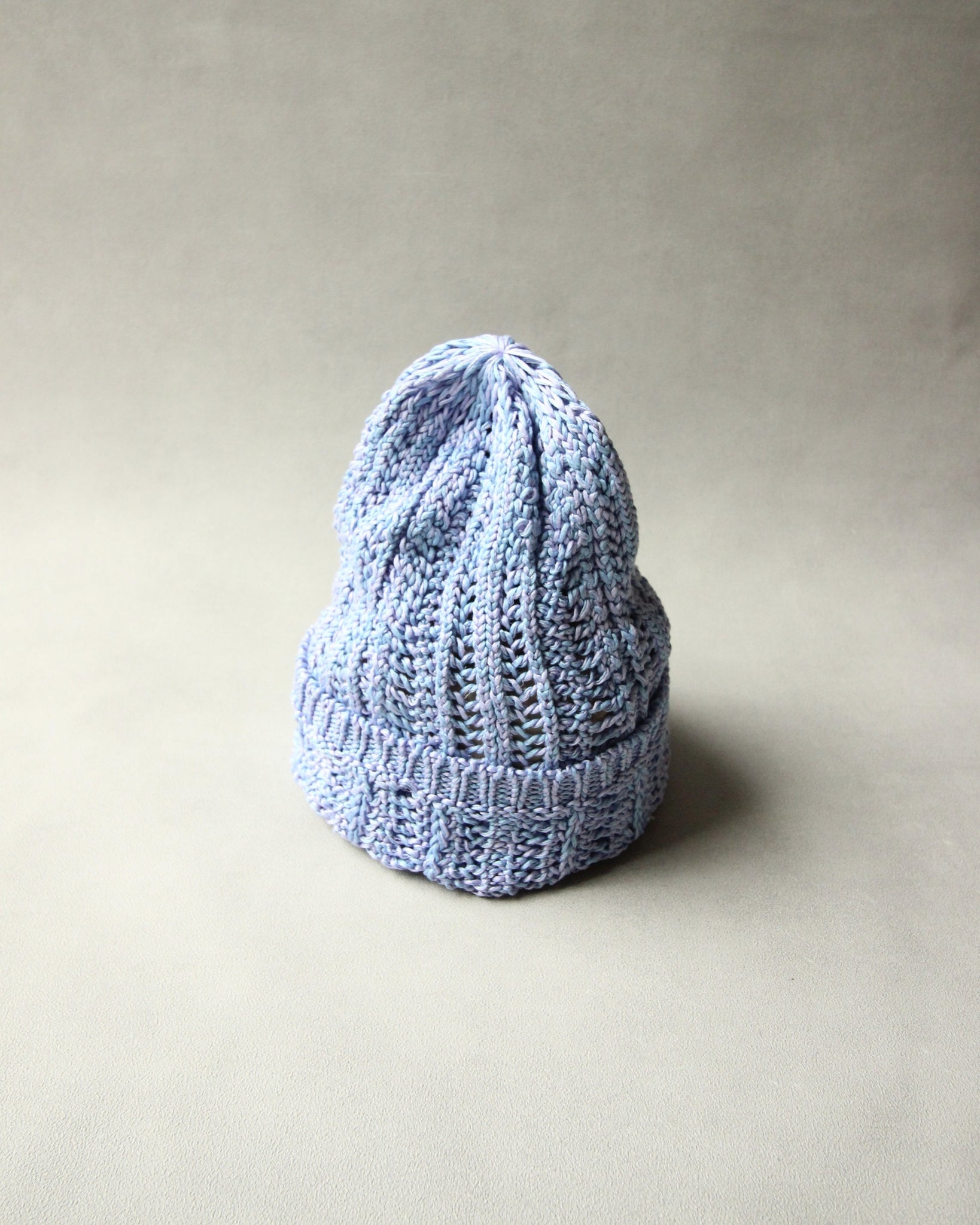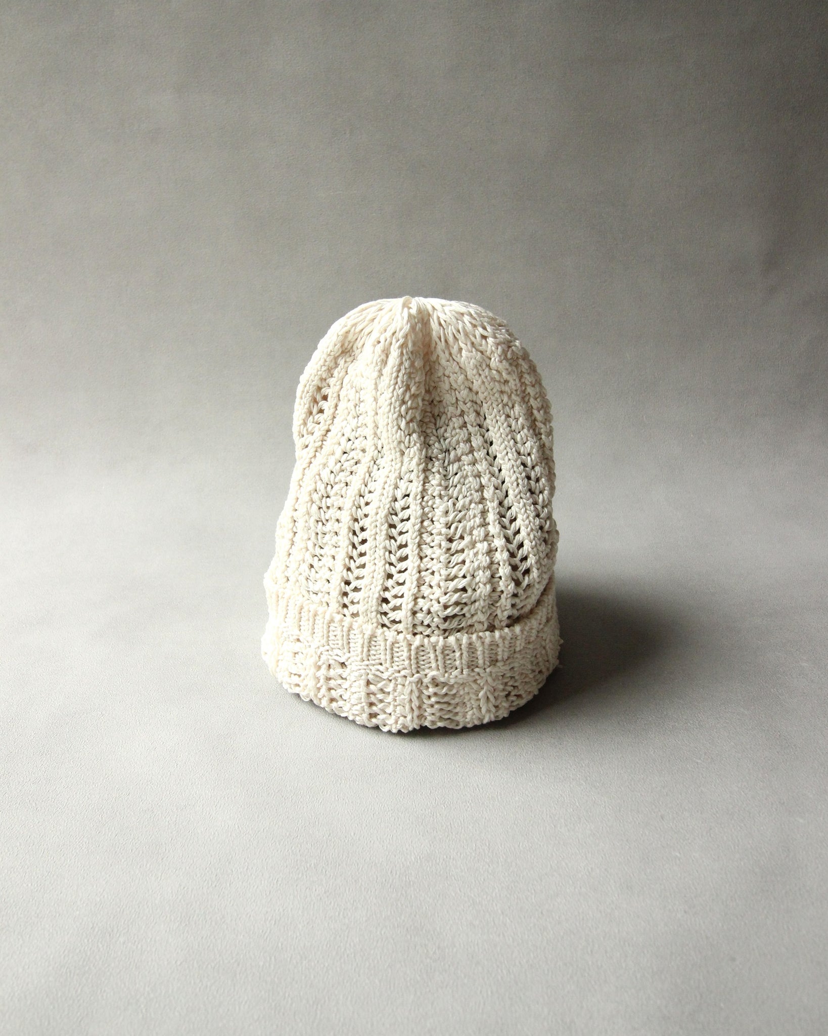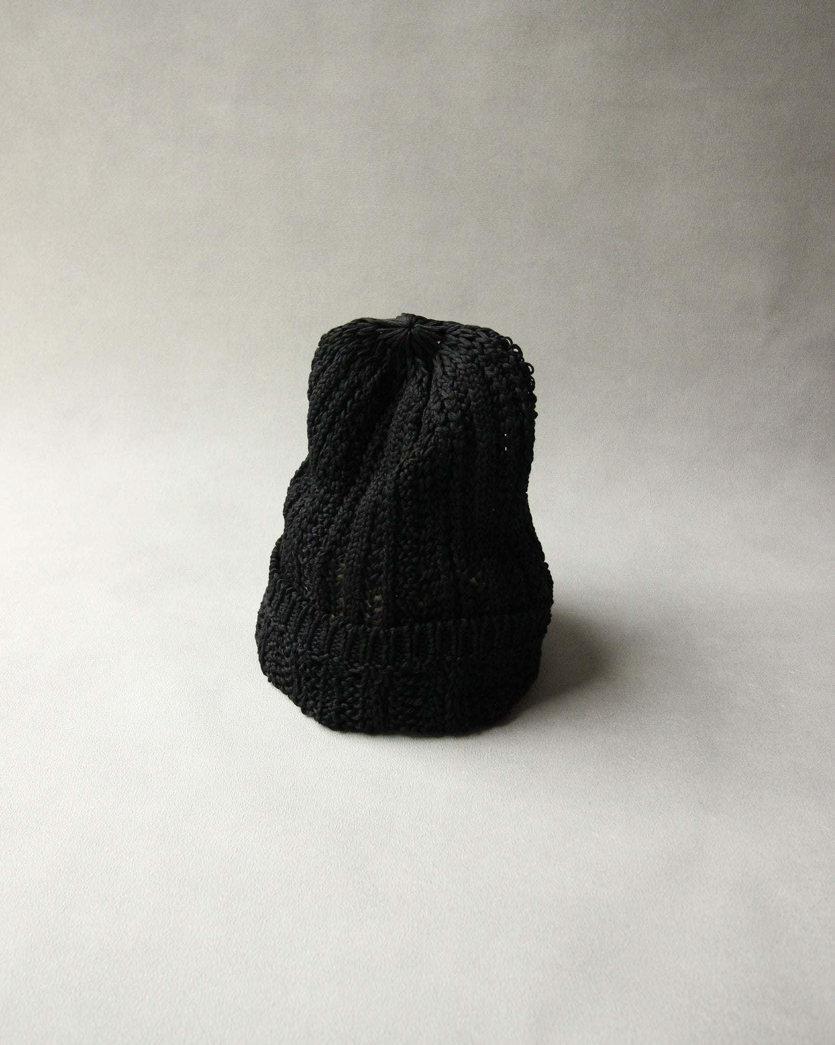被ることでふわりと広がる編地は、ほんのり透ける軽やかさが魅力です。