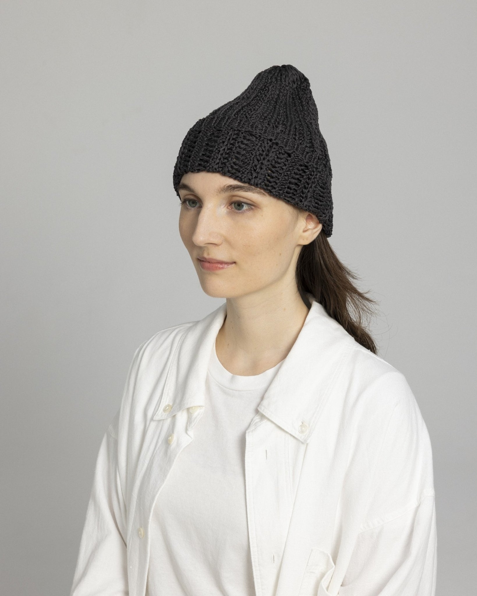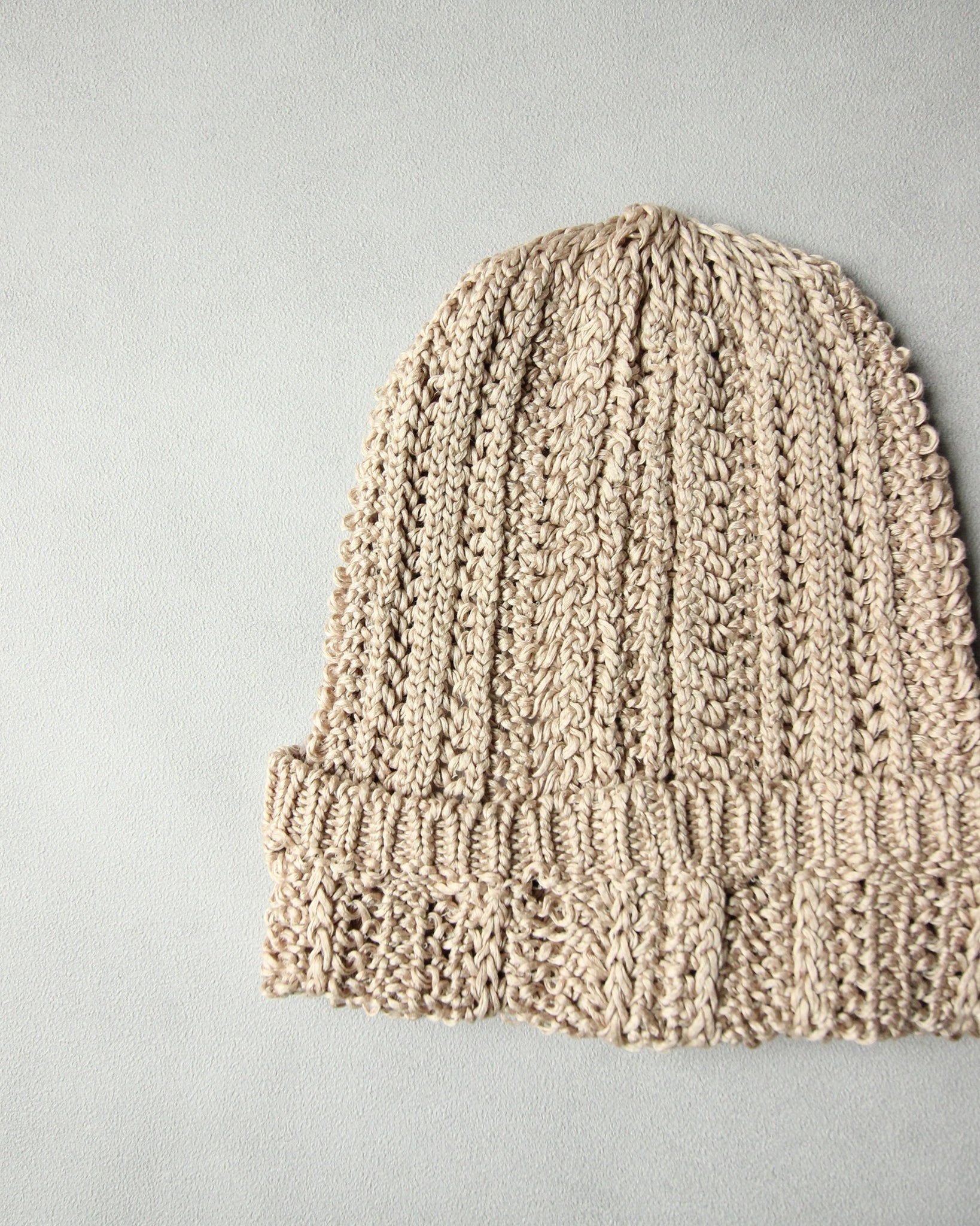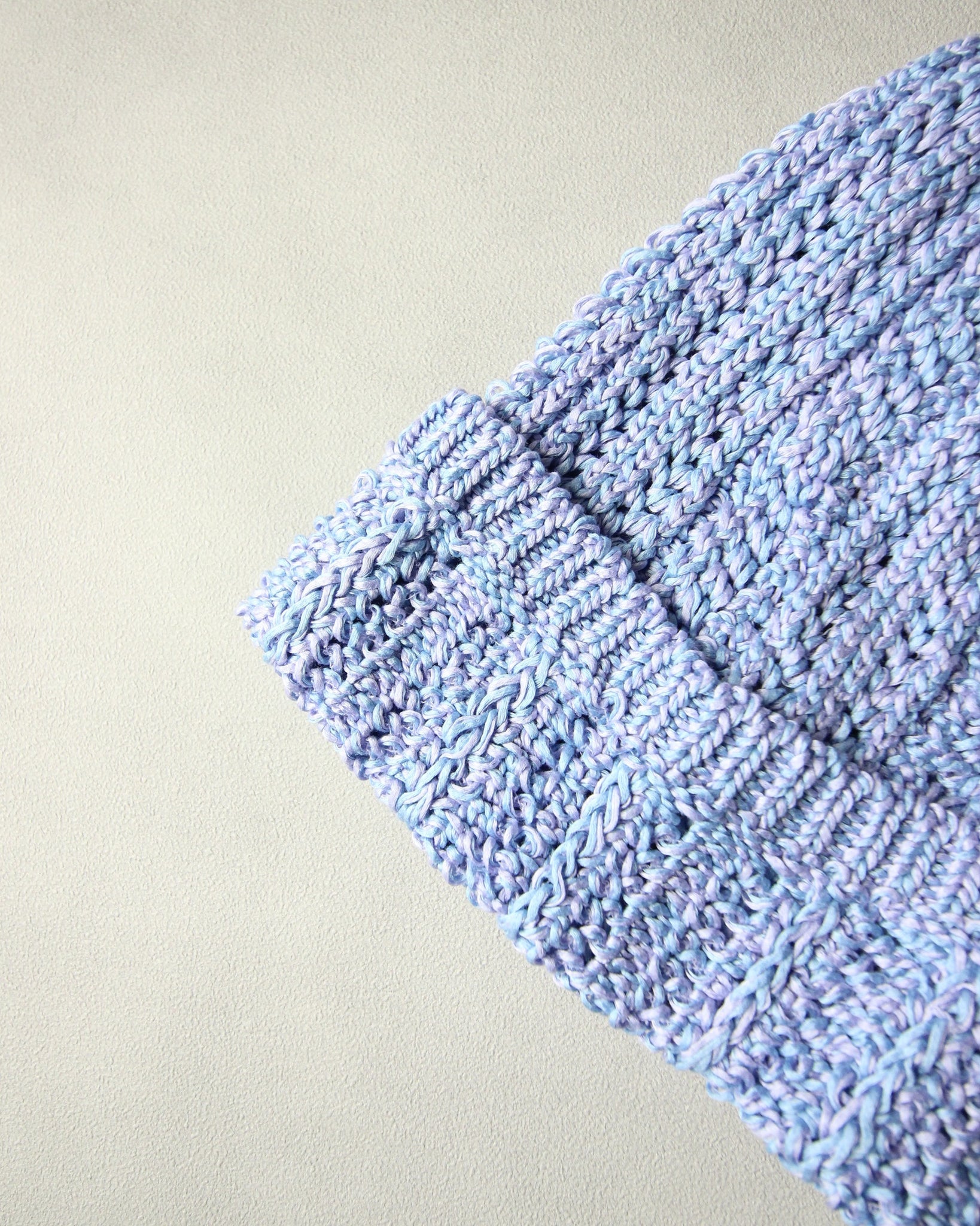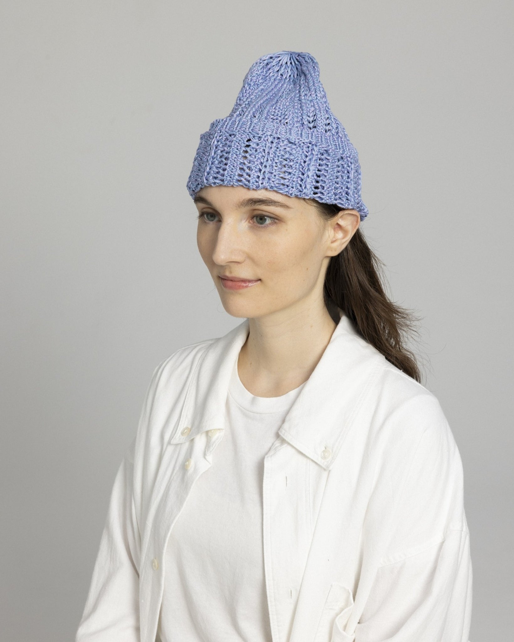 被ることでふわりと広がる編地は、ほんのり透ける軽やかさが魅力です。