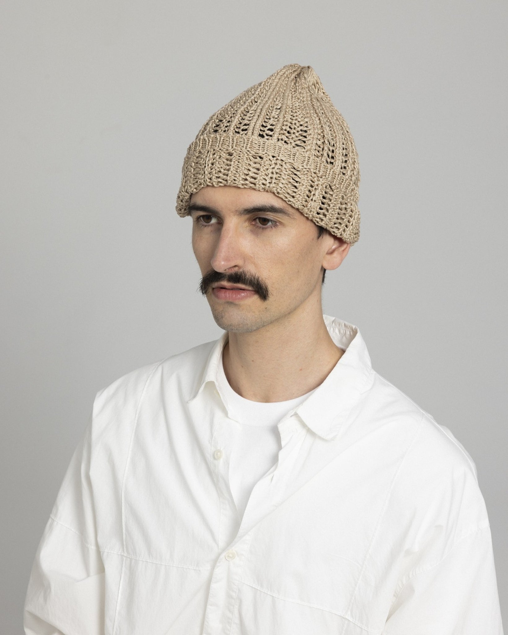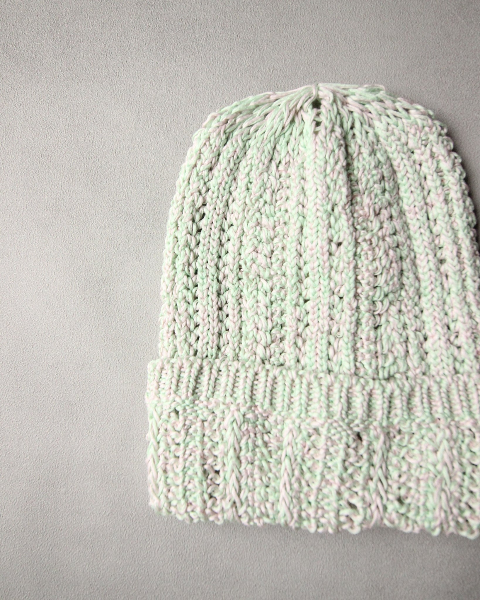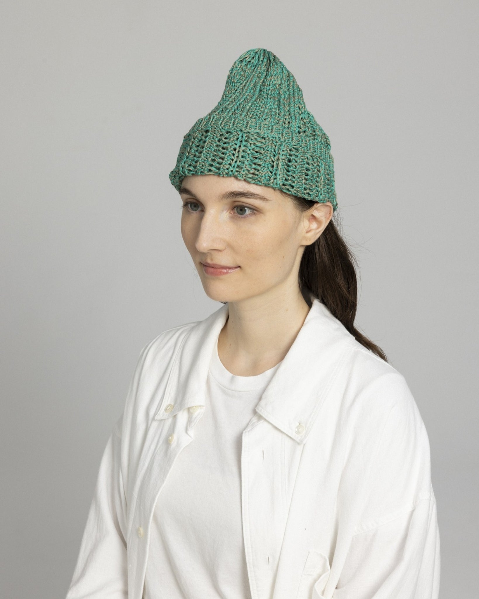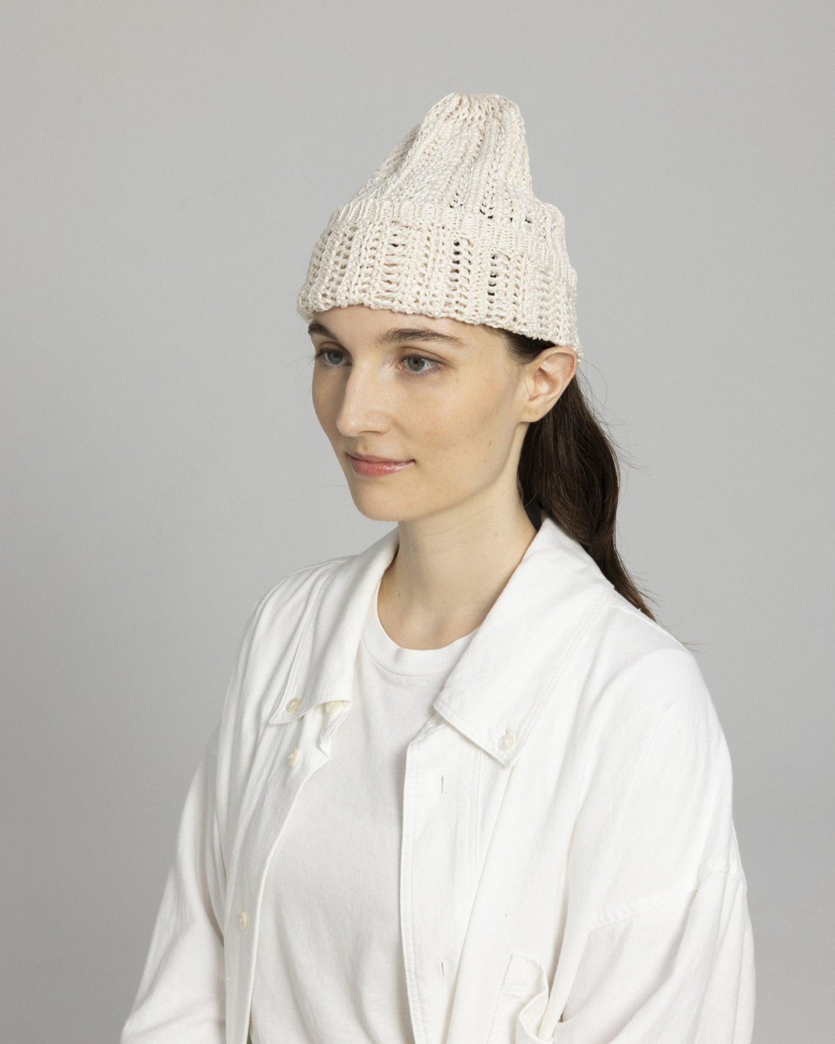 被ることでふわりと広がる編地は、ほんのり透ける軽やかさが魅力です。