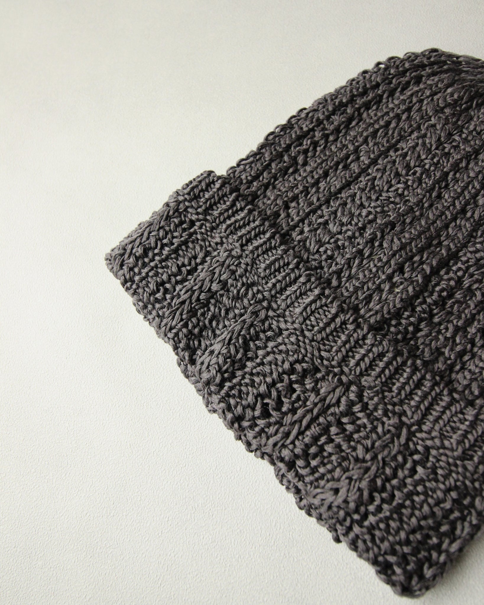 シルクのような光沢感のある糸をざっくりと編み立てたコットンニット幅。