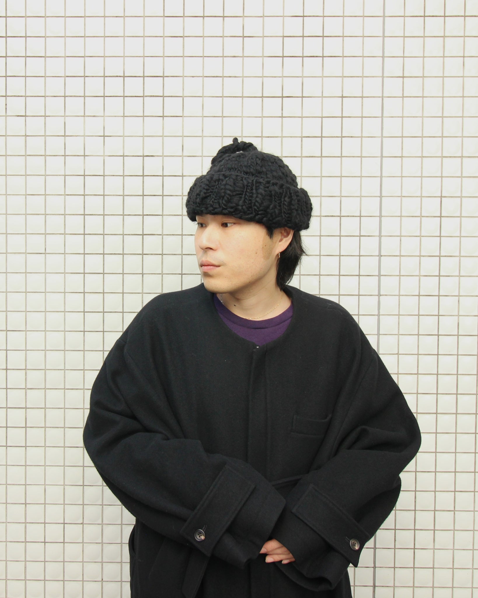 超大號手工針織帽。