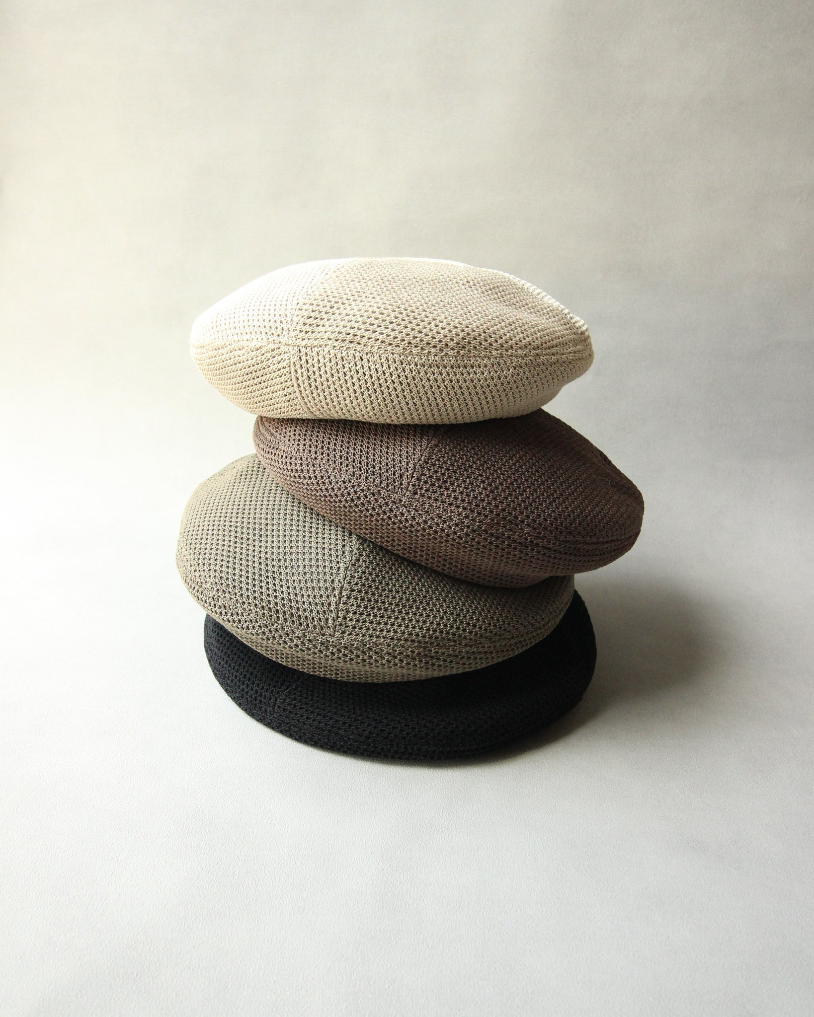 麻のような風合いと程よい透け感で、涼しげな印象に仕上げたベレー帽。