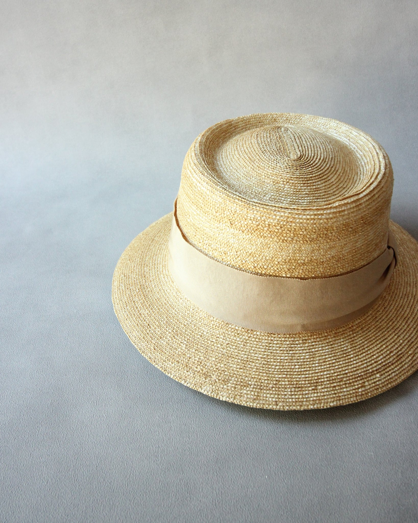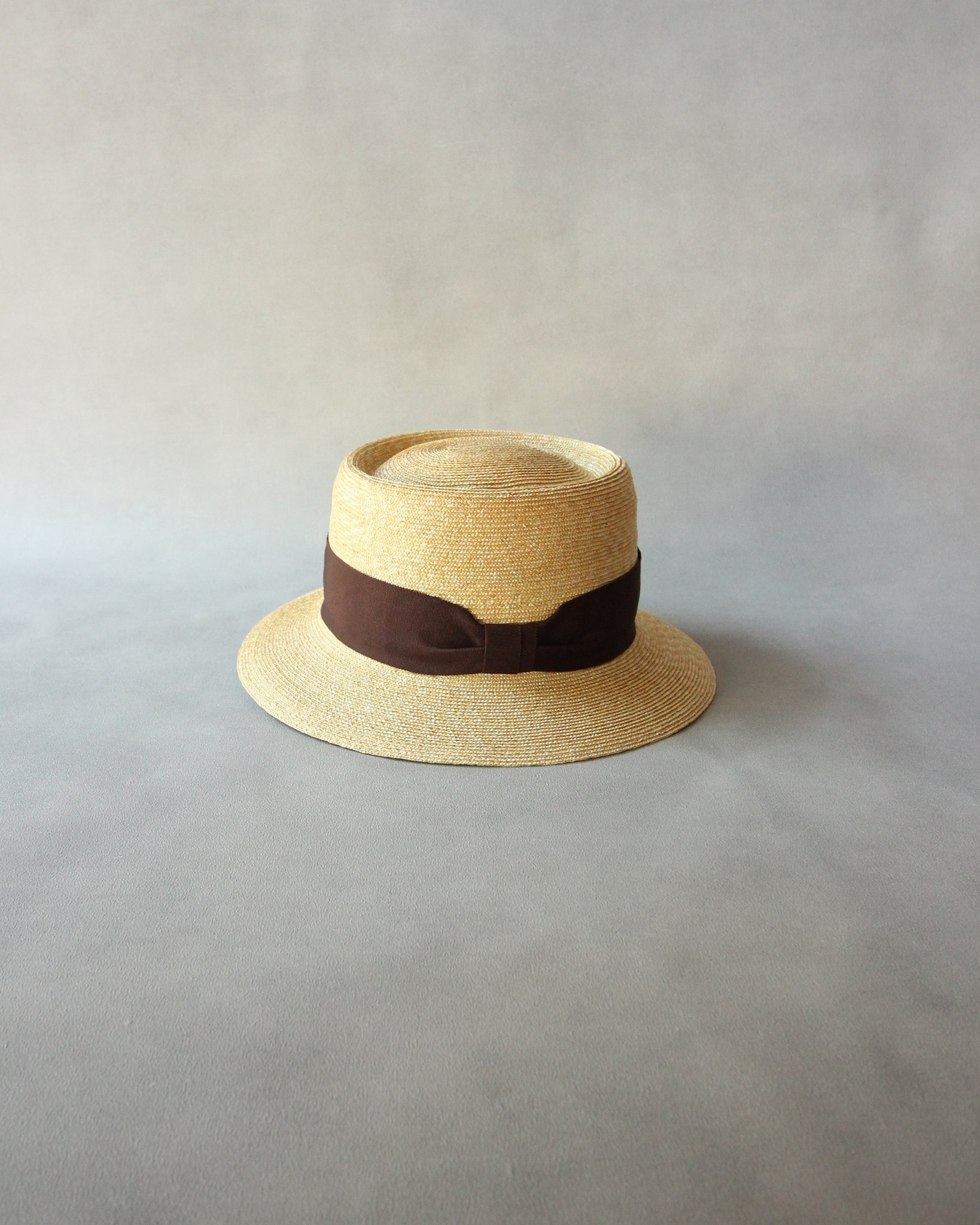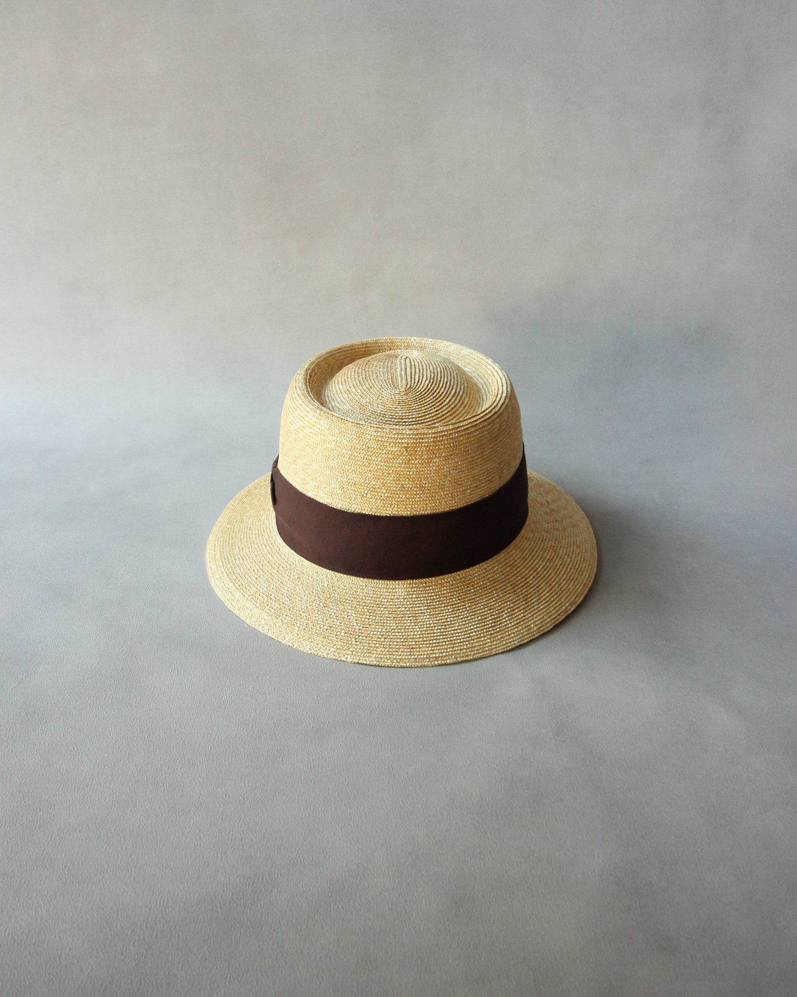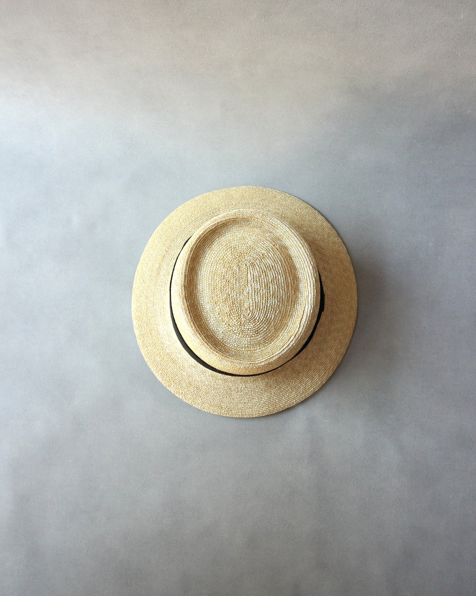 細幅のストローブレードで仕立てた、クラシックな佇まいのストローハット。