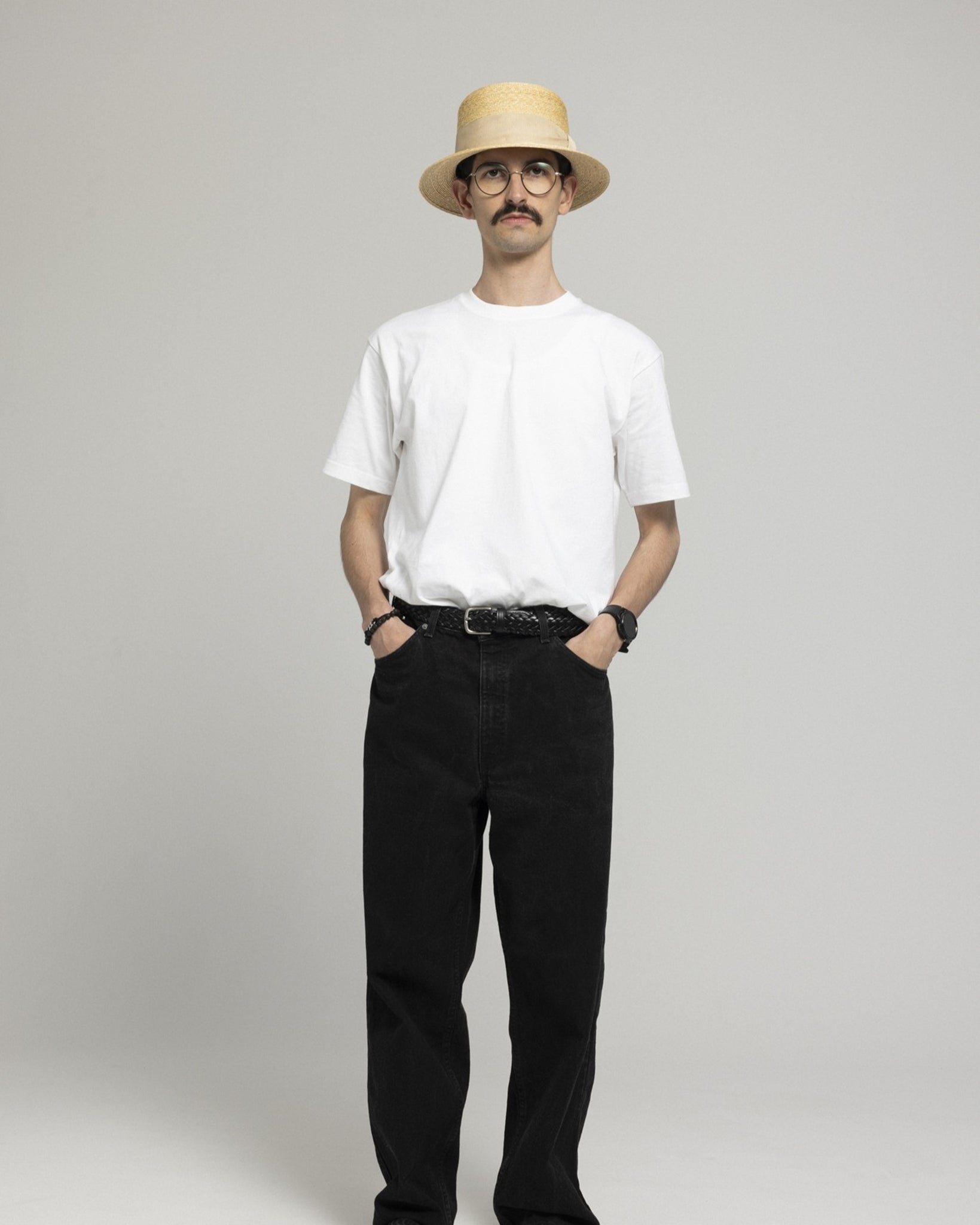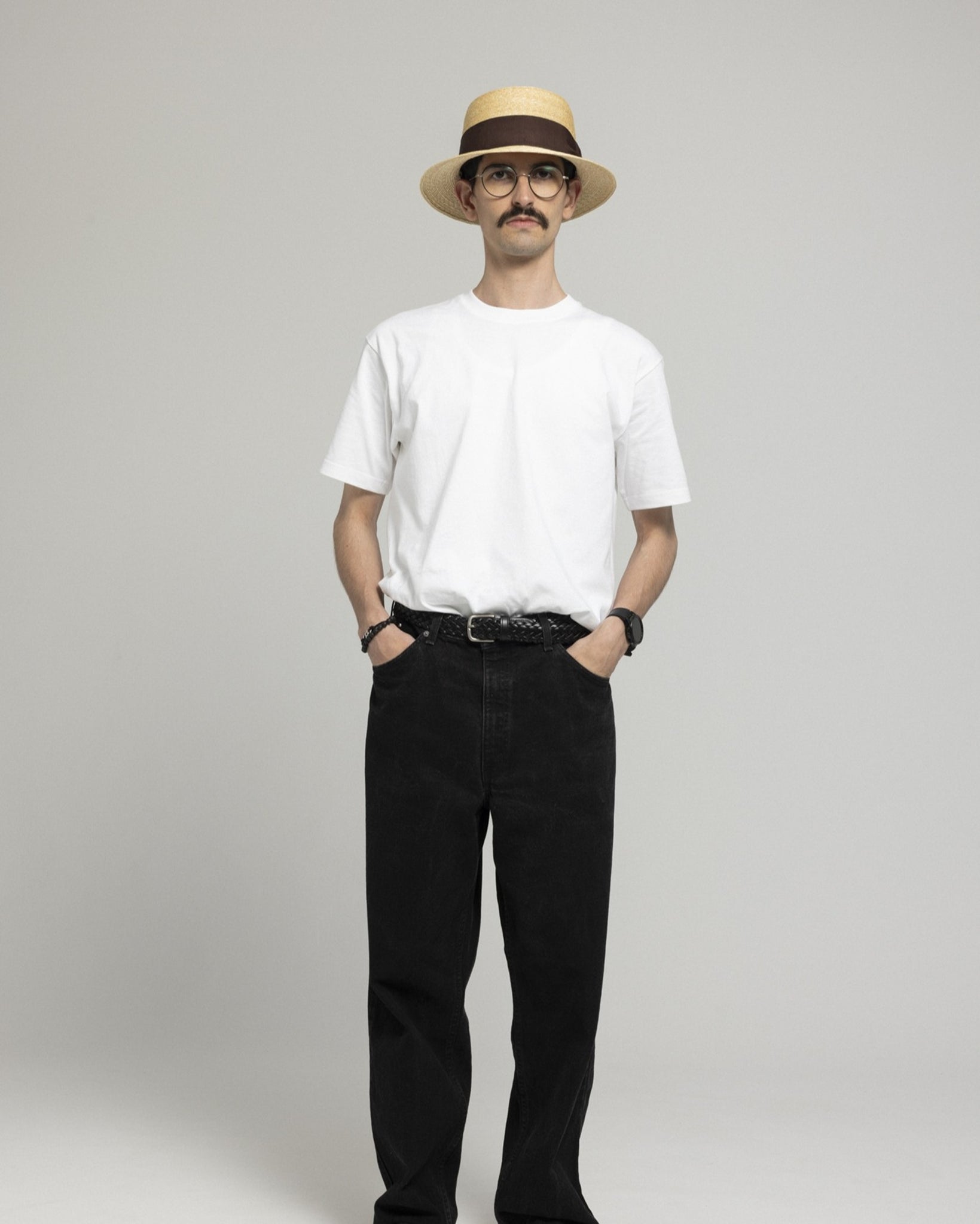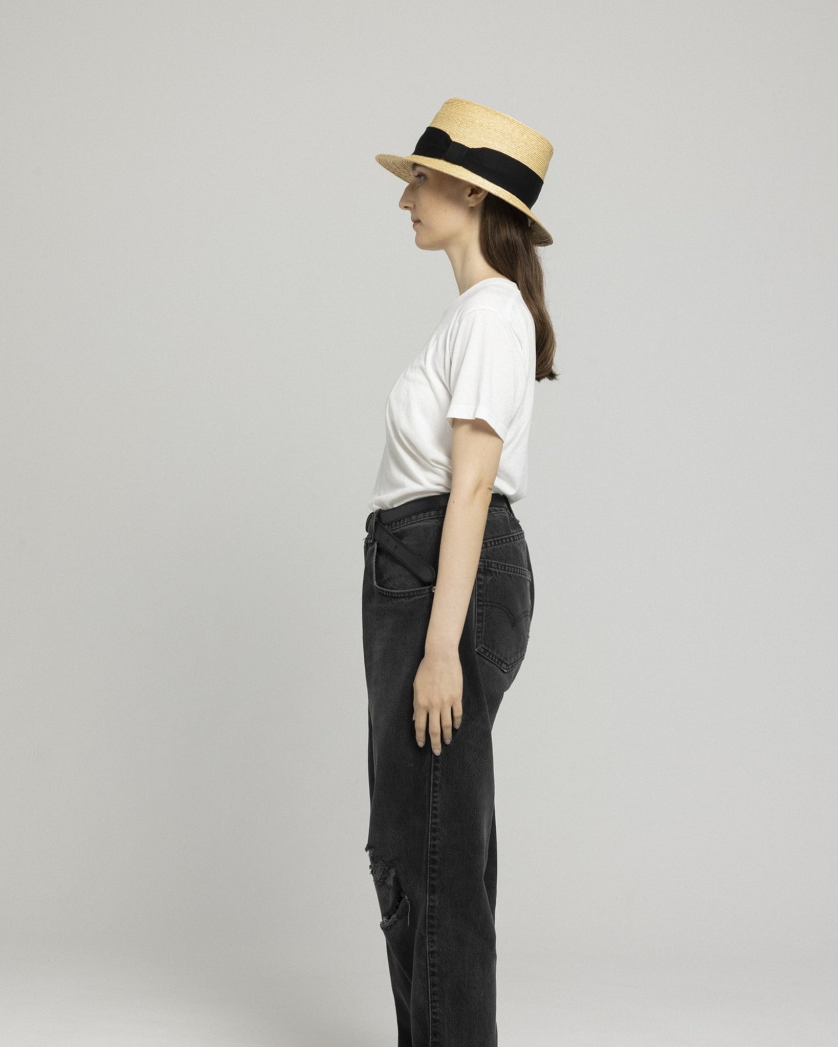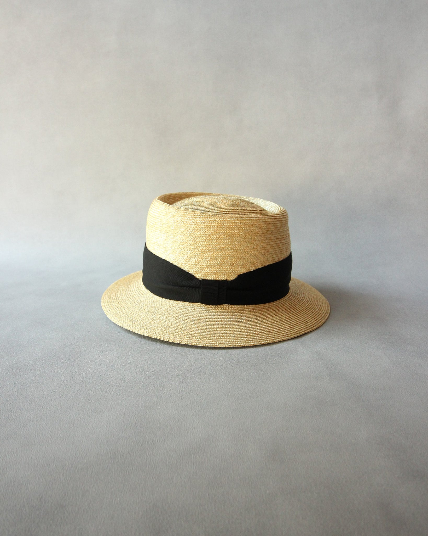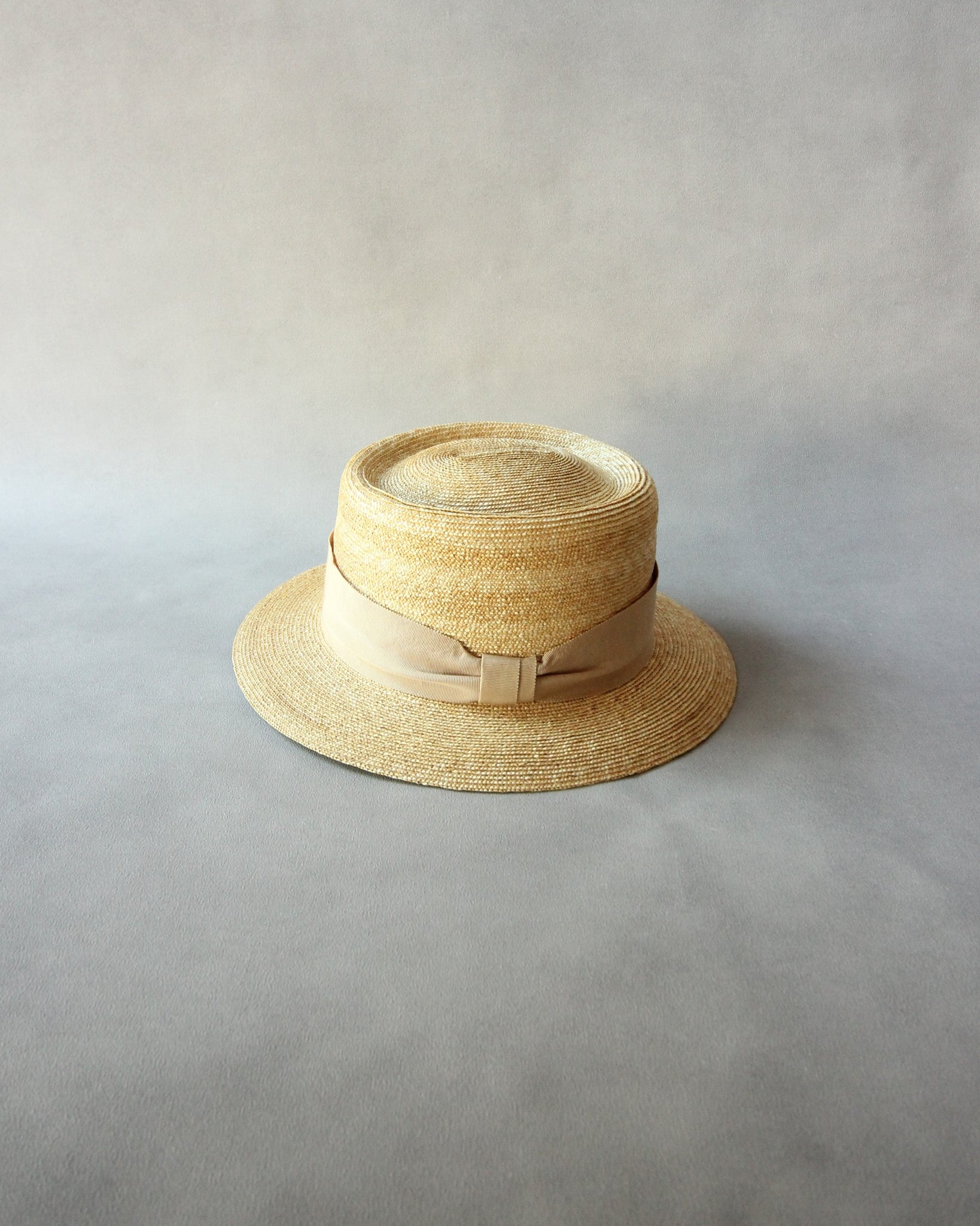 細幅のストローブレードで仕立てた、クラシックな佇まいのストローハット。